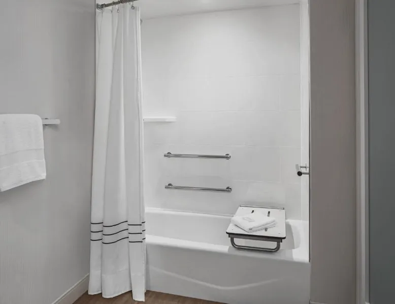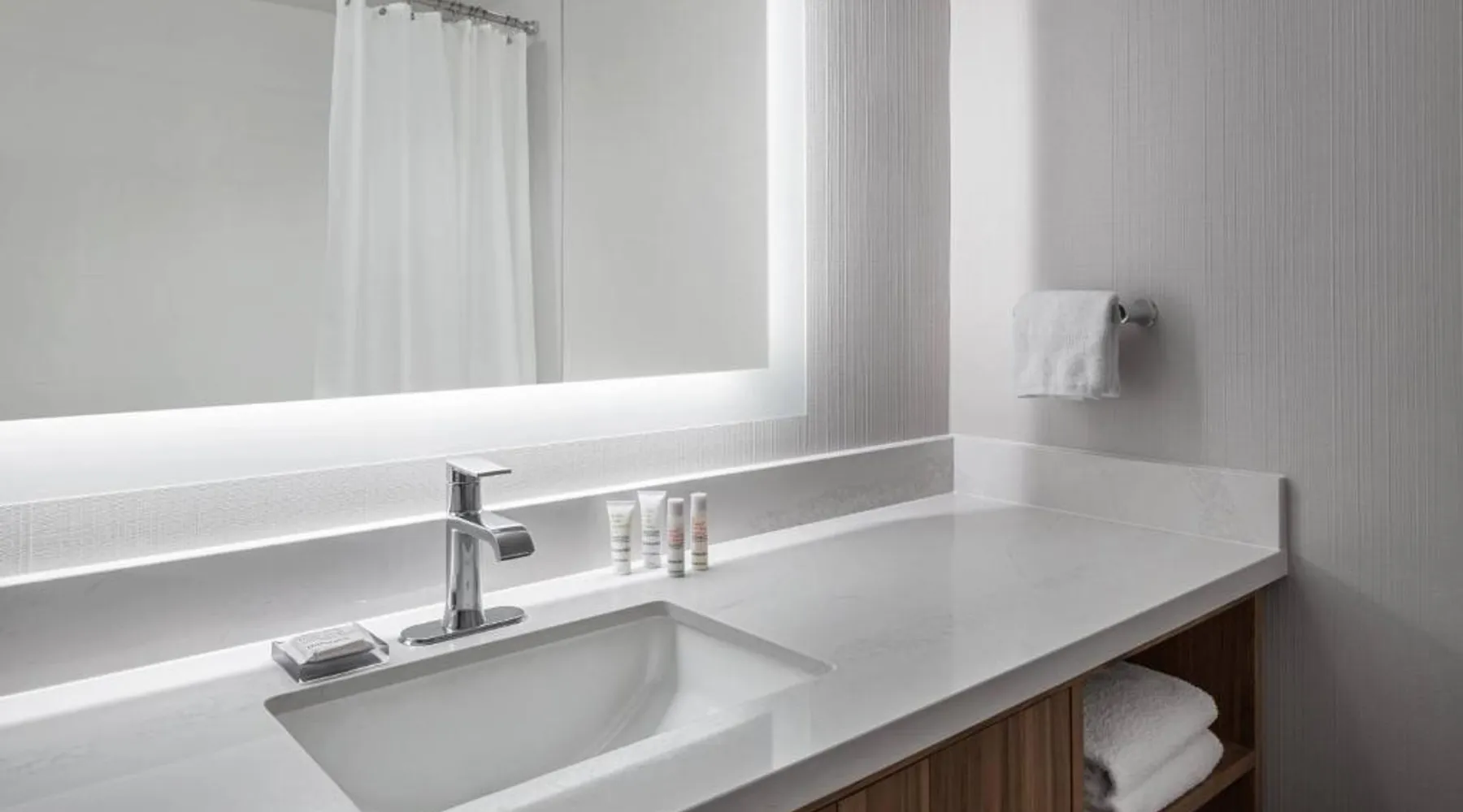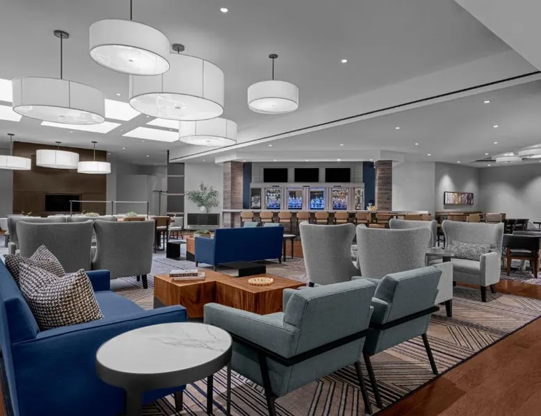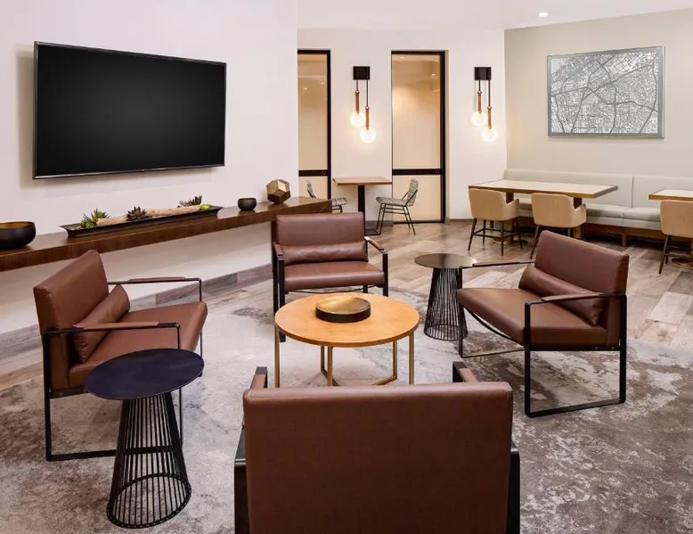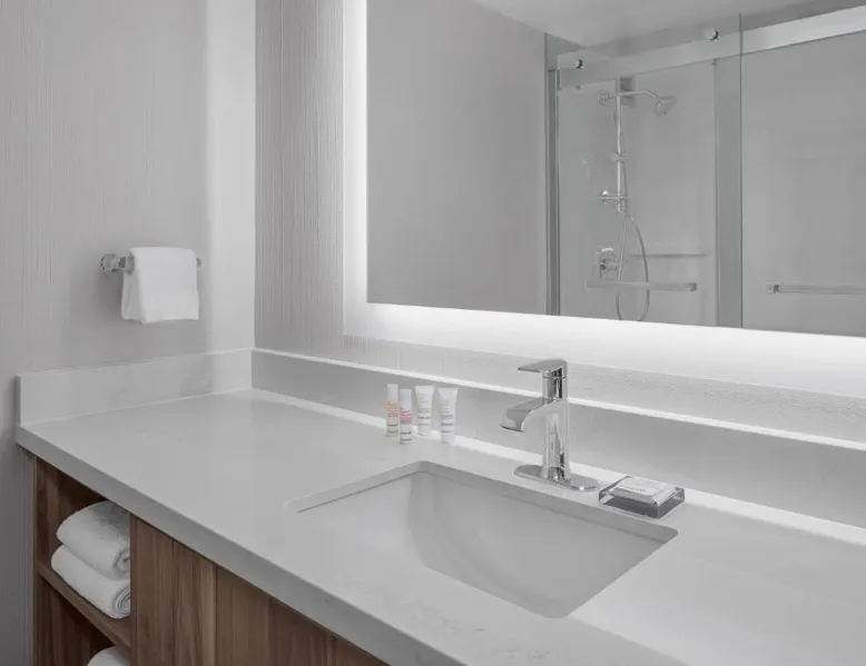 The Pleasanton Marriott is located in Silicon Valley, one mile from the Dublin Heritage Museum. It has a heated outdoor pool, and offers spacious rooms with LCD TV and cable channels. Marriott rooms include a well-lit work desk, and ergonomic chair. Rooms come equipped with Nintendo video games, a coffee maker, and ironing facilities. The Lone Oak Kitchen & Bar is an on-site restaurant that serves regional northern California cuisine. A local restaurant dinner delivery service is also available. Guests of the Pleasanton Marriott can relax in the whirlpool, or visit the fitness center that includes free weights and cardiovascular equipment. The Dublin Ranch Golf Course is located 5 miles from the hotel. The unit offers 2 beds.