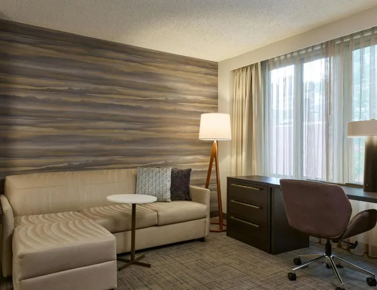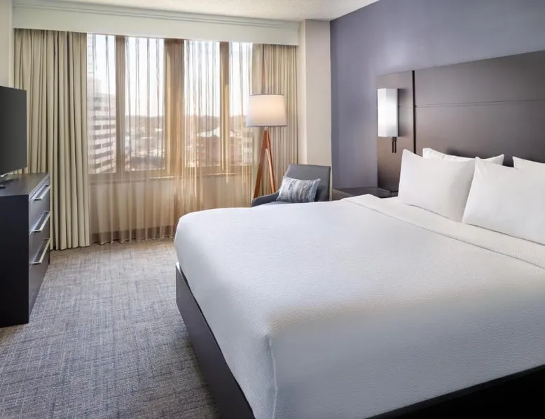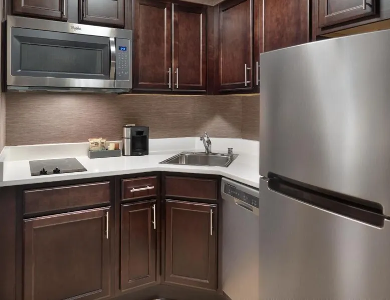Comfortable Accommodations: Residence Inn Bethesda Downtown in Bethesda offers family rooms with air-conditioning, kitchenettes, and private bathrooms. Each room includes a sofa bed, work desk, and streaming services. Exceptional Facilities: Guests can enjoy a fitness center, sun terrace, and outdoor seating area. Additional amenities include a child-friendly buffet, business area, and picnic area. Delicious Breakfast: A complimentary American buffet breakfast is served daily, catering to diverse dietary needs. Prime Location: Located 12 mi from Ronald Reagan Washington National Airport, the hotel is near attractions such as the Phillips Collection (6.2 mi) and the White House (7.5 mi). Highly rated by guests. The well-fitted kitchen features a refrigerator, a dishwasher, kitchenware and a microwave. The spacious suite offers air conditioning, a coffee machine, as well as a private bathroom featuring a bath and a shower. The unit offers 3 beds.