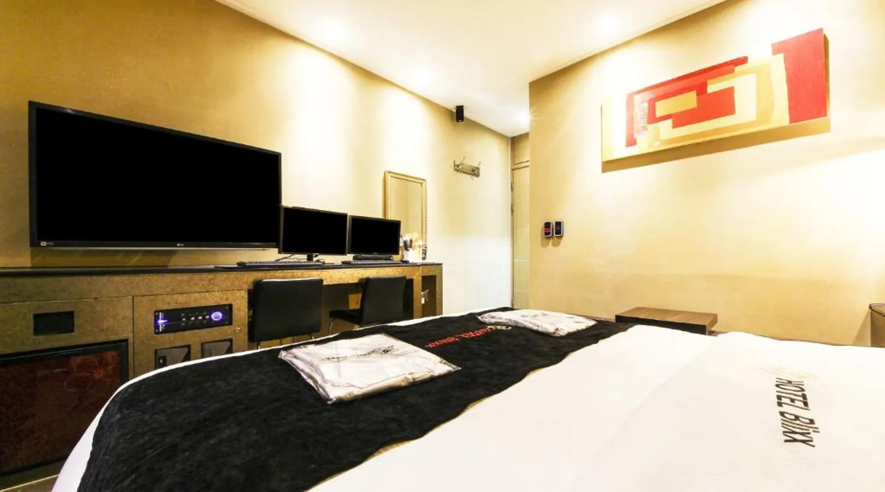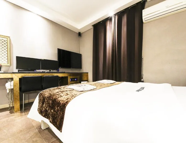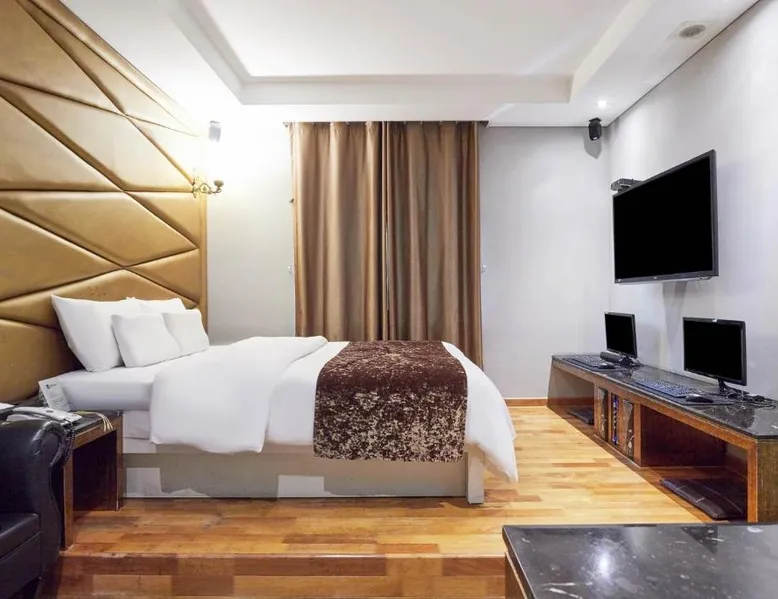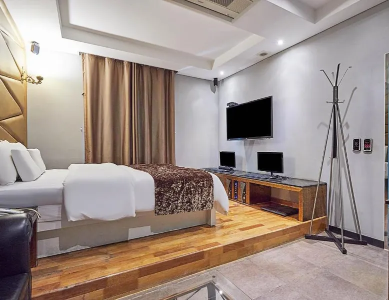Comfortable Accommodations: Hotel THE Blixx in Suwon offers air-conditioned rooms with private bathrooms, bathrobes, and free WiFi. Each room includes a work desk, TV, and wardrobe, ensuring a pleasant stay. Relaxing Facilities: Guests can unwind at the spa and wellness center or enjoy the hot tub. The hotel provides free on-site private parking and a 24-hour front desk for added convenience. Convenient Location: Located 29 mi from Gimpo International Airport, the hotel is near attractions such as Hwaseong Fortress (3.1 mi) and Garden 5 (18 mi). Free toiletries and a dining area enhance the stay. The double room includes a private bathroom, well-fitted with a bath, a shower, a bidet, a hairdryer and slippers. The air-conditioned double room features a flat-screen TV, a tea and coffee maker, a dining area and a wardrobe. The unit has 1 bed.