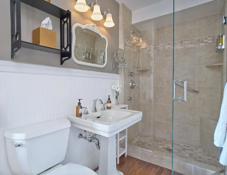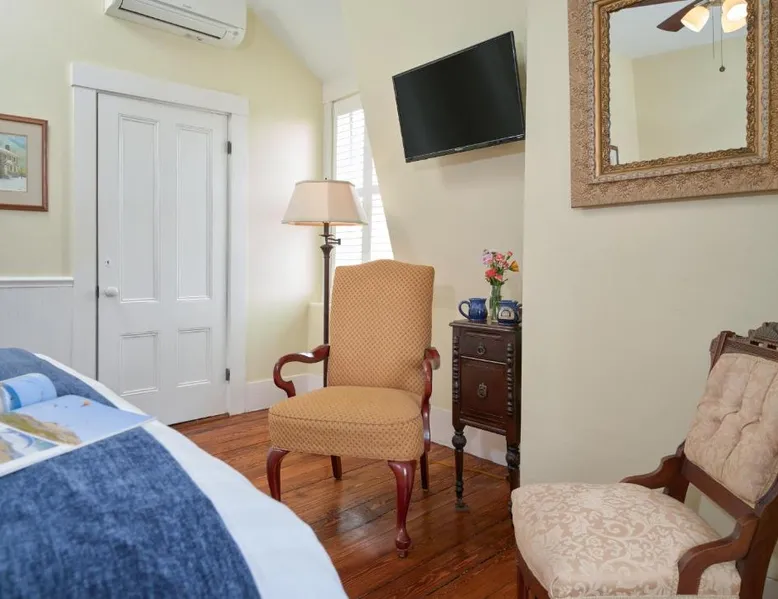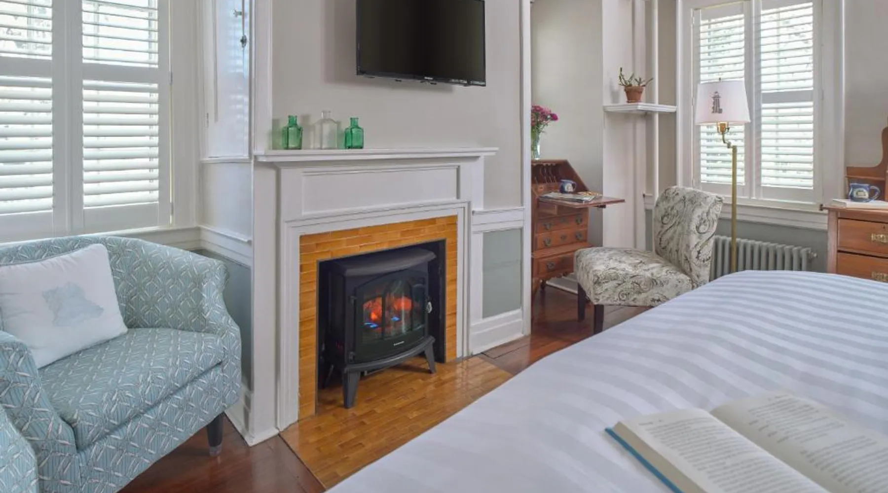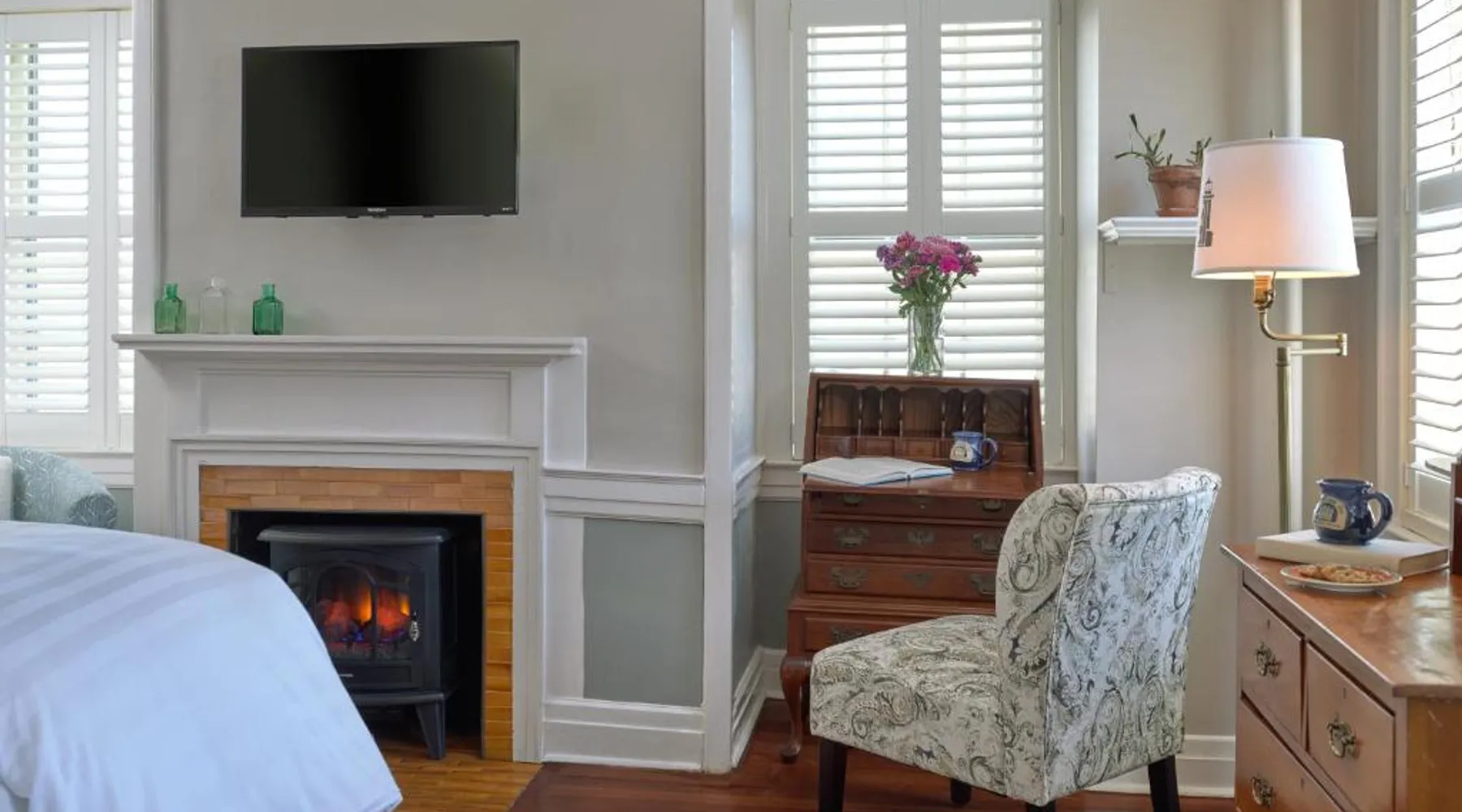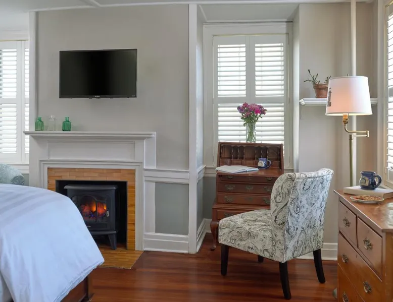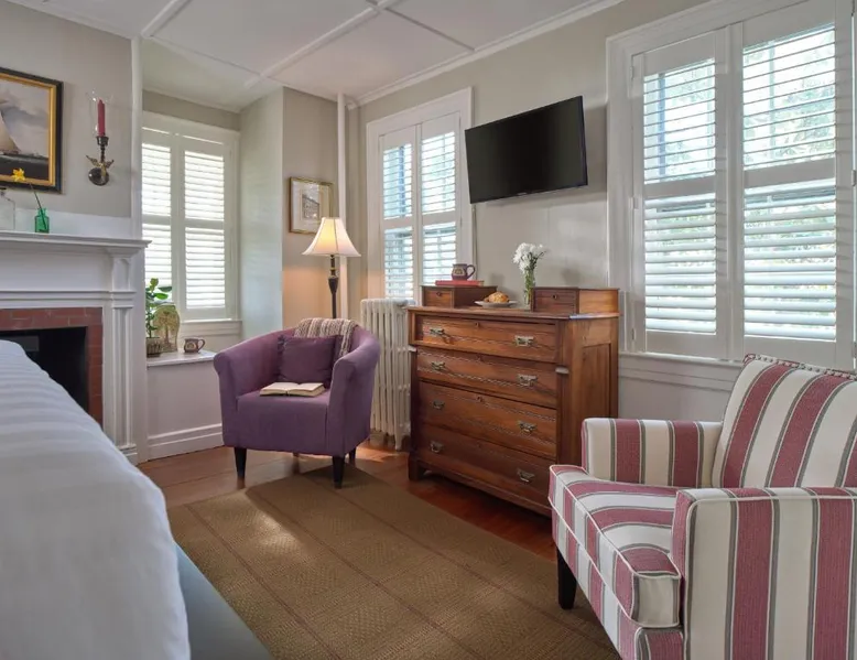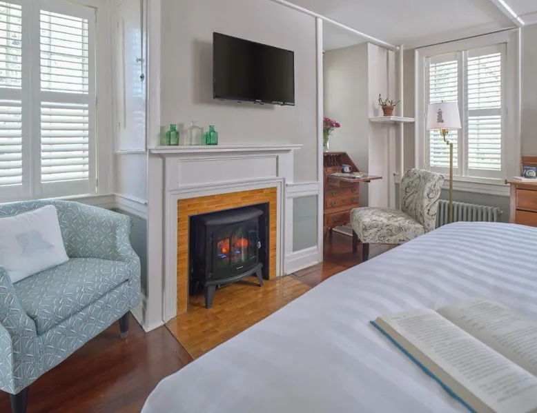 Historic Setting: Old Manse Inn in Brewster offers a recently renovated bed and breakfast experience within a historic building. Guests enjoy a beautiful garden and terrace, complemented by free WiFi throughout the property. Comfortable Accommodations: Rooms feature air-conditioning, private bathrooms with walk-in showers, and modern amenities such as streaming services and flat-screen TVs. Additional comforts include bathrobes, hairdryers, and free toiletries. Exceptional Service: The inn provides private check-in and check-out, a lounge, outdoor fireplace, and wellness packages. Concierge service assists with activities and special dietary menus are available. Local Attractions: Breakwater Beach is a 14-minute walk away, while Cape Cod Gateway Airport lies 12 mi from the property. Nearby attractions include Nauset Lighthouse (12 mi) and Cape Cod National Seashore (15 mi). This double room's special feature is the fireplace. Providing free toiletries and bathrobes, this double room includes a private bathroom with a walk-in shower and a hairdryer. The double room provides air conditioning, a wardrobe, parquet floors, heating, as well as a flat-screen TV with streaming services. The unit offers 1 bed.