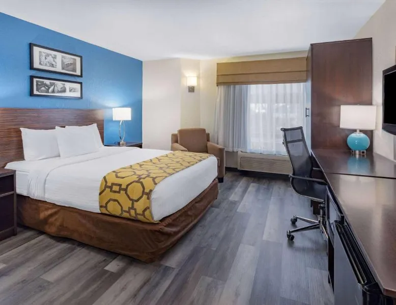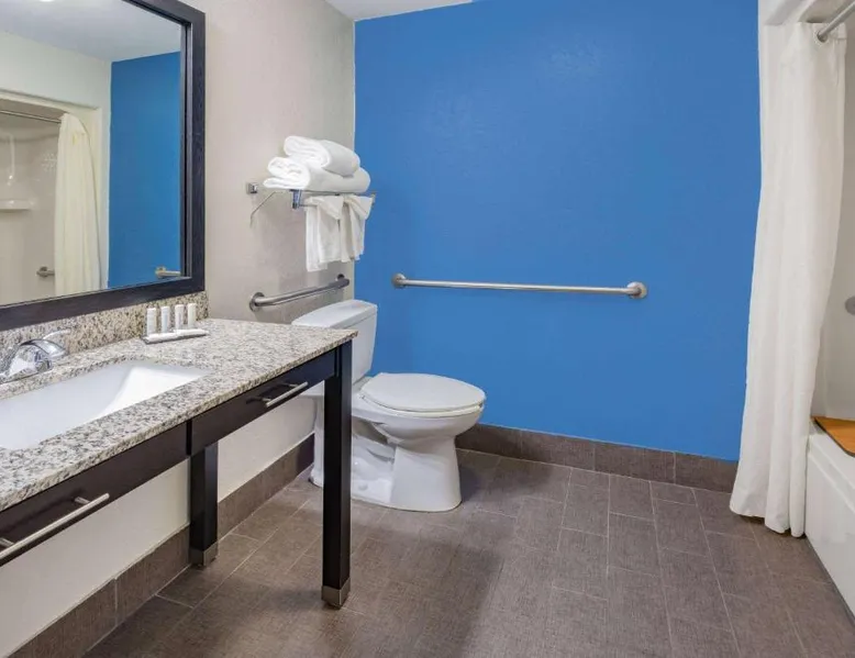 Comfortable Accommodations: Rooms feature air-conditioning, private bathrooms, hairdryers, refrigerators, work desks, free toiletries, microwaves, showers, TVs, and parquet floors. Exceptional Facilities: Guests enjoy an indoor swimming pool, free WiFi, elevator, and a 24-hour front desk. Free on-site parking is available. Delicious Breakfast: A continental breakfast is served with juice, fresh pastries, pancakes, and fruits. Prime Location: Located in Milan, the hotel is 15 mi from Yost Ice Arena, Eastern Michigan University, Crisler Arena, Hill Auditorium, and the University of Michigan. Ann Arbor Hands-On Museum is 16 mi away. The spacious double room features air conditioning, parquet floors, as well as a private bathroom boasting a bath and a shower. This double room offers heating and a flat-screen TV with cable channels. The unit has 1 bed.
