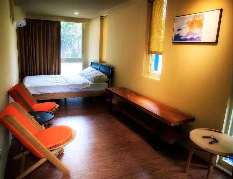 Essential Facilities: Photo Camp in Nantou County offers a sun terrace, garden, and free WiFi. Private check-in and check-out services ensure a smooth arrival and departure. Comfortable Accommodations: Family rooms feature air-conditioning, private bathrooms, and garden or mountain views. Additional amenities include a lounge, shared kitchen, outdoor seating area, and games room. Outdoor Activities: Guests can enjoy fishing, hiking, and cycling in the surrounding area. The property is 45 mi from Taichung International Airport and close to hiking trails. In the well-fitted kitchen, guests will find a stovetop, a refrigerator, a dishwasher and kitchenware. The quadruple room offers air conditioning, a tea and coffee maker, a terrace with garden views as well as a private bathroom boasting a bath. The unit has 3 beds.