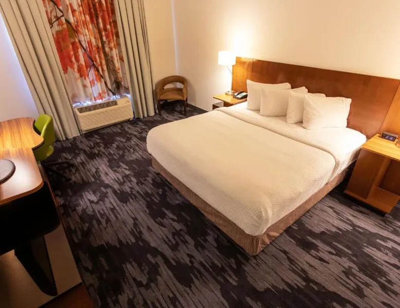 Comfortable Accommodations: Rooms feature air-conditioning, private bathrooms, tea and coffee makers, hairdryers, and work desks. Guests enjoy amenities such as refrigerators, microwaves, and sofas. Facilities and Services: The hotel offers a fitness center, indoor swimming pool, lounge, and 24-hour front desk. Additional services include a minimarket, electric vehicle charging station, business area, and outdoor seating. Convenient Location: Located in Athens, the property is 19 mi from Huntsville International Airport. Nearby attractions include Robert Beaty Historic District (2.5 mi), The Athens Shop (2.5 mi), and Big Spring Park (3.1 mi). Guest Satisfaction: Highly rated for room cleanliness, attentive staff, and convenient location. The unit has 1 bed.