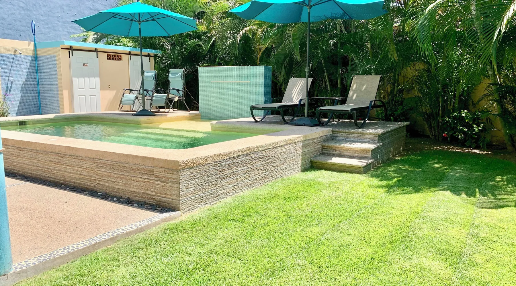 Beautiful newly remodel home, Villa 5 just three blocks from San Pancho beach in town. Partial views , nice private garden with an emerald salt water pool. This just remodel home features 4 bedrooms , 4 baths, The Casa has a pool , mini split A/C 's throughout, spacious patio, stainless appliances including a refrigerator. Outdoor grill. The tropical, deserted beach just a few blocks is a great place for early morning walks and afternoon sunbathing, if you can tear yourself away from your private garden and refreshing pool. This villa Include a 4-seater electric golf cart.