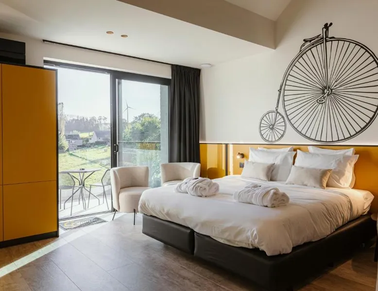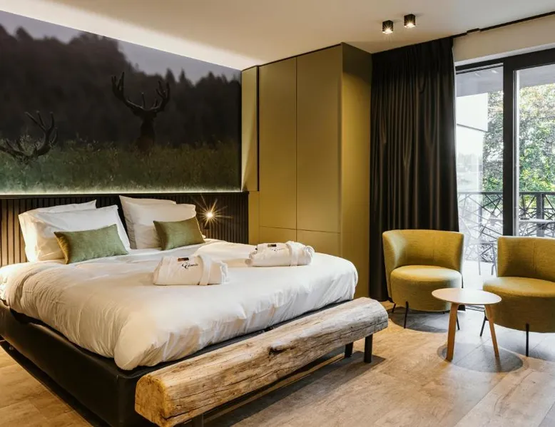 Comfortable Accommodations: CC Nomie Hôtel Restaurant in Dinant offers family rooms with air-conditioning, private bathrooms, and garden views. Each room includes a work desk, mini-bar, and free WiFi. Dining Experience: The traditional and romantic restaurant serves French and Belgian cuisine for lunch and dinner. Guests can enjoy a continental or buffet breakfast. Leisure Facilities: The hotel features a sun terrace, garden, hot tub, and outdoor seating area. Additional amenities include a elevator, electric vehicle charging station, and free on-site private parking. Location and Attractions: Located 50 mi from Charleroi Airport, the hotel is near attractions such as Anseremme (3.7 mi), Bayard Rock (4.3 mi), and Dinant station (6.2 mi). Walking tours and hiking are available. This double room features a hot tub. The spacious double room features air conditioning, soundproof walls, a terrace with garden views as well as a private bathroom boasting a bath. The unit has 1 bed.