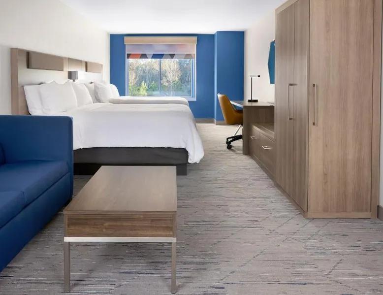 Comfortable Accommodations: Holiday Inn Express & Suites Westfield - Indianapolis by IHG in Westfield offers comfortable rooms with free WiFi, air-conditioning, and modern amenities. Each room includes a work desk, refrigerator, microwave, and TV. Facilities and Services: Guests can enjoy a fitness center, indoor swimming pool, lounge, public bath, and 24-hour front desk. Additional services include a business area, coffee shop, and free on-site private parking. Dining and Breakfast: A buffet breakfast is available each morning. The hotel also features a coffee shop, providing convenient refreshments throughout the day. Location and Attractions: Located 30 mi from Indianapolis International Airport, the hotel is near Lucas Oil Stadium (22 mi), Indianapolis Motor Speedway (24 mi), and Butler University (17 mi). An ice-skating rink is also in the surrounding area. Rooms on the upper floors are reachable by elevator.
