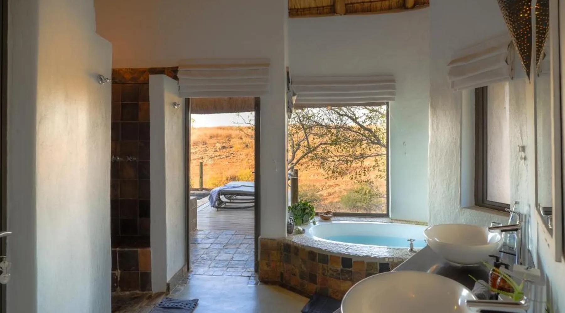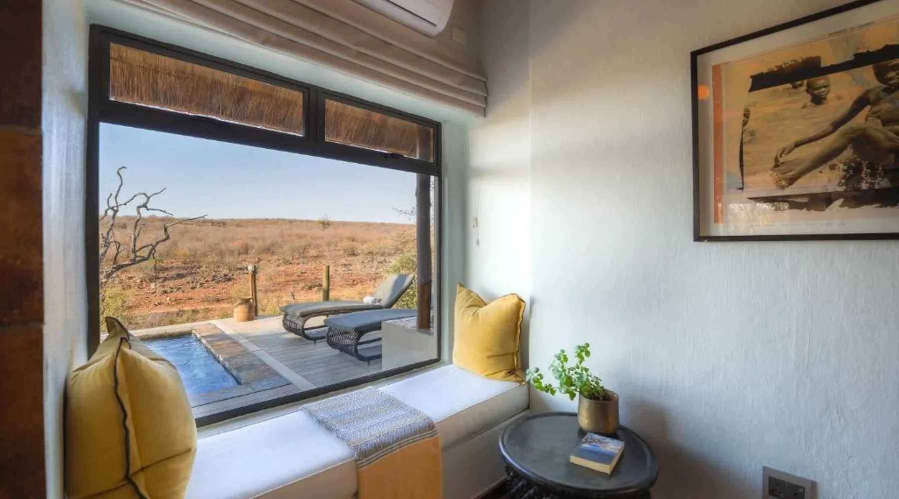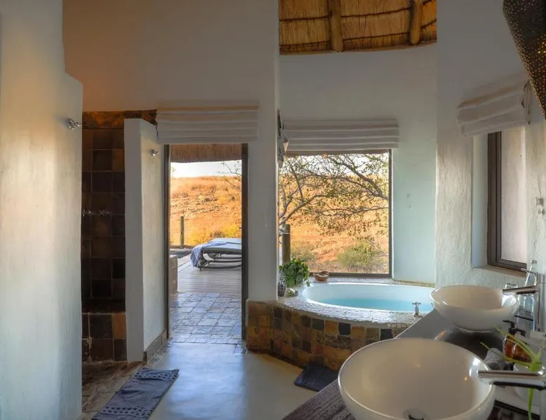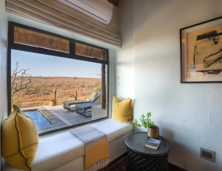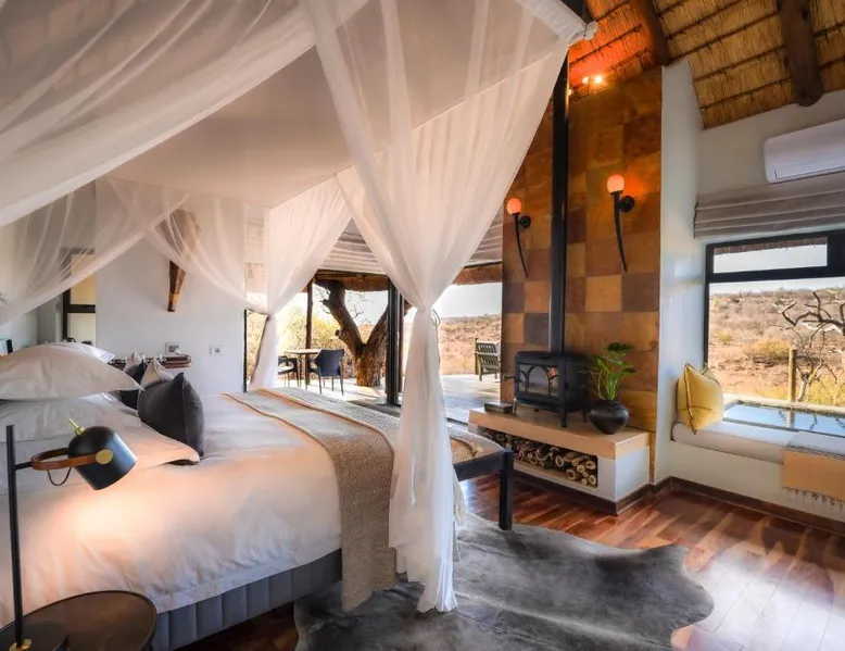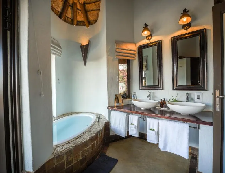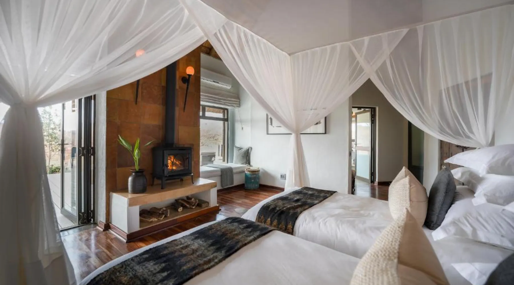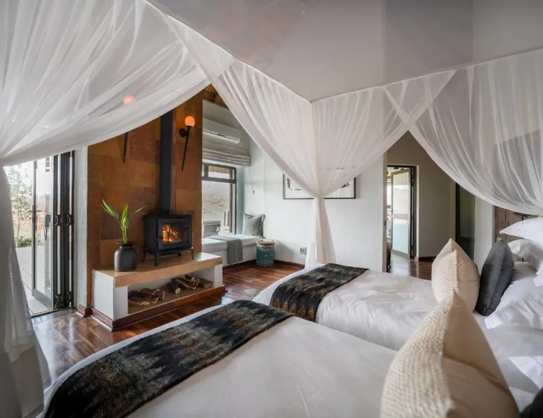 Elegant Accommodations: The Royal Madikwe Luxury Safari Lodge in Madikwe Game Reserve offers family rooms with air-conditioning, private bathrooms, and modern amenities. Each room includes a terrace, balcony, or patio, ensuring a comfortable stay. Exceptional Facilities: Guests can relax in the lush garden or on the terrace, enjoy the pool with a view, and unwind at the bar. Free WiFi is available throughout the property, ensuring connectivity. Dining Experience: A variety of breakfast options are available, including continental, full English/Irish, vegetarian, vegan, halal, and gluten-free. Room service caters to diverse dietary needs, enhancing the dining experience. Convenient Location: Located 26 mi from Blue Tree Golf Driving and Gaborone Game Reserve, the lodge provides easy access to nearby attractions. Free on-site private parking is available for guests’ convenience. The pool with a view and fireplace are the standout features of this double room. A seating area with a flat-screen TV, a desk, a terrace and a private bathroom are provided in this spacious double room. The unit offers 2 beds.