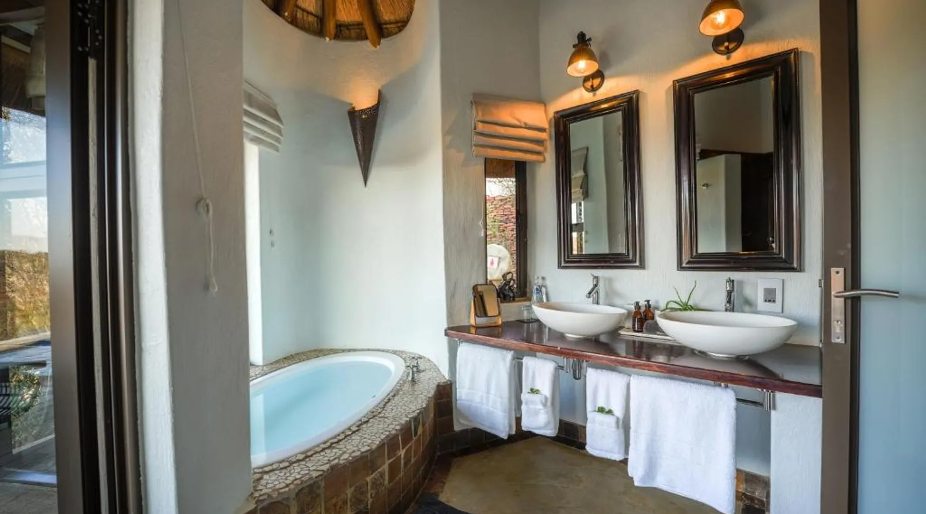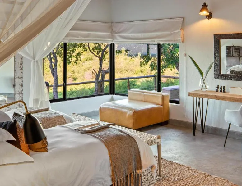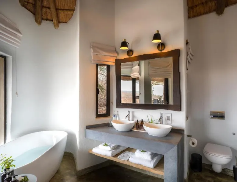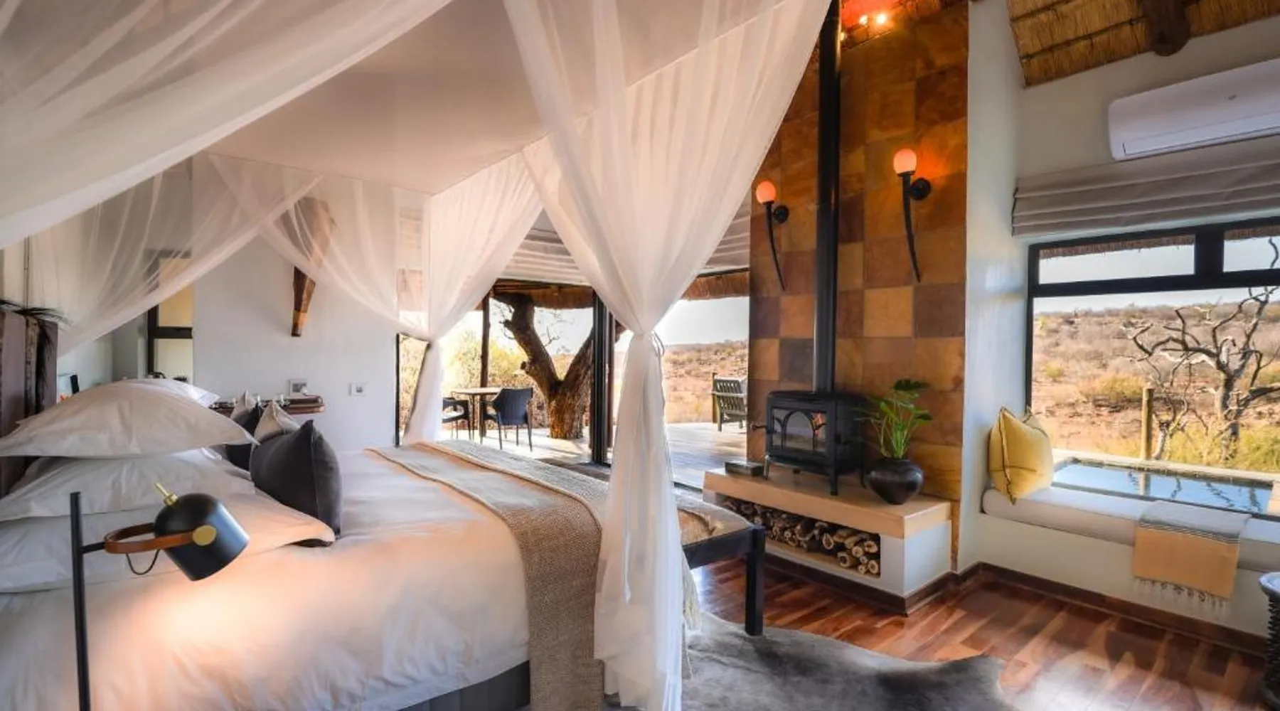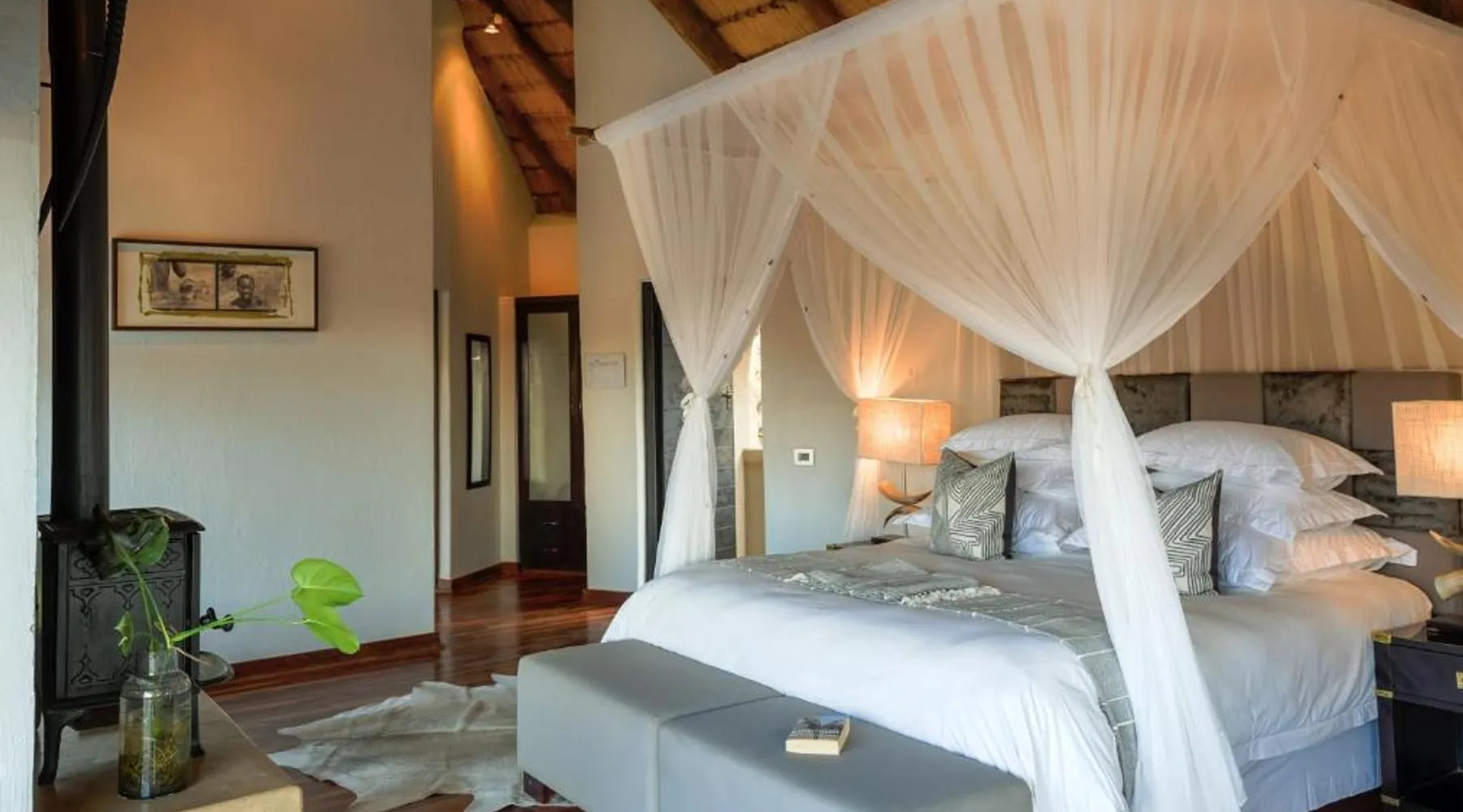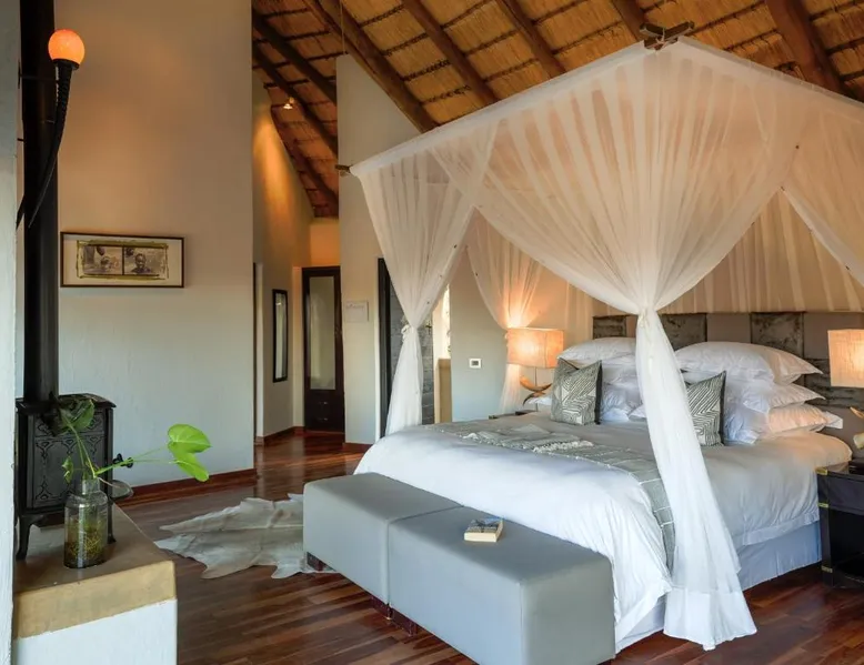 Elegant Accommodations: The Royal Madikwe Luxury Safari Lodge in Madikwe Game Reserve offers family rooms with air-conditioning, private bathrooms, and modern amenities. Each room includes a terrace, balcony, or patio, ensuring a comfortable stay. Exceptional Facilities: Guests can relax in the lush garden or on the terrace, enjoy the pool with a view, and unwind at the bar. Free WiFi is available throughout the property, ensuring connectivity. Dining Experience: A variety of breakfast options are available, including continental, full English/Irish, vegetarian, vegan, halal, and gluten-free. Room service caters to diverse dietary needs, enhancing the dining experience. Convenient Location: Located 26 mi from Blue Tree Golf Driving and Gaborone Game Reserve, the lodge provides easy access to nearby attractions. Free on-site private parking is available for guests’ convenience. The pool with a view and fireplace are the standout features of this double room. A seating area with a flat-screen TV, a desk, a terrace and a private bathroom are provided in this spacious double room. The unit offers 2 beds.