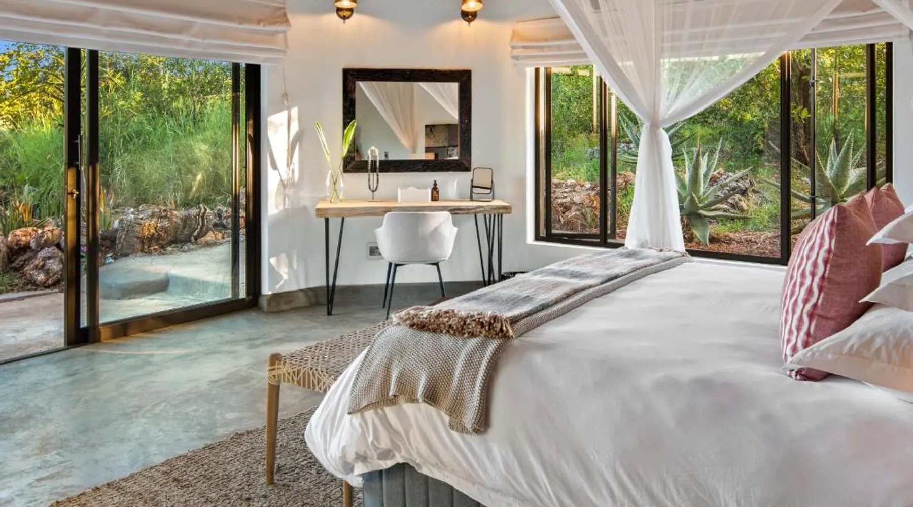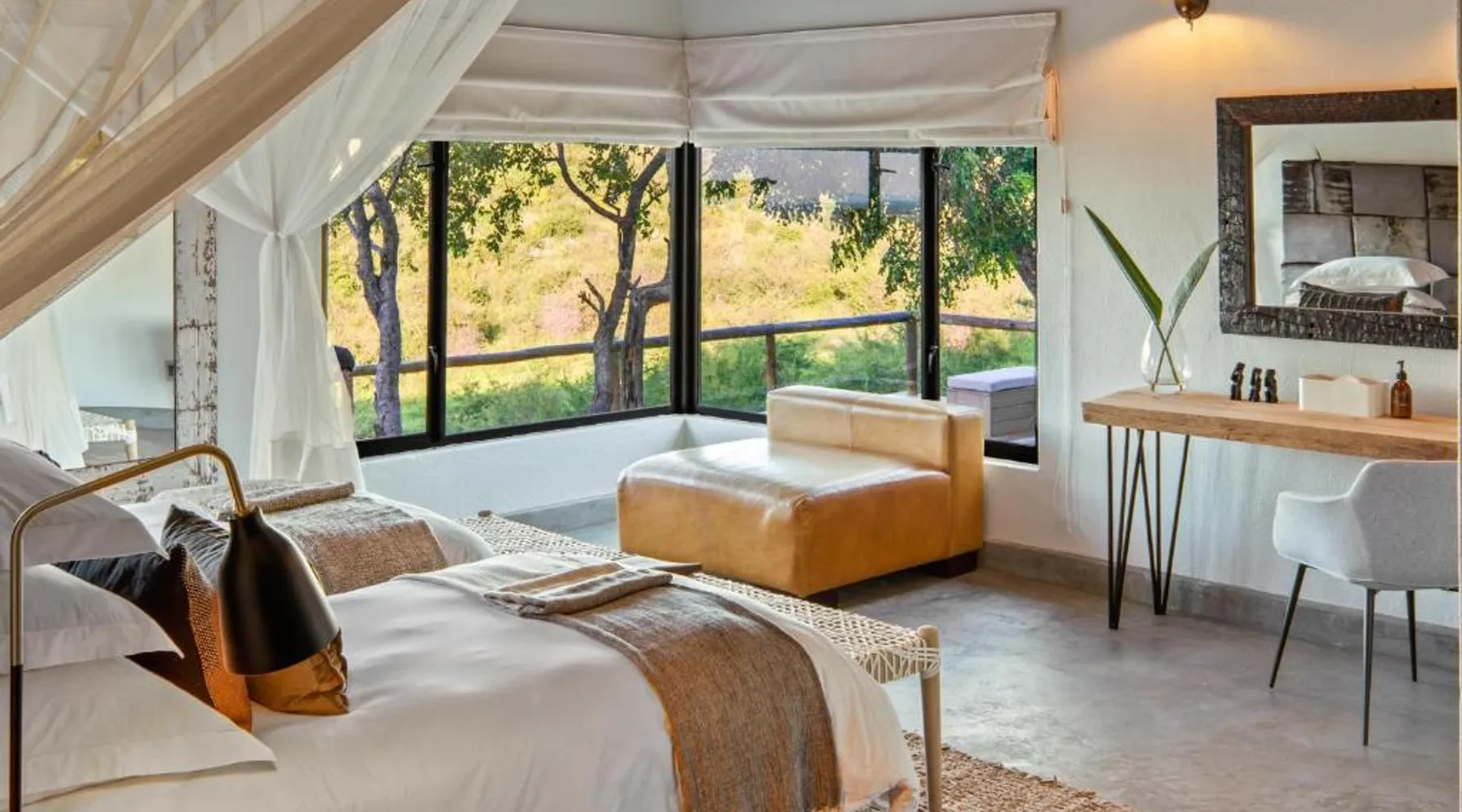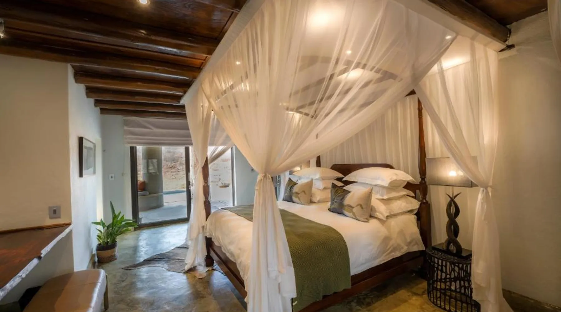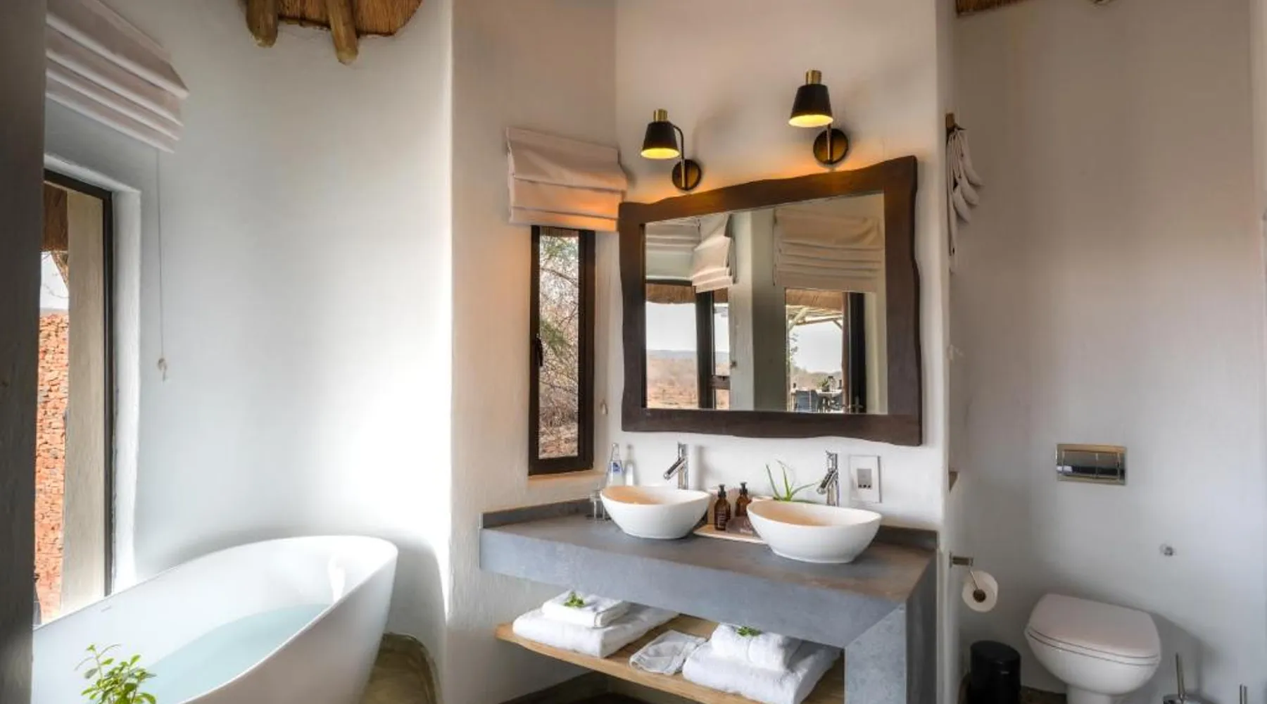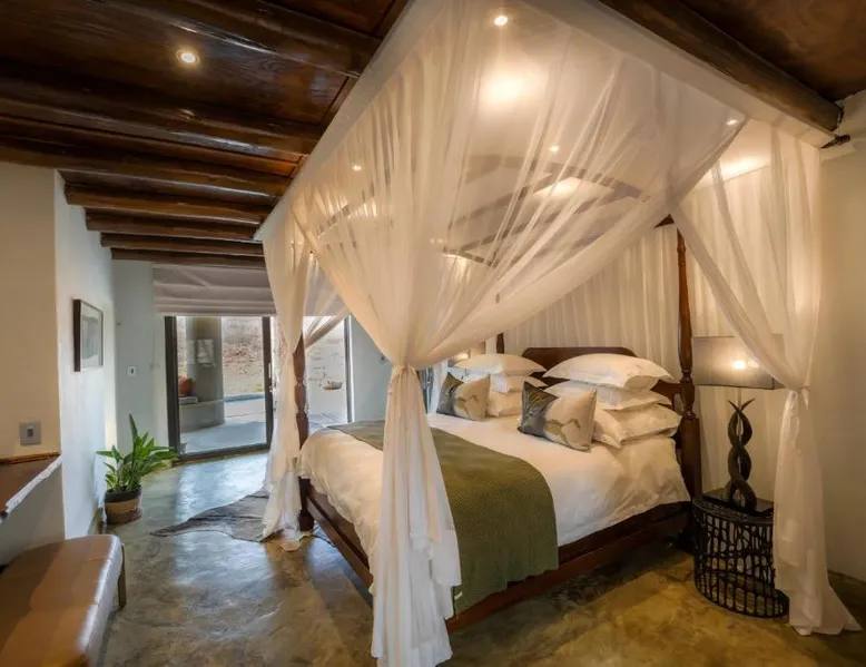 Elegant Accommodations: The Royal Madikwe Luxury Safari Lodge in Madikwe Game Reserve offers family rooms with air-conditioning, private bathrooms, and modern amenities. Each room includes a terrace, balcony, or patio, ensuring a comfortable stay. Exceptional Facilities: Guests can relax in the lush garden or on the terrace, enjoy the pool with a view, and unwind at the bar. Free WiFi is available throughout the property, ensuring connectivity. Dining Experience: A variety of breakfast options are available, including continental, full English/Irish, vegetarian, vegan, halal, and gluten-free. Room service caters to diverse dietary needs, enhancing the dining experience. Convenient Location: Located 26 mi from Blue Tree Golf Driving and Gaborone Game Reserve, the lodge provides easy access to nearby attractions. Free on-site private parking is available for guests’ convenience. The pool with a view and fireplace are the standout features of this double room. A seating area with a flat-screen TV, a desk, a terrace and a private bathroom are provided in this spacious double room. The unit offers 2 beds.