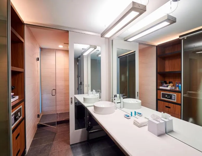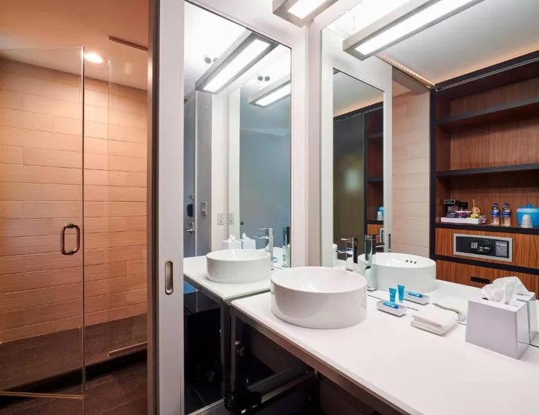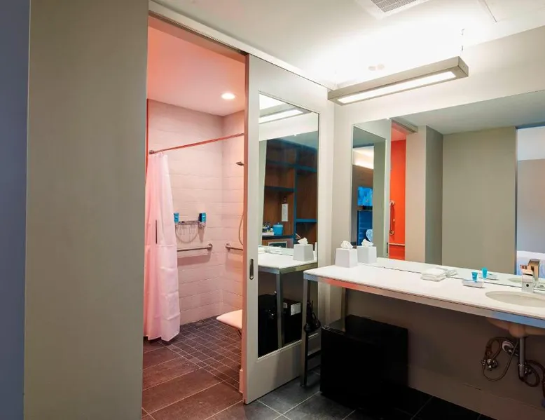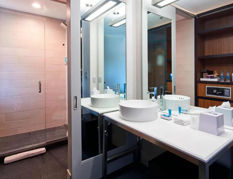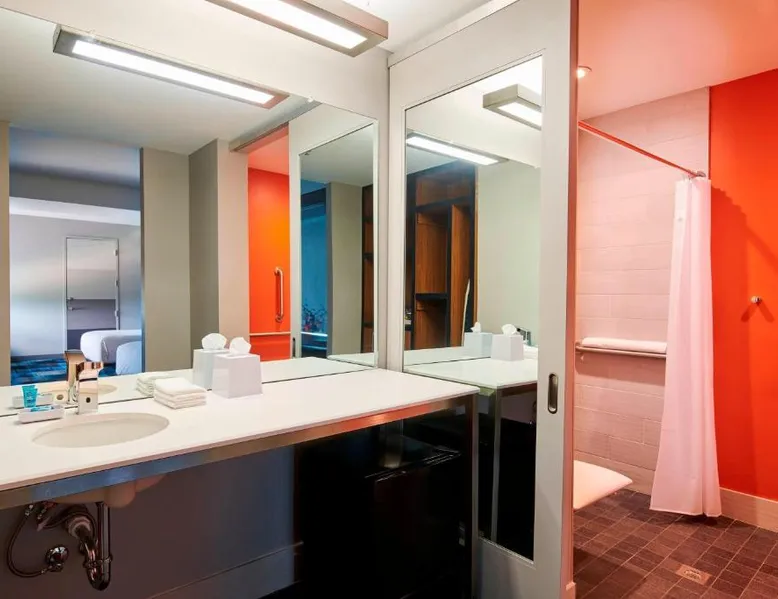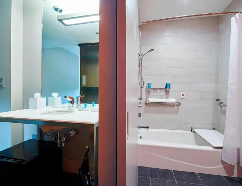 Comfortable Accommodations: Aloft Cleveland Airport in North Olmsted offers comfortable rooms with air-conditioning, free WiFi, and modern amenities. Each room includes a work desk, flat-screen TV, and private bathroom with free toiletries. Exceptional Facilities: Guests can enjoy an indoor swimming pool, fitness center, and free airport shuttle service. The hotel features a family-friendly restaurant serving American cuisine for lunch and dinner, a bar, and a lounge with live music. Convenient Location: Located 2.5 mi from Cleveland Hopkins International Airport, the hotel is a short walk from Westfield Great Northern Shopping Center and close to attractions such as Nasa Glenn Research Center and I-X Center. The unit offers 2 beds.