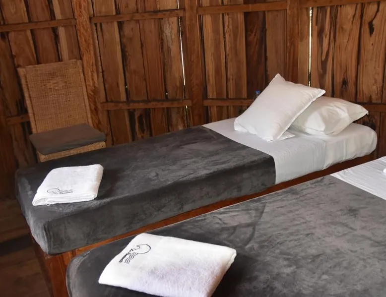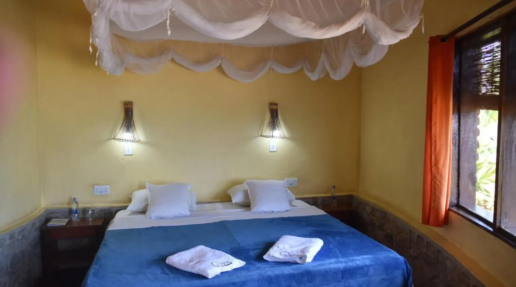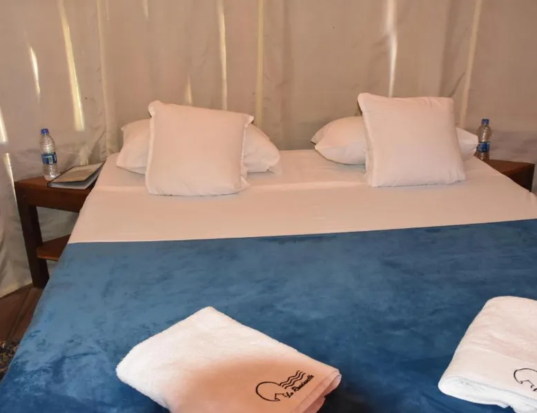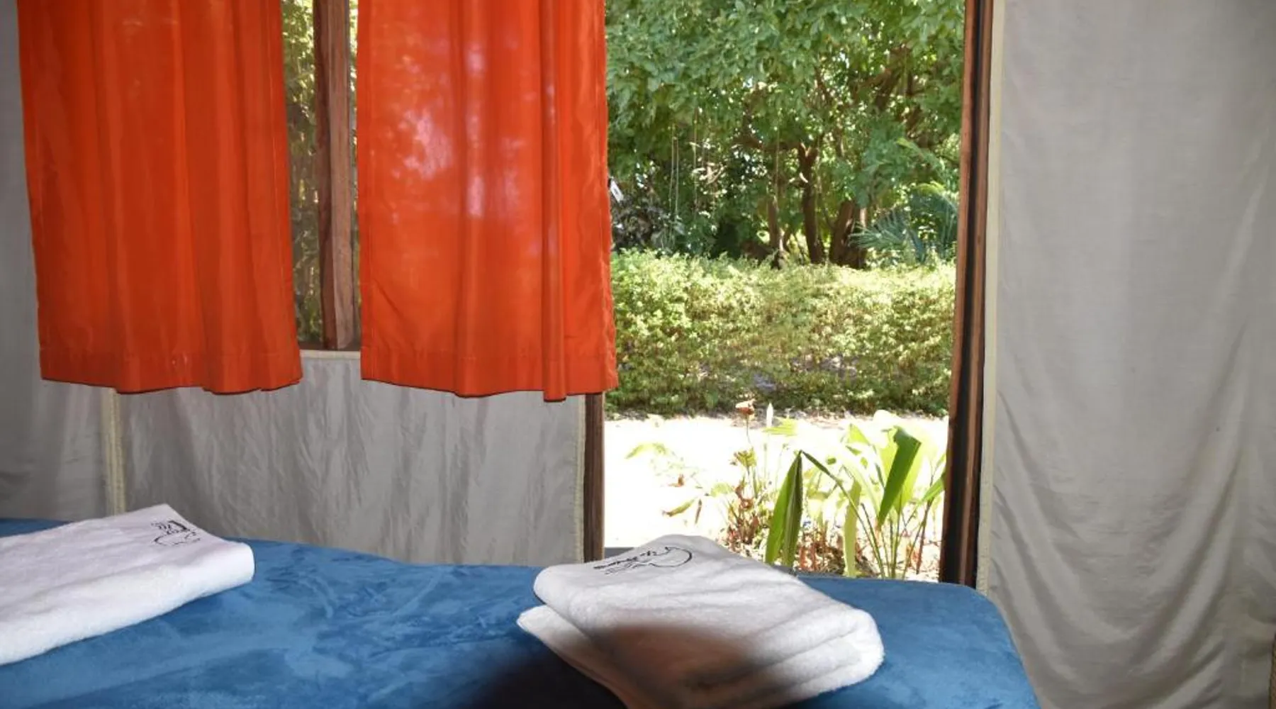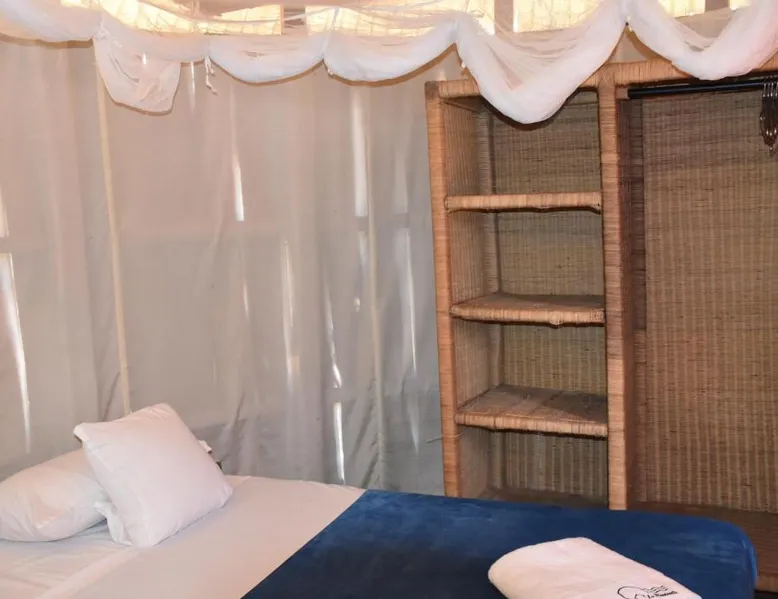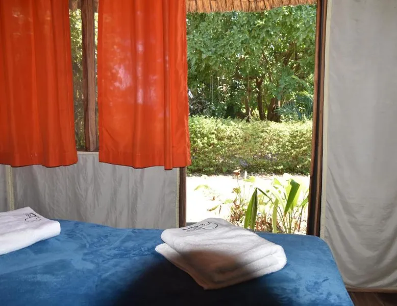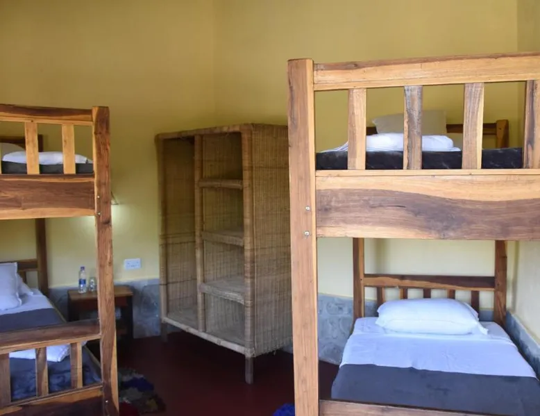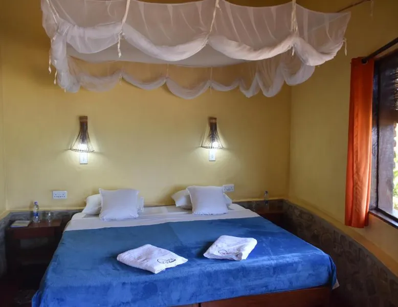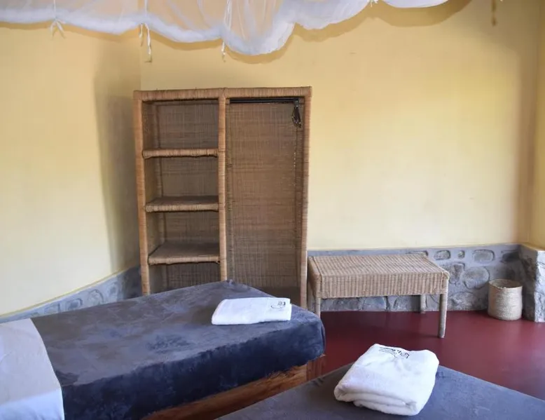 Beachfront Location: La Rondavelle in Chilumba offers a private beach area and beachfront access. Guests can relax on the sun terrace or in the lush garden. Comfortable Accommodations: Rooms feature garden views, private entrances, and shared bathrooms. Ground-floor units provide lake views and wardrobes. Dining Experience: The family-friendly restaurant serves French and Belgian cuisine with vegetarian, vegan, and gluten-free options. Breakfast includes local specialties, juice, pancakes, and fruits. Leisure Activities: Guests can enjoy walking tours, canoeing, and snorkeling. The hotel provides free WiFi, a bar, and barbecue facilities. Nearby Attractions: Stone House Museum is 25 mi away. This twin/double room features a shared bathroom, a private entrance and garden views.