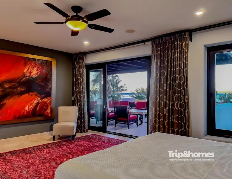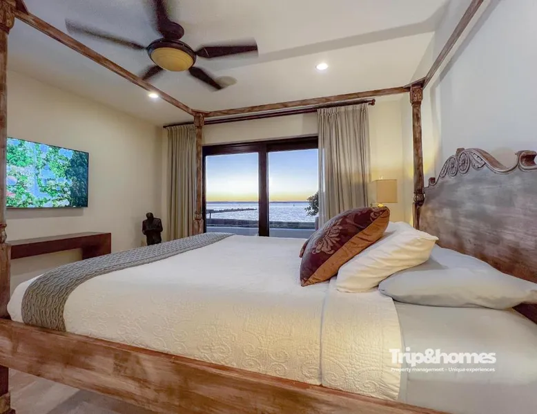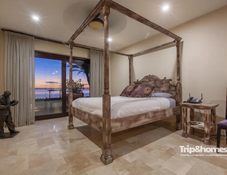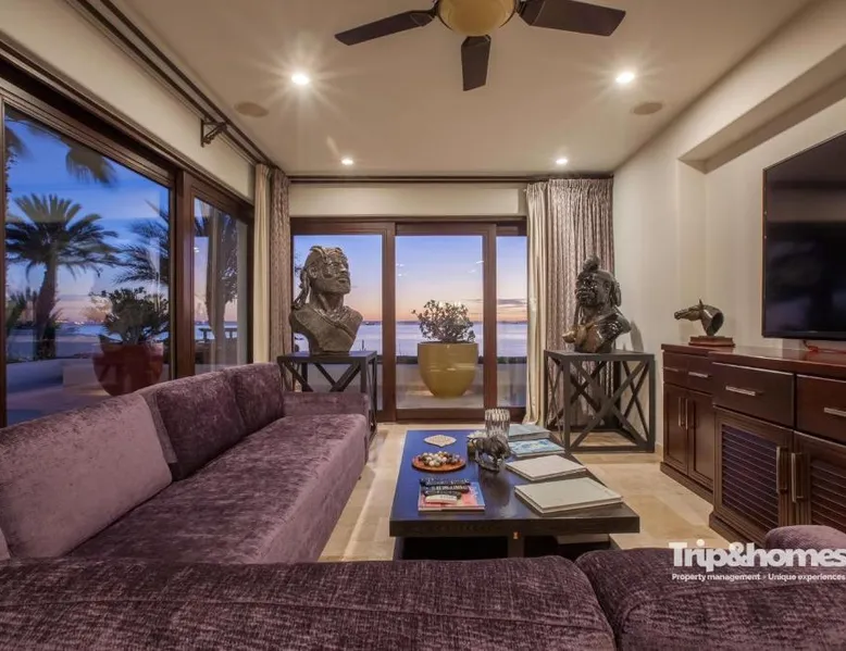 Beachfront Location: Playa de La Paz Luxury 4br Beach front villa in La Paz offers direct beachfront access with a private beach area. Guests enjoy sea views and a swimming pool with a view. Spacious Accommodations: The villa features four bedrooms and five bathrooms, a living room, and a terrace. Amenities include air-conditioning, a kitchenette, balcony, and free WiFi. Leisure Facilities: The property includes a tennis court, hot tub, and outdoor seating area. Additional services include private check-in and check-out, concierge, and full-day security. Nearby Attractions: El Caimancito Beach is just a few steps away, La Concha Beach a 3-minute walk, and Las Tortugas Beach 984 feet nearby. Manuel Márquez de León International Airport is 9.3 mi from the villa. This villa's standout features are the pool with a view and hot tub. Featuring a private entrance, this air-conditioned villa consists of 2 living rooms, 4 separate bedrooms and 5 bathrooms with a bath and a shower. The villa's kitchen, which features kitchenware, is available for cooking and storing food. The spacious villa provides a washing machine, a seating area, a sofa, a flat-screen TV with streaming services, as well as sea views. The unit offers 6 beds and 4 futons.