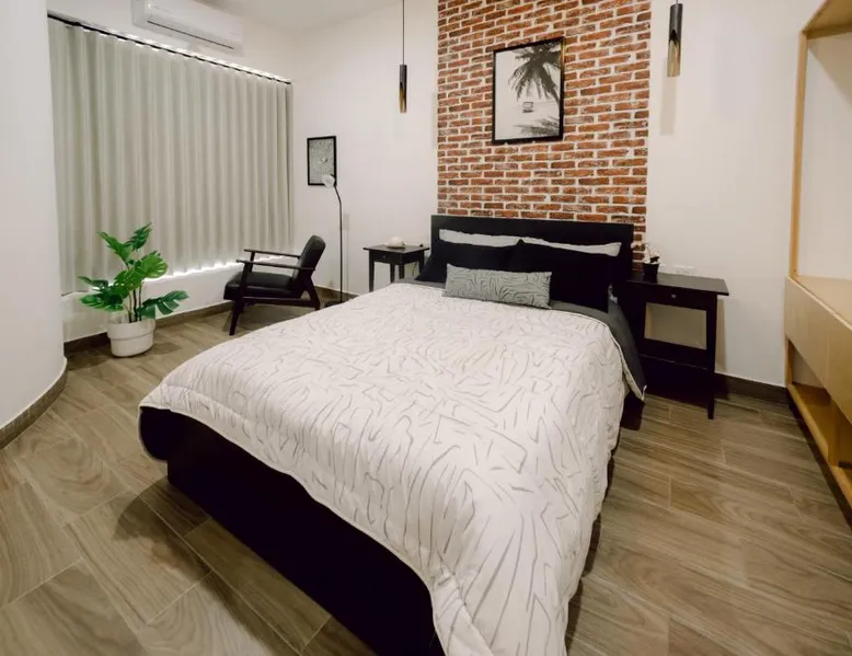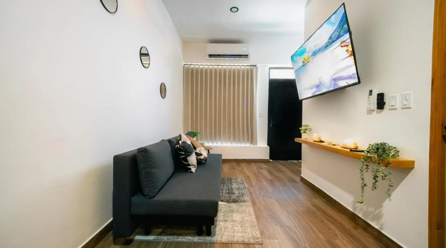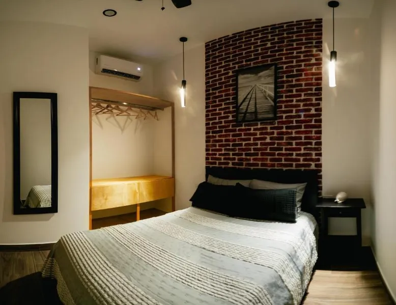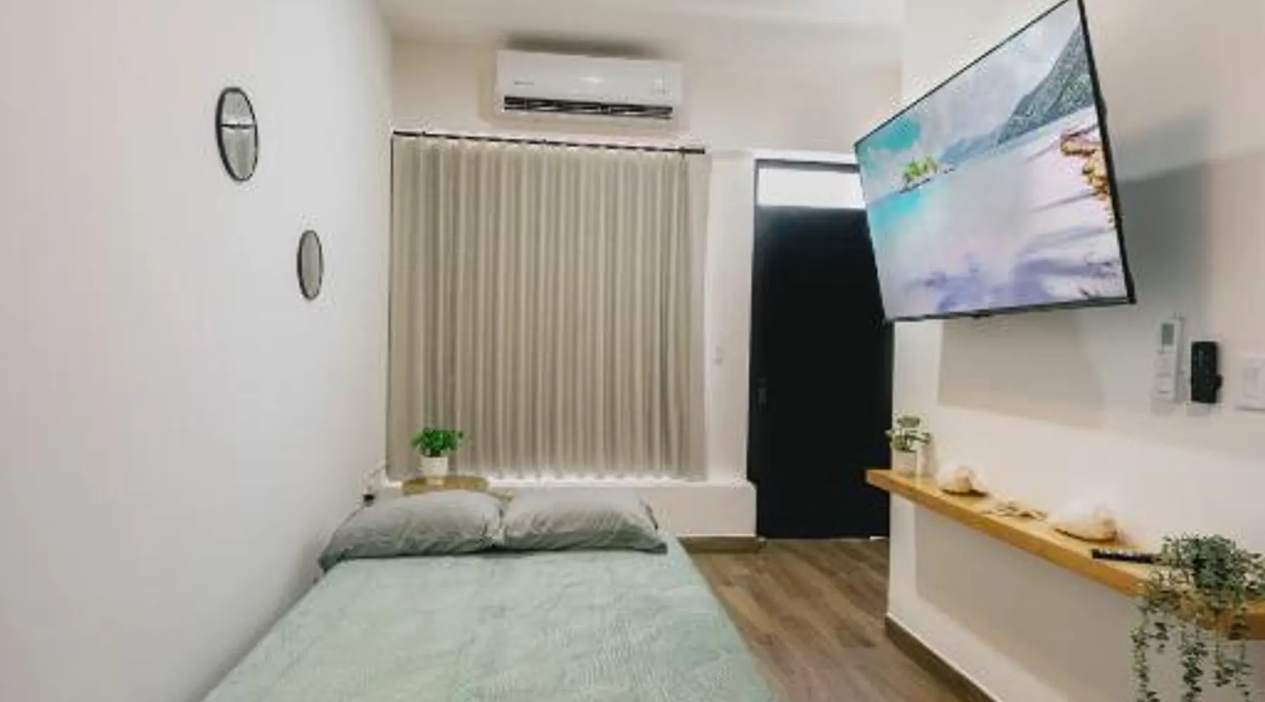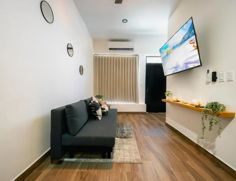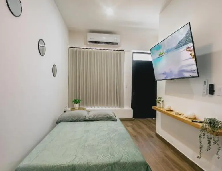 Comfortable Accommodations: Malecón de La Paz, Departamento Don Manolo in La Paz offers a two-bedroom apartment with a living room. The ground-floor unit features parquet floors and a private terrace. Modern Amenities: Guests enjoy free WiFi, air-conditioning, and a fully equipped kitchenette. Additional amenities include a washing machine, dining area, and streaming services. Convenient Location: Located 7.5 mi from Manuel Márquez de León International Airport, the apartment is a 3-minute walk from La Paz Malecon Beach. Reception staff speak English and Spanish. This apartment consists of 1 living room, 2 separate bedrooms and 1 bathroom with a shower and free toiletries. The kitchen is equipped with a refrigerator, kitchenware and a microwave. The apartment features parquet floors, a seating area with a flat-screen TV with streaming services, air conditioning, a washing machine, as well as a coffee machine. The unit offers 3 beds.