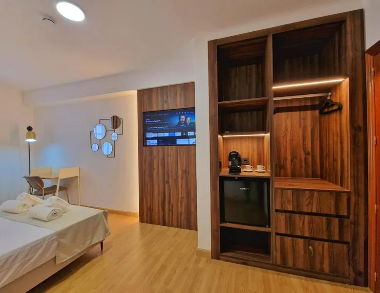 Comfortable Accommodations: HOSTAL HS CEHEGIN in Cehegín offers family rooms with private bathrooms, air-conditioning, and free WiFi. Each room includes a work desk, mini-bar, and soundproofing for a pleasant stay. Exceptional Facilities: Guests can relax on the sun terrace or enjoy the outdoor seating area. The property features a lounge, coffee shop, and indoor play area, ensuring entertainment for all ages. Convenient Services: Private check-in and check-out, a 24-hour front desk, and concierge service provide added convenience. Free parking, a tour desk, and luggage storage enhance the guest experience. Prime Location: Located 52 mi from Region de Murcia International Airport, the guest house is highly rated for its convenient location, room cleanliness, and attentive staff. This triple room features a fireplace. This air-conditioned triple room is consisted of of a flat-screen TV with streaming services, a private bathroom as well as outdoor furniture. The unit has 2 beds.