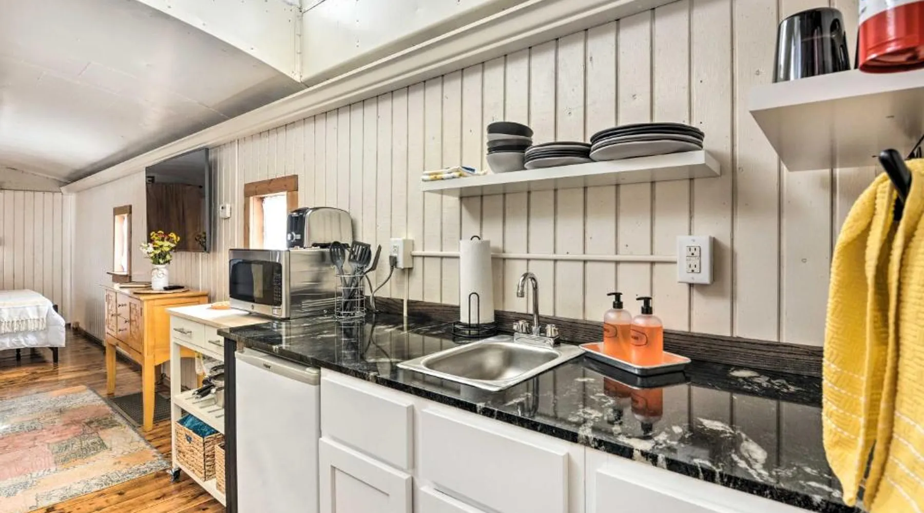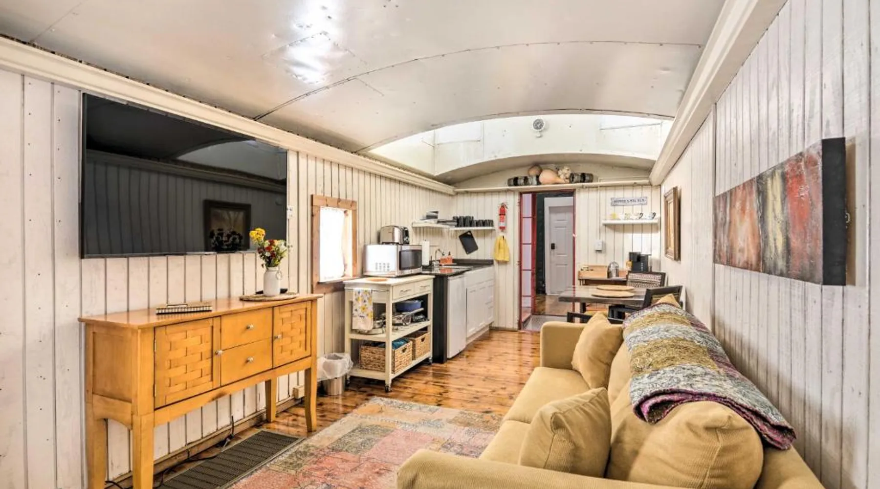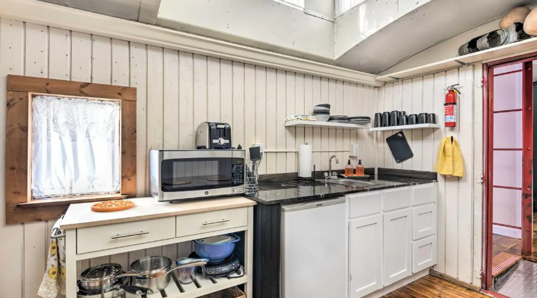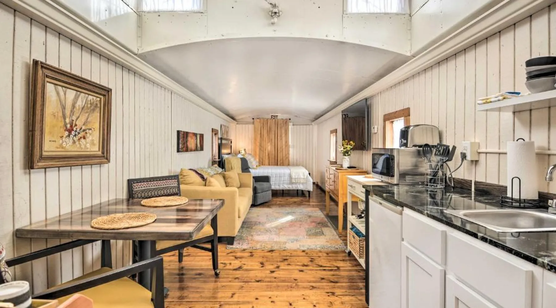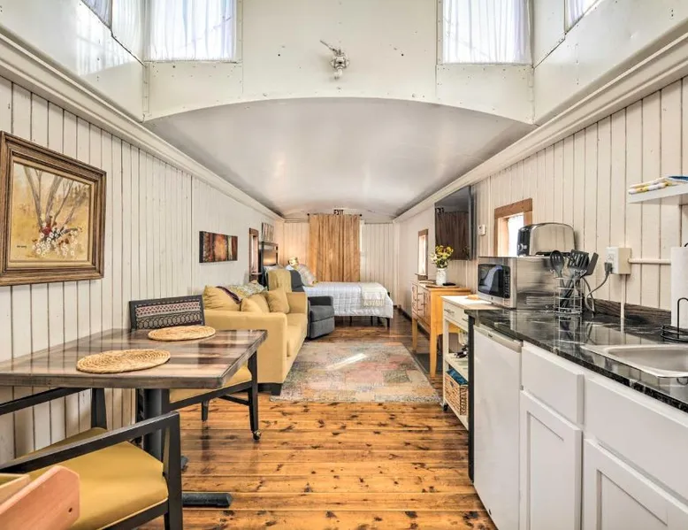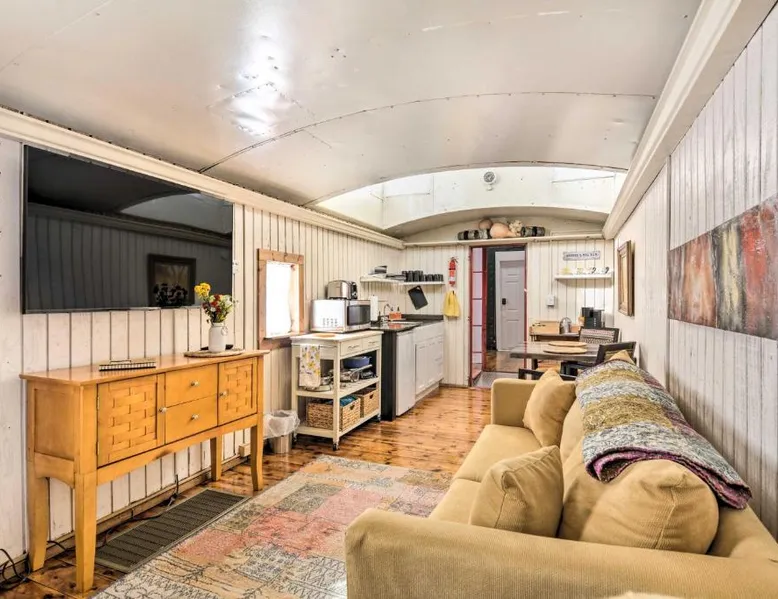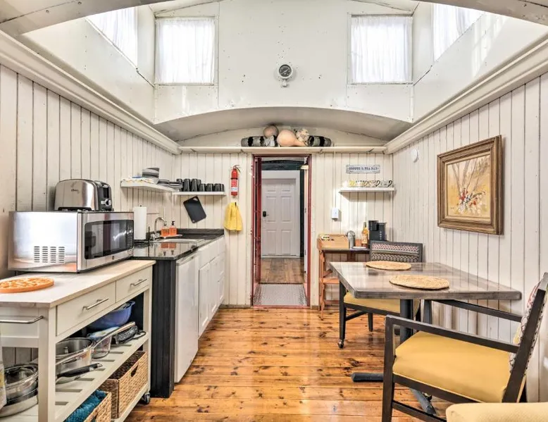Spacious Accommodations: Unique Joplin Gem Converted Train Car Studio in Joplin offers a spacious apartment with a private entrance. Guests enjoy free WiFi, air-conditioning, and a fully equipped kitchen. Modern Amenities: The apartment features a private bathroom with a shower, tea and coffee maker, hairdryer, coffee machine, refrigerator, free toiletries, microwave, TV, and kitchenware. Convenient Location: Located 6.2 mi from Joplin Regional Airport, the property provides paid on-site parking. Highly rated by guests, it ensures a comfortable and enjoyable stay. Meals can be prepared in the well-fitted kitchen, which comes with a refrigerator, kitchenware, a microwave and a tea and coffee maker. The spacious apartment provides air conditioning, a private entrance, as well as a private bathroom featuring a shower and a hairdryer.