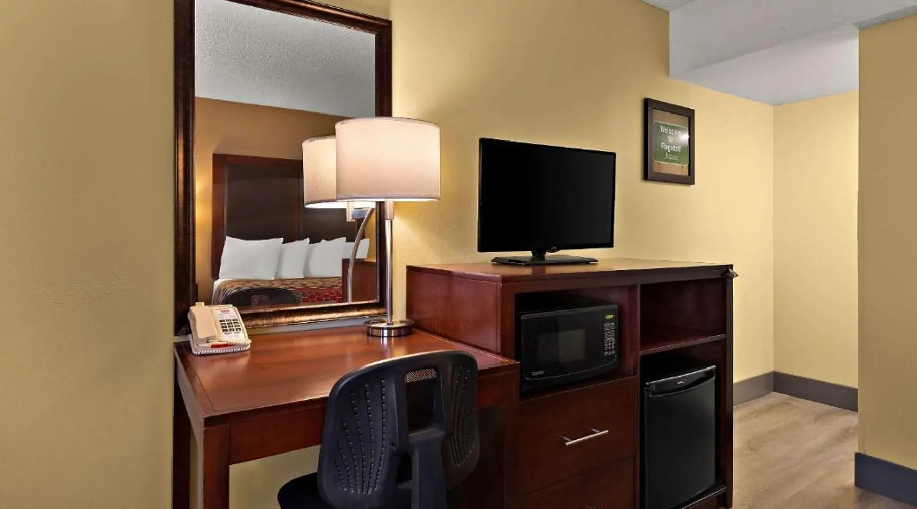 Kings House Motor Hotel offers free WiFi and a business center. All rooms include a small fridge. Northern Arizona University is a 5-minute drive away. Coffee-making facilities, a work desk and cable TV with HBO movie channels are standard in every Kings House Motor Hotel room. Laundry facilities and vending machines are available at Kings House Motor Hotel. Free parking is provided on site. Riordan Mansion State Historic Park is 2.4 miles from Kings House Motor Hotel. Walnut Canyon National Monument is 10.5 miles from the hotel and Sedona Red Rock jeep tours are just a 40-minute drive away. The double room offers air conditioning, a tea and coffee maker, as well as a private bathroom boasting a shower and a hairdryer. This double room has a seating area, heating and a TV with cable channels. The unit has 1 bed.