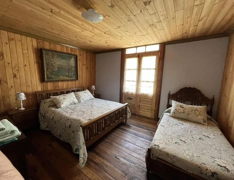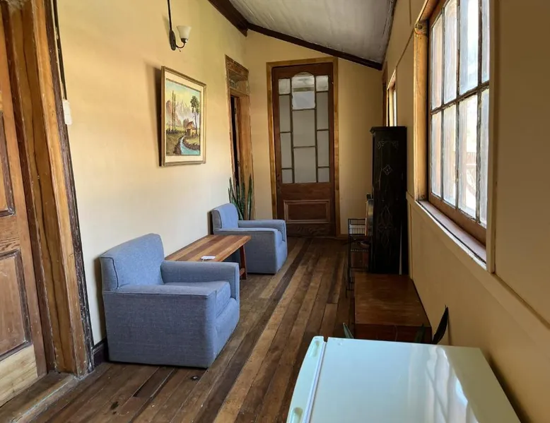 Elegant Accommodations: Hostal Casa Rosada in Rivadavia offers a recently renovated country house with a garden, terrace, and seasonal outdoor swimming pool. Free WiFi is available in public areas. Comfortable Amenities: The property features family rooms, a dining area, and a seating area. Additional amenities include a balcony, bath, shower, and free on-site private parking. Scenic Views: Guests can enjoy garden, terrace, patio, mountain, and city views. The quiet street provides a peaceful setting. Convenient Location: Located 46 mi from La Florida Airport, the property offers easy access to local attractions. The triple room features a seating area, a dining area, a terrace with garden views as well as a shared bathroom boasting a bath. The unit has 2 beds.