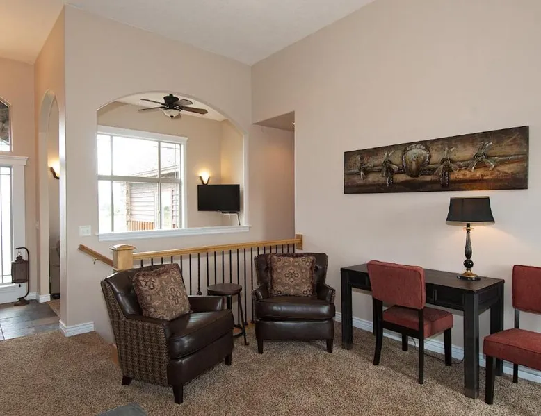 Spacious Accommodations: Teton Harmony in Driggs offers a spacious holiday home with a fully equipped kitchen, washing machine, and a cozy fireplace. Guests can relax on the patio or enjoy the outdoor space. Modern Amenities: The property includes a TV, hairdryer, and a comfortable seating area. Reception staff are available in English to assist with any needs. Convenient Location: Located 43 mi from Jackson Hole Airport, Teton Harmony provides easy access to local attractions. The surrounding area offers scenic views and various activities for visitors. The fireplace is a top feature of this apartment. The apartment's kitchen is available for cooking and storing food. The spacious apartment features a washing machine, tumble dryer, heating, as well as a TV with cable channels.