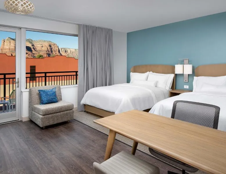 Comfortable Accommodations: Element Sedona in Sedona offers family rooms with private bathrooms, air-conditioning, and free WiFi. Each room includes a work desk, seating area, and modern amenities. Leisure Facilities: Guests can enjoy a saltwater swimming pool, fitness center, and hot tub. Additional facilities include a lounge, outdoor fireplace, and bar. Free bicycles are available for exploring the area. Dining Options: A daily American breakfast is served à la carte, complemented by a coffee shop and outdoor seating area. Streaming services and a minimarket enhance the stay. Location and Attractions: Located 47 mi from Flagstaff Pulliam Airport, the hotel is near attractions such as Chapel of the Holy Cross (5 mi), Cliff Castle Casino (17 mi), and Montezuma Castle National Monument (19 mi). Hiking opportunities are available. Providing free toiletries, this studio includes a private bathroom with a shower and a hairdryer. In the fully equipped kitchenette, guests will find a stovetop, a refrigerator, a dishwasher and kitchenware. The air-conditioned studio provides a flat-screen TV with streaming services, a private entrance, a tea and coffee maker and a seating area. The unit offers 2 beds.