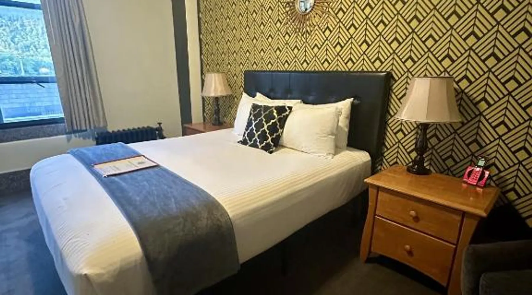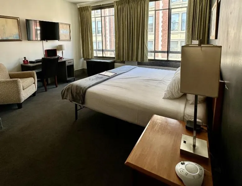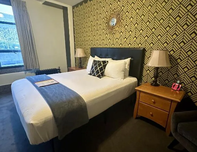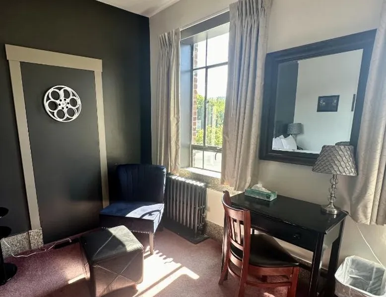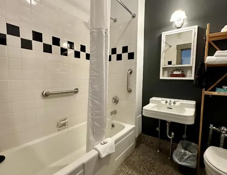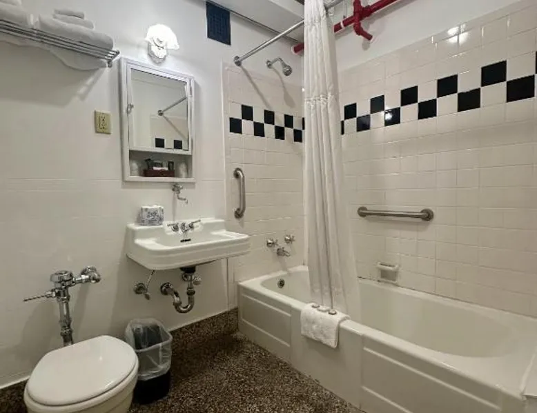 Comfortable Accommodations: Latchis Hotel in Brattleboro offers family rooms with air-conditioning, private bathrooms, and free WiFi. Each room includes a work desk, TV, and wardrobe, ensuring a pleasant stay. Exceptional Facilities: Guests can enjoy a bar and free on-site parking. Additional amenities include a elevator, concierge service, evening entertainment, and a business area. Free WiFi is available throughout the property. Prime Location: Located 1.9 mi from Fort Dummer State Park and 24 mi from Mount Snow Resort, the hotel provides easy access to local attractions. Nearby activities include skiing and hiking. Highly Rated by Guests: Latchis Hotel is highly rated by guests for its excellent facilities and comfortable accommodations. Offering free toiletries, this double room includes a private bathroom with a bath, a shower and a hairdryer. The air-conditioned double room offers a flat-screen TV with cable channels, a private entrance, a wardrobe, a carpeted floor as well as mountain views. The unit offers 1 bed.