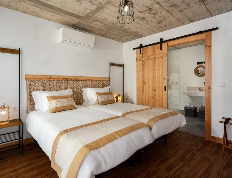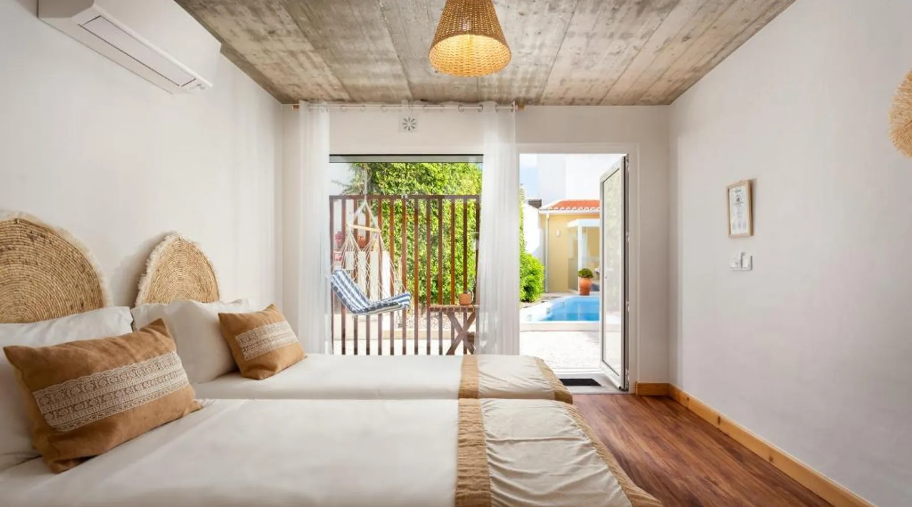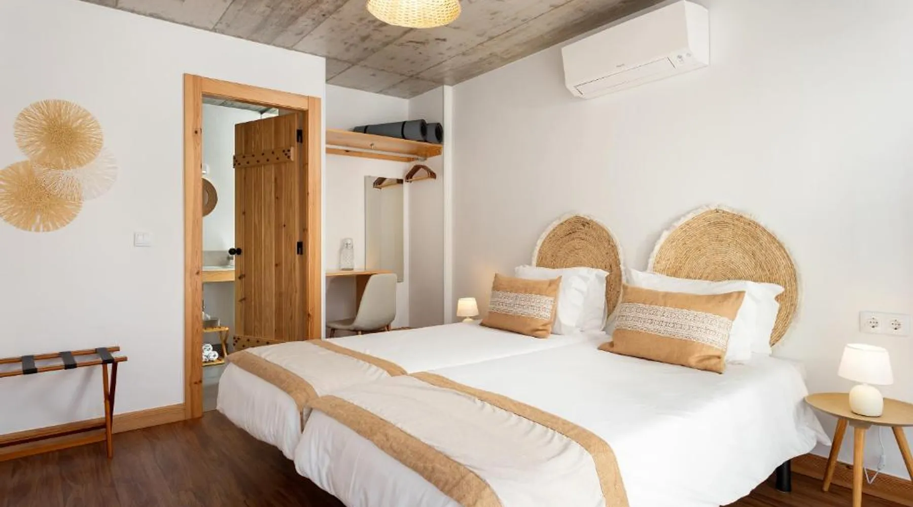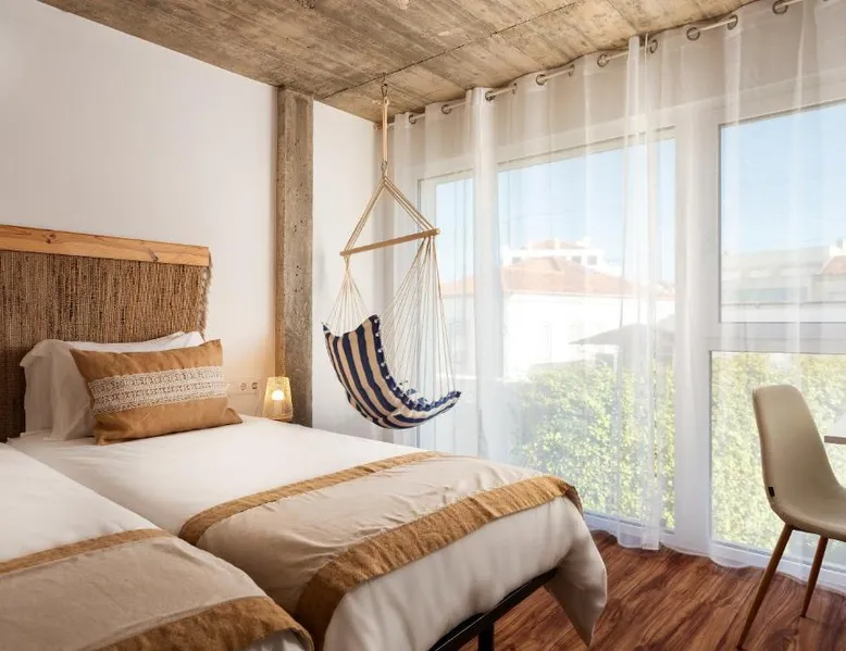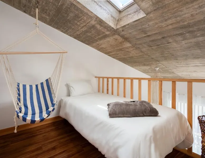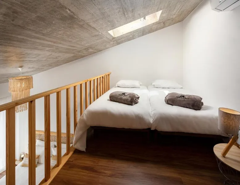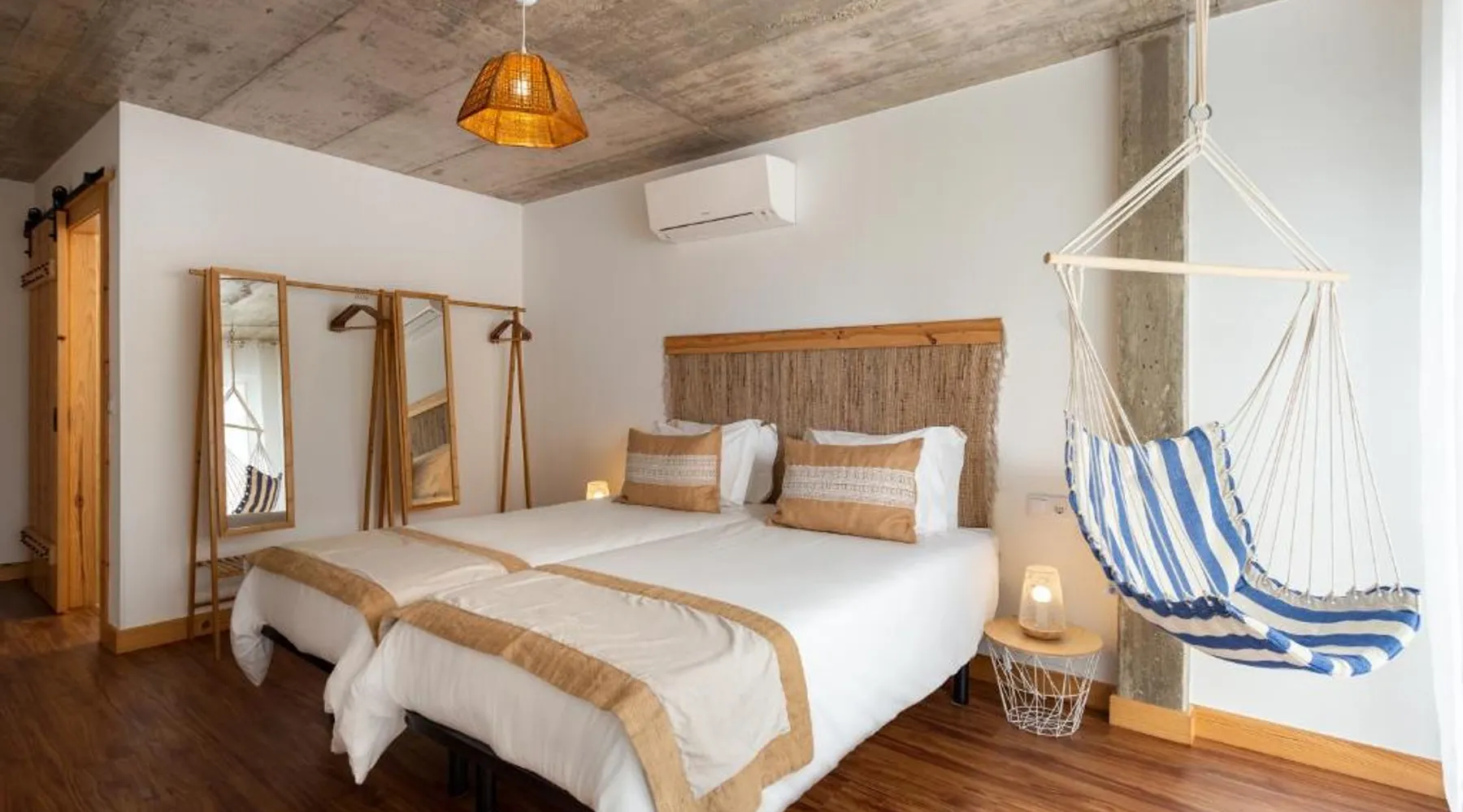 Beachfront Location: Santa Cruz Dove House - PADI Center in Santa Cruz offers direct beachfront access and stunning views. Guests can relax by the swimming pool or sun terrace, while the lush garden provides a tranquil setting. Comfortable Accommodations: Rooms feature air-conditioning, private bathrooms, and modern amenities such as free WiFi, flat-screen TVs, and soundproofing. Additional facilities include a coffee shop, outdoor seating area, and family rooms. Dining and Activities: A continental breakfast is served daily, and yoga classes and walking tours are available. The property also provides a tour desk and luggage storage, ensuring a comfortable and enjoyable stay. Nearby Attractions: Praia de Santa Helena is a 2-minute walk away, while Baleal lies 21 mi from the resort. Other points of interest include Obidos Castle (27 mi) and Sintra National Palace (31 mi). Humberto Delgado Airport is 35 mi distant. The twin room provides air conditioning, a private entrance, a terrace with pool views as well as a private bathroom featuring a walk-in shower. The unit offers 2 beds.