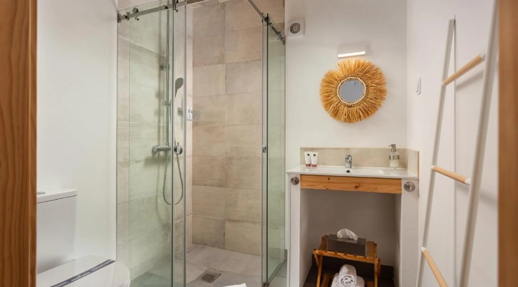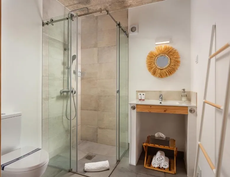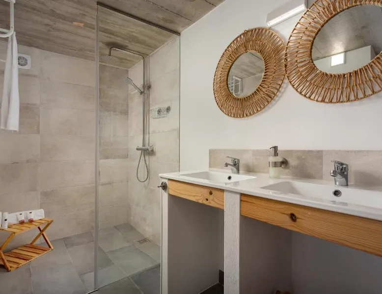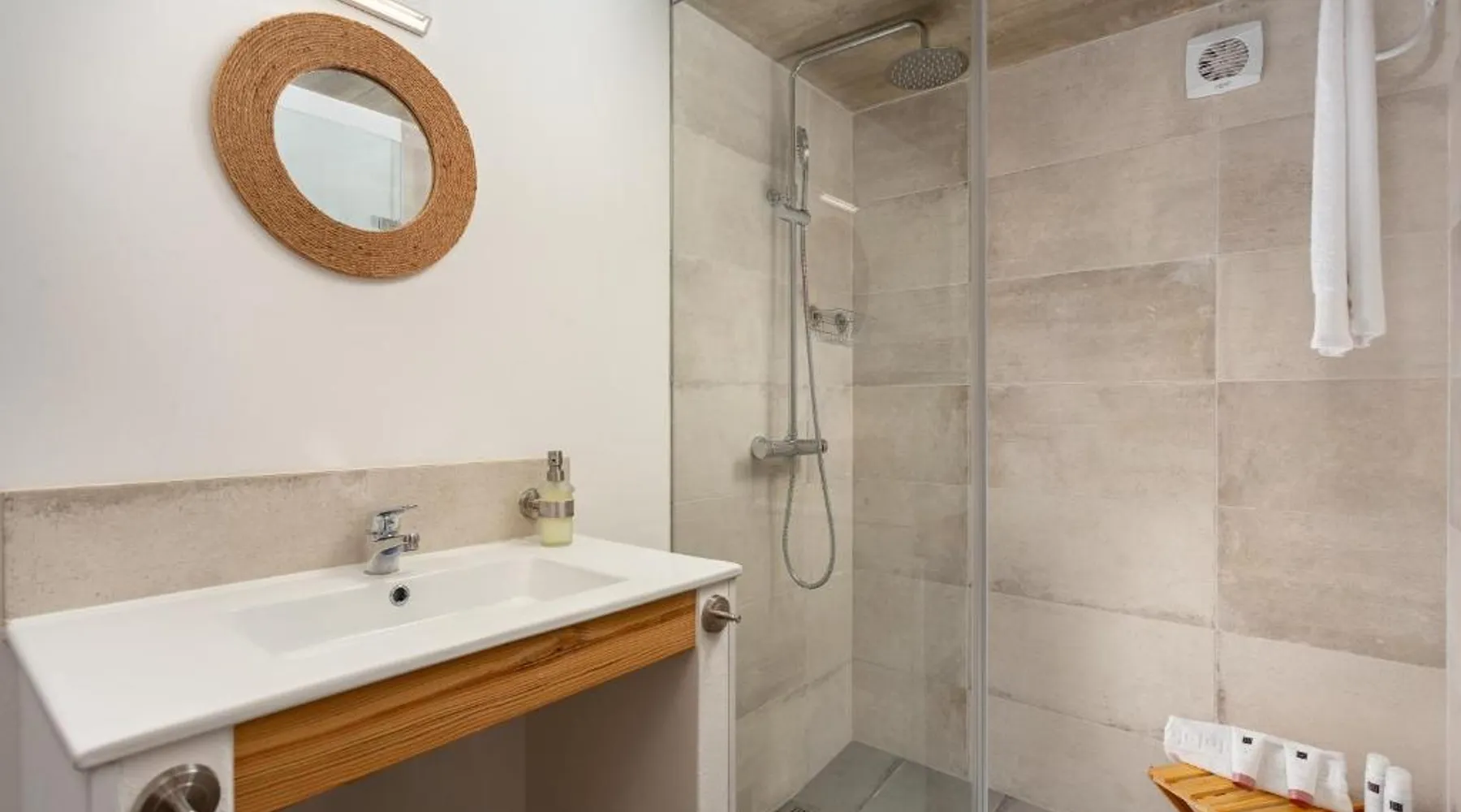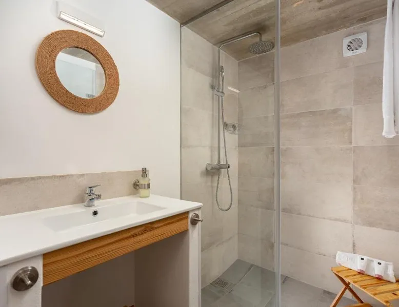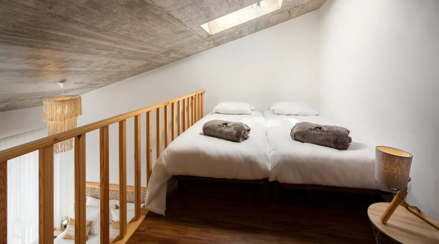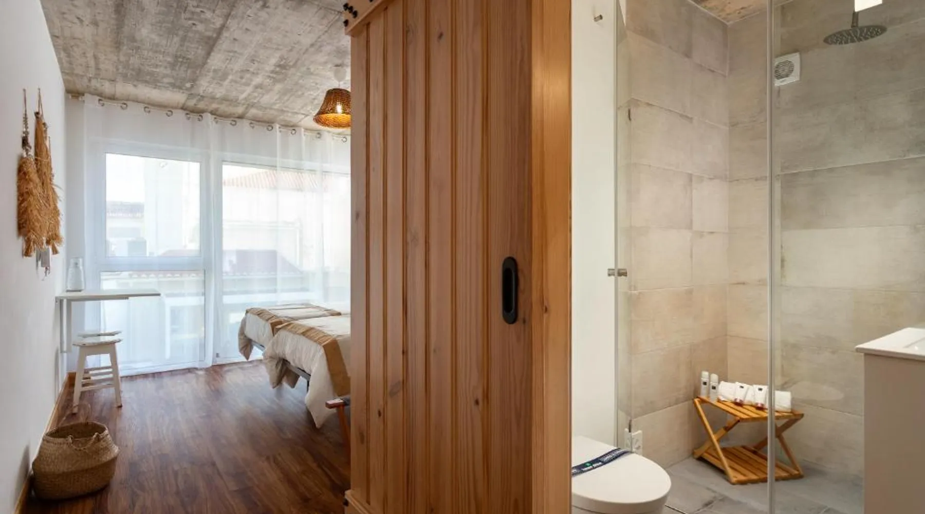 Beachfront Location: Santa Cruz Dove House - PADI Center in Santa Cruz offers direct beachfront access and stunning views. Guests can relax by the swimming pool or sun terrace, while the lush garden provides a tranquil setting. Comfortable Accommodations: Rooms feature air-conditioning, private bathrooms, and modern amenities such as free WiFi, flat-screen TVs, and soundproofing. Additional facilities include a coffee shop, outdoor seating area, and family rooms. Dining and Activities: A continental breakfast is served daily, and yoga classes and walking tours are available. The property also provides a tour desk and luggage storage, ensuring a comfortable and enjoyable stay. Nearby Attractions: Praia de Santa Helena is a 2-minute walk away, while Baleal lies 21 mi from the resort. Other points of interest include Obidos Castle (27 mi) and Sintra National Palace (31 mi). Humberto Delgado Airport is 35 mi distant. The twin room provides air conditioning, a private entrance, a terrace with pool views as well as a private bathroom featuring a walk-in shower. The unit offers 2 beds.