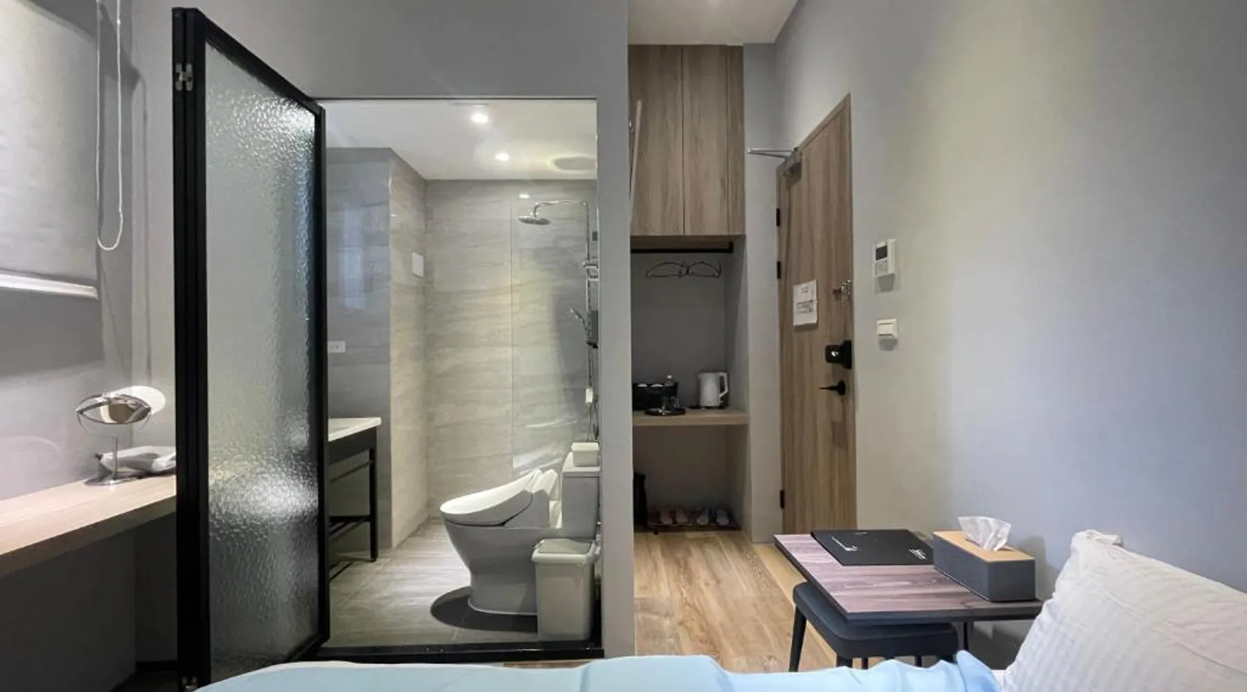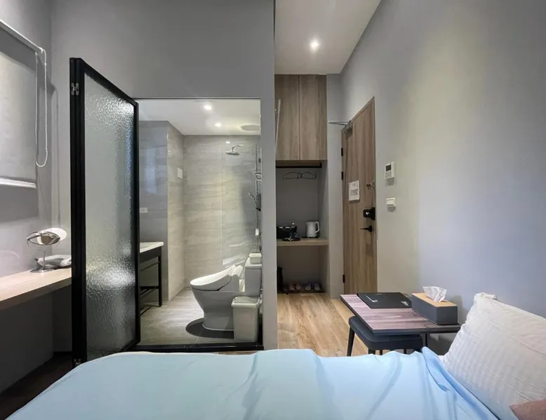 Comfortable Accommodations: 蘆思特六合民宿 in Kaohsiung offers family rooms with air-conditioning, private bathrooms, and modern amenities. Each room includes a dining area, TV, and free WiFi. Dining and Leisure: The homestay features a restaurant serving local cuisine in a modern ambiance, a bar, and an outdoor seating area. Guests can enjoy a buffet breakfast with Asian options and participate in culture classes and live music. Convenient Location: Located 4.3 mi from Kaohsiung International Airport, the property is a short walk from Liuhe Tourist Night Market and close to attractions such as Kaohsiung Museum of History and Formosa Boulevard Station. Hiking trails are available in the surroundings. Guest Services: 蘆思特六合民宿 provides private check-in and check-out, a paid shuttle service, concierge, and tour desk. Additional amenities include a coffee shop, shared kitchen, and bicycle parking. Offering free toiletries, this quadruple room includes a private bathroom with a shower, a bidet and a hairdryer. The air-conditioned quadruple room offers a flat-screen TV, a tea and coffee maker, executive lounge access and a dining area. The unit has 2 beds.