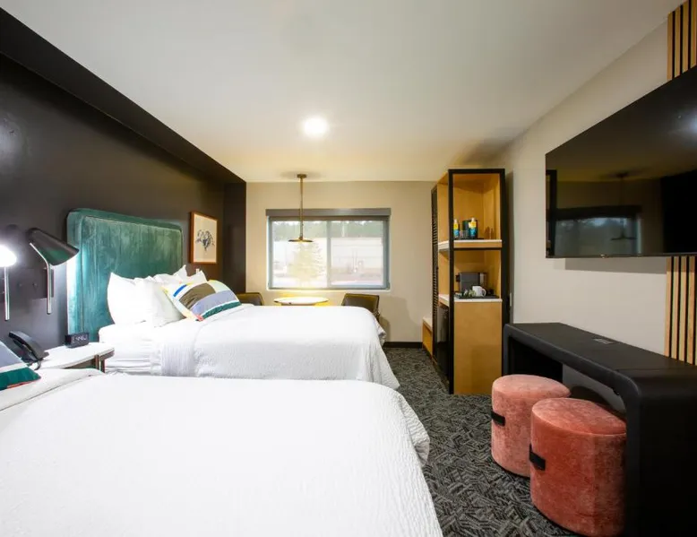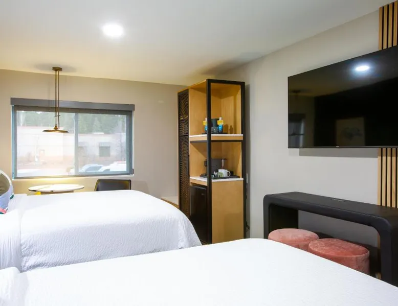 Comfortable Accommodations: voco Flagstaff by IHG in Flagstaff offers air-conditioned rooms with private bathrooms, tea and coffee makers, and free WiFi. Each room includes a work desk, TV, and wardrobe, ensuring a pleasant stay. Dining and Leisure: The traditional restaurant serves American cuisine with vegetarian and vegan options. Guests can enjoy breakfast with fresh pastries, cheese, fruits, and juice. The bar provides a relaxing atmosphere for evening drinks. Convenient Facilities: The hotel features a elevator, 24-hour front desk, housekeeping, and express check-in and check-out services. Paid on-site private parking is available. Flagstaff Pulliam Airport is 1.9 mi away. Nearby attractions include Northern Arizona University (1.7 mi) and Lowell Observatory (3.1 mi). The spacious double room features air conditioning, a tea and coffee maker, as well as a private bathroom boasting a walk-in shower and a hairdryer. The unit has 2 beds.