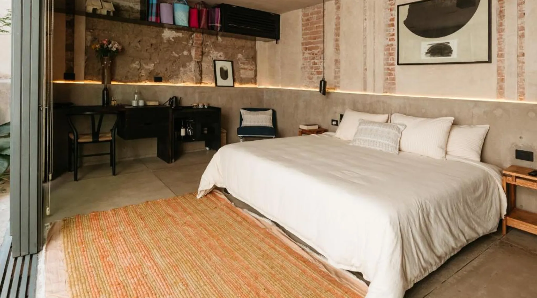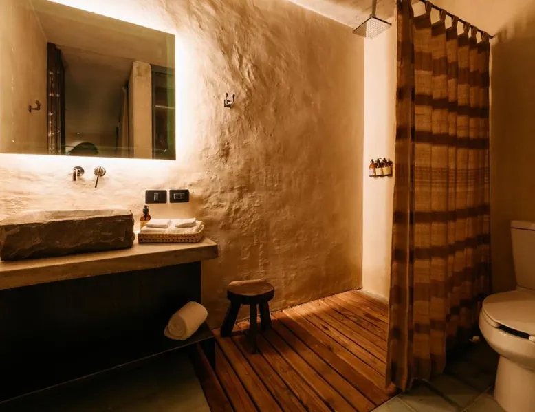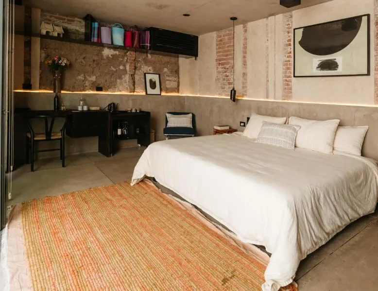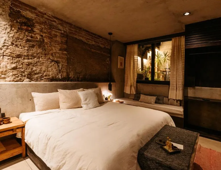 Prime Location: Becino in Oaxaca City offers a central position with Oaxaca Cathedral a 4-minute walk away and Santo Domingo Temple 1969 feet nearby. The Central Bus Station foreign buses is 1.1 mi from the hotel. Exceptional Facilities: Guests enjoy a sun terrace, bar, and free WiFi. Additional amenities include a private check-in and check-out service, paid shuttle, concierge, shared kitchen, daily housekeeping, outdoor seating, breakfast in the room, room service, bike and car hire, tour desk, and luggage storage. Comfortable Accommodations: Rooms feature air-conditioning, private bathrooms, tea and coffee makers, hairdryers, chocolates or cookies, work desks, free toiletries, showers, electric kettles, wardrobes, terraces, hot tubs, spa baths, patios, sofa beds, mini-bars, and TVs. Dining Options: Breakfast includes continental, American, buffet, and vegetarian with juice, cheese, and fruits. This double room's special feature is the hot tub. The spacious double room provides air conditioning, a tea and coffee maker, as well as a private bathroom featuring a bath and a shower. The unit offers 1 bed.