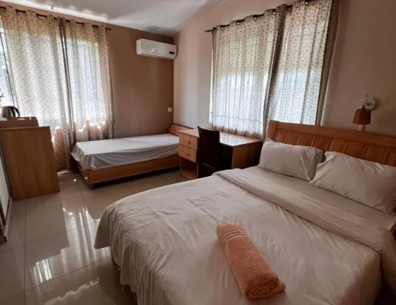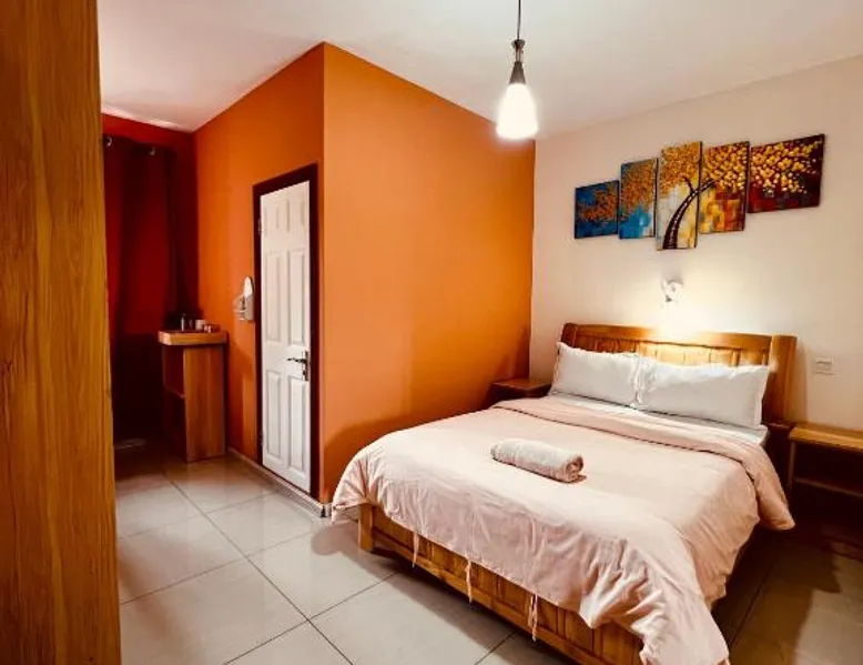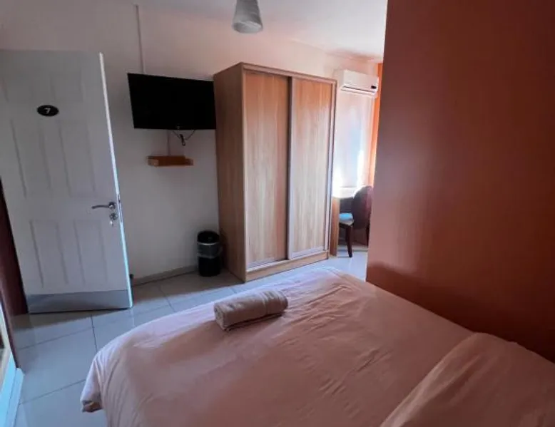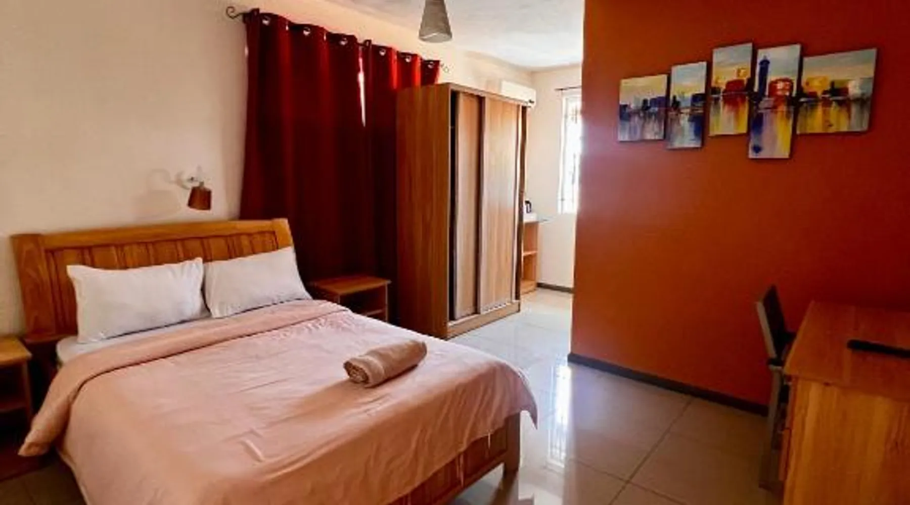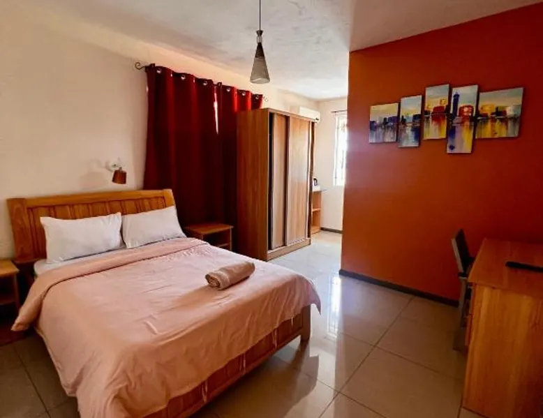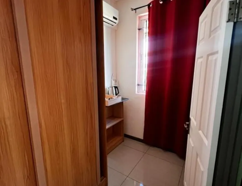 Comfortable Accommodations: Vintage Lodge in Quatre Bornes offers a bed and breakfast experience with free WiFi and free on-site private parking. Each room features air-conditioning, a private bathroom, tea and coffee maker, work desk, seating area, shower, TV, electric kettle, and wardrobe. Convenient Location: Located 19 mi from Sir Seewoosagur Ramgoolam Airport, the property is close to attractions such as Les Chute's de Riviere Noire (7.5 mi), Domaine Les Pailles and Rajiv Gandhi Science Center (8.1 mi), Caudan Waterfront and Caudan Waterfront Casino (9.3 mi), Tamarina Golf Course and Jummah Mosque (9.9 mi), and Port Louis (11 mi). Guest Services: Guests appreciate the public transport options nearby, the convenient location, and the attentive property staff and service support. The double room has a private bathroom, air conditioning, a tea and coffee maker, as well as a seating area with a flat-screen TV. The double room features a wardrobe. The unit has 2 beds.