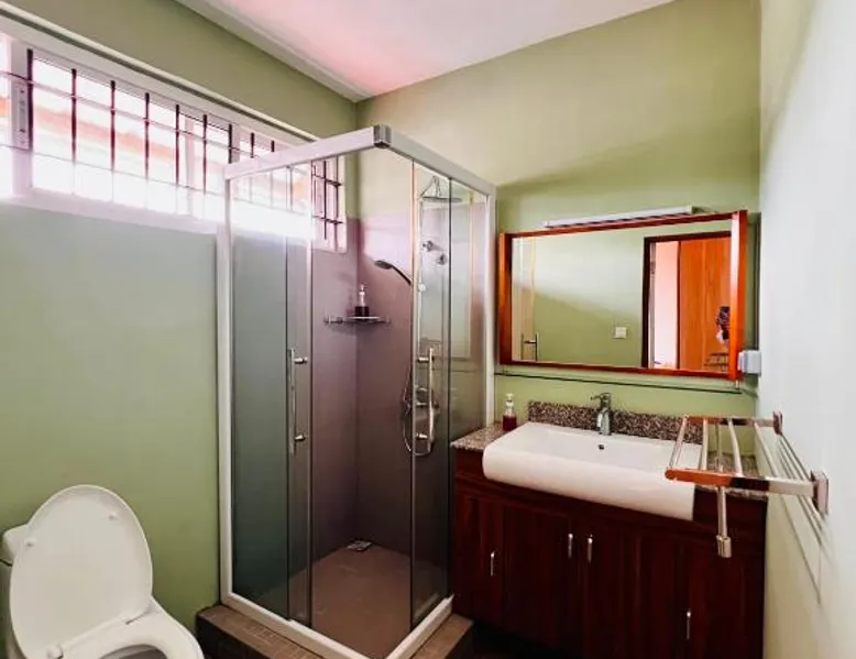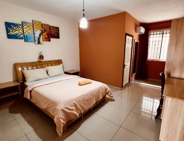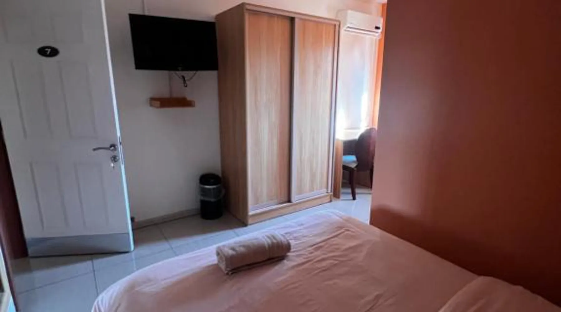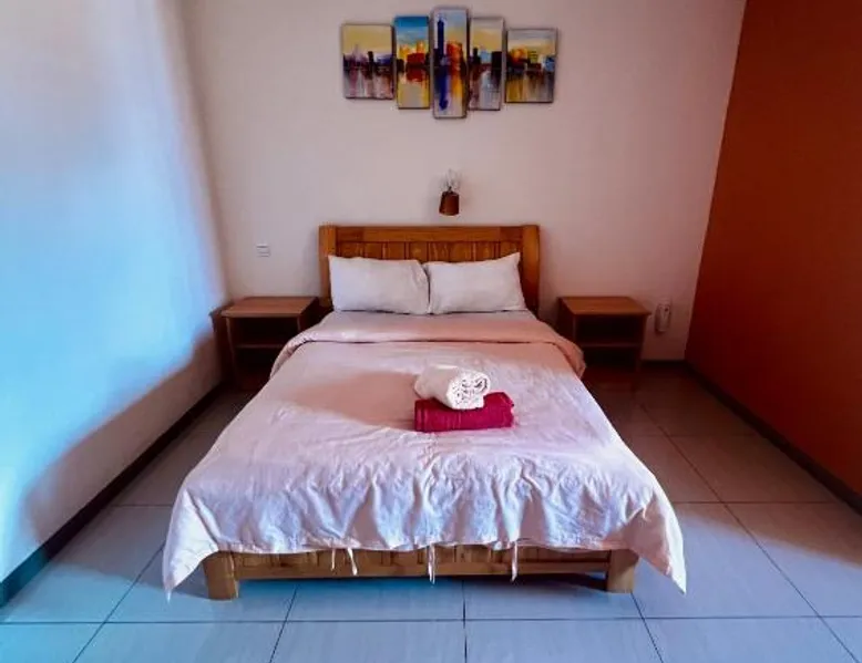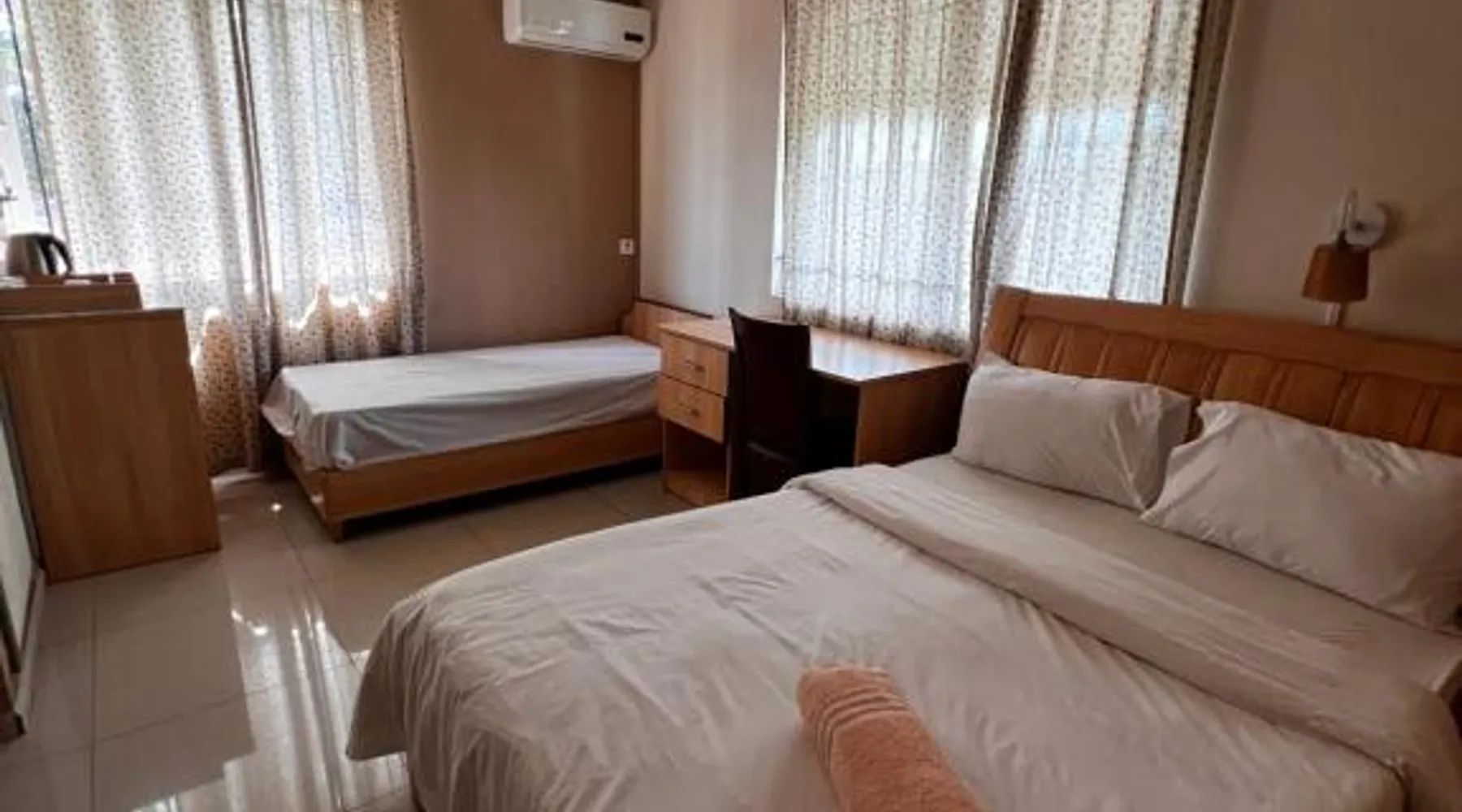 Comfortable Accommodations: Vintage Lodge in Quatre Bornes offers a bed and breakfast experience with free WiFi and free on-site private parking. Each room features air-conditioning, a private bathroom, tea and coffee maker, work desk, seating area, shower, TV, electric kettle, and wardrobe. Convenient Location: Located 19 mi from Sir Seewoosagur Ramgoolam Airport, the property is close to attractions such as Les Chute's de Riviere Noire (7.5 mi), Domaine Les Pailles and Rajiv Gandhi Science Center (8.1 mi), Caudan Waterfront and Caudan Waterfront Casino (9.3 mi), Tamarina Golf Course and Jummah Mosque (9.9 mi), and Port Louis (11 mi). Guest Services: Guests appreciate the public transport options nearby, the convenient location, and the attentive property staff and service support. The double room has a private bathroom, air conditioning, a tea and coffee maker, as well as a seating area with a flat-screen TV. The double room features a wardrobe. The unit has 2 beds.