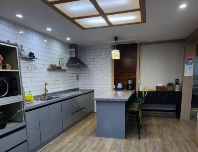 Spacious Accommodations: Buyeo Eoksae Jeongwon Pension in Buyeo offers spacious guest house accommodations with free WiFi and free on-site private parking. Comfortable Amenities: Each room features air-conditioning, a private bathroom with bidet, hairdryer, dining table, refrigerator, free toiletries, microwave, sofa, electric kettle, stovetop, and TV. Local Attractions: Jeongnimsaji Temple Site and Busosanseong Fortress are 1.9 mi away, Naghwa Rock 2.5 mi, Goransa Temple 3.1 mi, Baekje History & Culture Museum and Baekje Cultural Land 5 mi, and Donggok Seowon 12 mi. Gunsan Airport is 37 mi from the property. The spacious family room provides air conditioning, an electric kettle, as well as a private bathroom featuring a bidet and a hairdryer.
