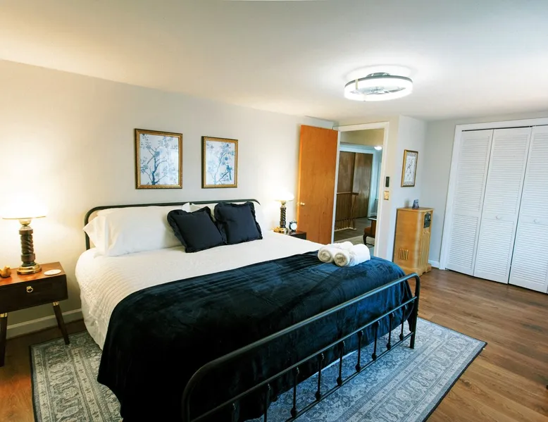 "Yesterday in the Quay" is a newly renovated three-bedroom, mid-century inspired retreat where vintage flair meets modern comfort: *King Bed *Smart TVs *WIFI *Bluetooth Record Player *Two Coffee Stations (Drip Coffee, Keurigs, French Press, Electric Tea Kettle, Coffee Grinder) *Full Equipped Kitchen: Dishes, Glassware, Cooking Ware, Spices, Cooking Spray, Kids Dinnerware, Toaster, Blender, and more. *Comfortable Mattresses w/ High-End Protectors *Black-out Curtains and Shades *Large Back Deck The space Step back in time at Yesterday in the Quay, a beautifully preserved 1950s home with vintage flair. Located in the heart of Fuquay-Varina and close to Raleigh, this unique Airbnb blends nostalgic charm with modern comfort. Kitchen: Fully equipped kitchen with pots, pans, cooking and eating utensils, plates, bowls, kids' dinnerware, wine glasses, drinkware, toaster, blender, casserole dishes, baking sheets, cutting boards, strainer, mixed bowls, measuring cups, and spoons. Drip coffee pot, electric tea kettle, French press, coffee grinder, local coffee beans, ground coffee, decaf coffee, tea, hot chocolate, sugar, sweeteners, and creamer. 2nd coffee pot: Keurig in pantry with K-cup coffee, regular and decaf, and reusable Keurig pods Spices, cooking spray, salt, and pepper Dish soap, hand soap, and dishwasher detergent Kitchen hand towels, extra paper towels, and more Living Room: 1950s TV for decor only Shoe and coat Rack Family Room: 55-inch Smart TV with Roko Channels and access to log-in personal Apps Record player with Bluetooth and a mid-century record collection to enjoy during your stay. Games and playing Cards Queen Bedroom: First Floor for easy access Comfortable Queen sized Nectar hybrid mattress with high-end mattress protector 42 inch Smart TV with Roku Channels and access to log-in to personal apps Ceiling Fan Closet with hangers Suitcase stand UBS charging in each nightstand Black-out curtains King Bedroom Comfortable King Sized Nectar hybrid mattress with high-end mattress protector. Record, Cassette, and CD player: with records, cassettes, and CDs available to play 42-inch Smart TV with Roku Channels and access to log in to personal apps Black-out curtains USB chargers next to nightstands Ceiling Fan Closet with hangers Suitcase stand Twin Bedroom Two comfortable Twin beds with high-end mattress protectors Kids' books, Lincoln Logs, coloring books, and crayons Bluetooth radio USB nightstands Fan Loft Area Coffee Station with Keurig and coffee/tea, and a sitting area Desk with lamp 1950s typewriter (decor only) Full Bath (First Floor) Original 1950s Pink Tile Tub and shower combo Located on the first floor next to the Queen Bedroom for easy access Shampoo/Conditioner/Body Wash/Hand Soap Make-up wash Cloths Fall Bath (Second Floor) Walk-in shower Large vanity Extra Vanity Mirror Make-up wash Cloths Blow Dryer “Forgot Something” basket Back Deck Area Bench seating with outdoor pillows Bistro Table with chairs and cushions Parking Ample Parking in private driveway Nearby: Downtown Fuquay- Walking Distance (less than .5 mile) Fuquay-Varina Shopping Area- Less than 2 miles away RDU Airport-28 miles Raleigh-18 miles Durham-35 miles Cary-17 miles Holly Springs-6 miles Garner- 16 miles Perfect for couples, solo travelers, or families looking for a one-of-a-kind stay, Yesterday in the Quay offers a delightful escape filled with character, history, and warmth. Book now and experience the charm of yesteryear with the comforts of today! Guest access Guests have access to the entire home, except one owner's closet. Other things to note Note: We do have a Ring setup for the home. This is located on the front door and back of the home. It is only monitored when the home is vacant for security reasons. There are stairs to the front entrance of the home; however, please contact if you have mobility issues. We can make accommodations, since there is a back entrance also.