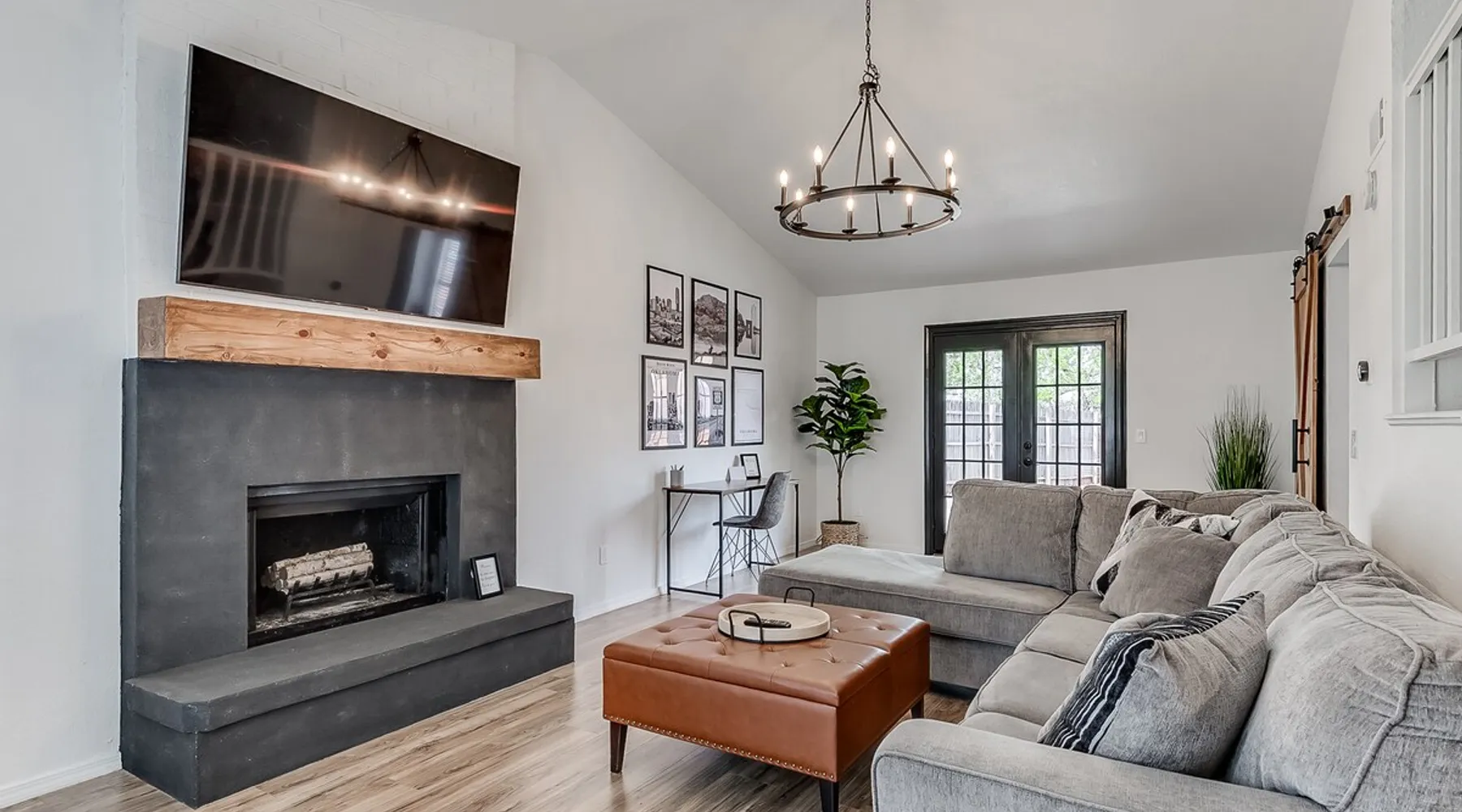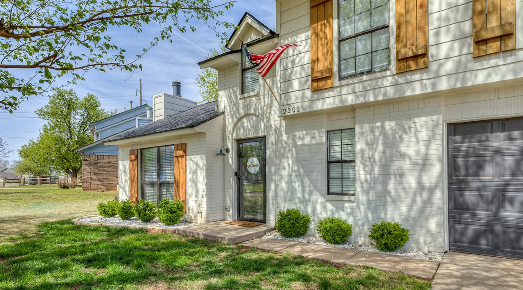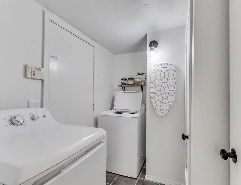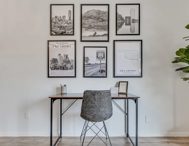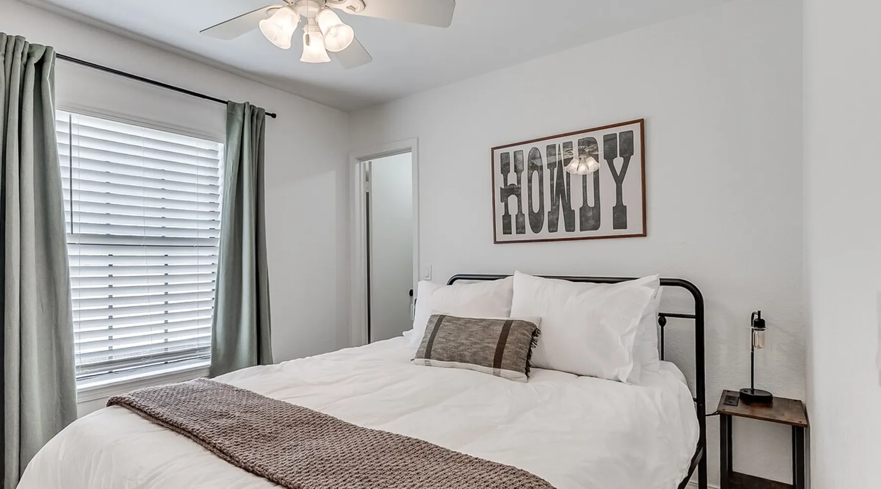 You will be close to everything Edmond has to offer when you stay at this centrally-located home. Inside you will find a fully equipped kitchen, living area, remote work station, Wi-Fi, smart TVs and a skee-ball machine. The bedrooms are designed for restful nights featuring a king bed, a queen bed and a futon in the bonus room. The outside boasts a charming exterior with a large, fenced backyard. We strive to provide a clean and comfortable experience for you at The Edmond Bungalow. The space This is a 2 bedroom house with a bonus room that has a fold-out futon. One bedroom has a king bed, the other a queen bed.