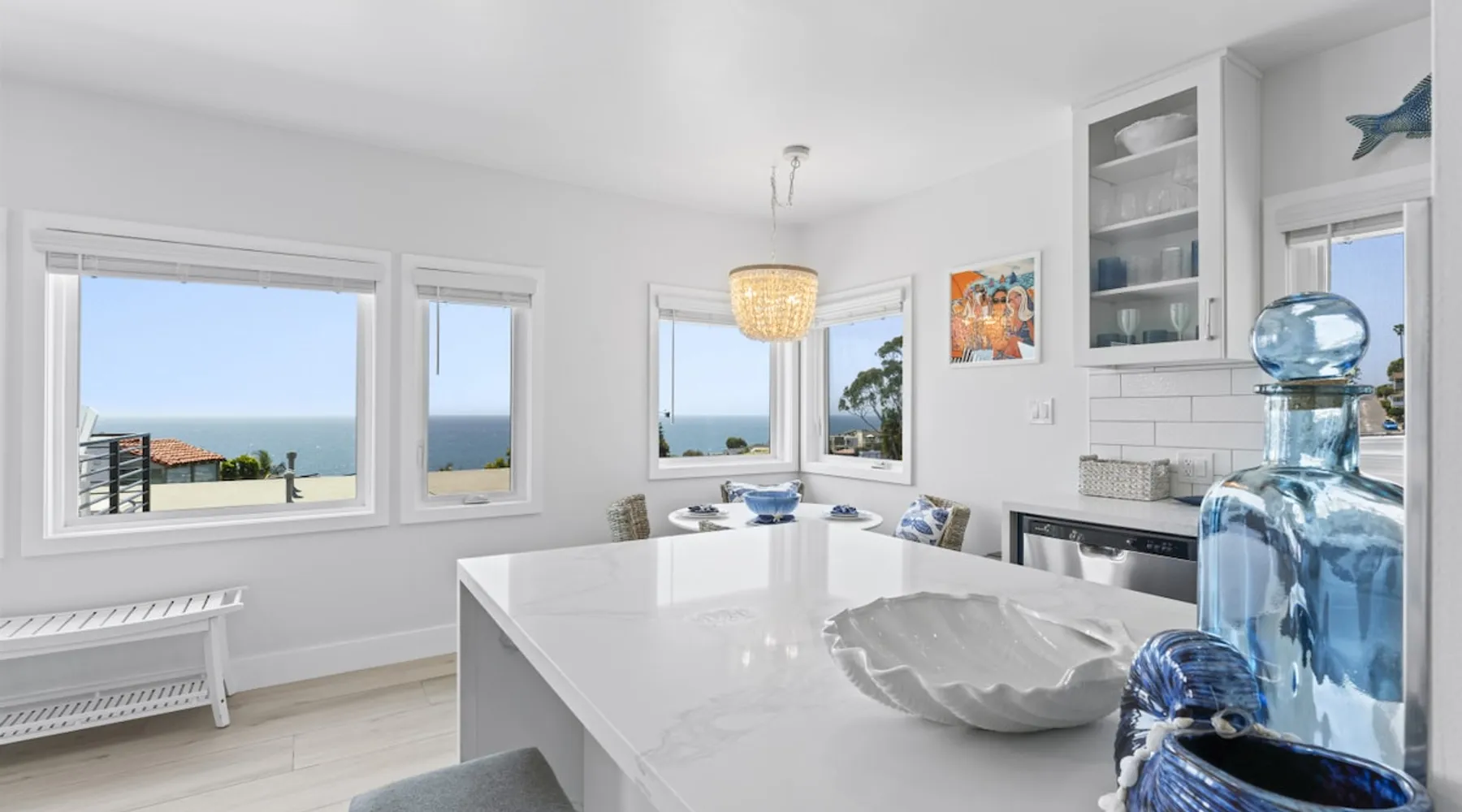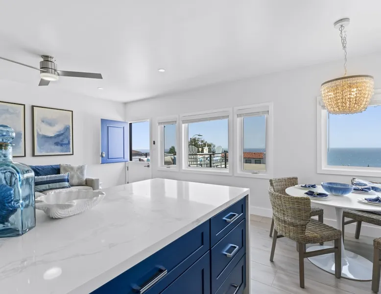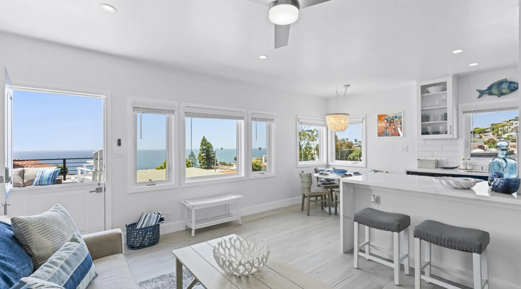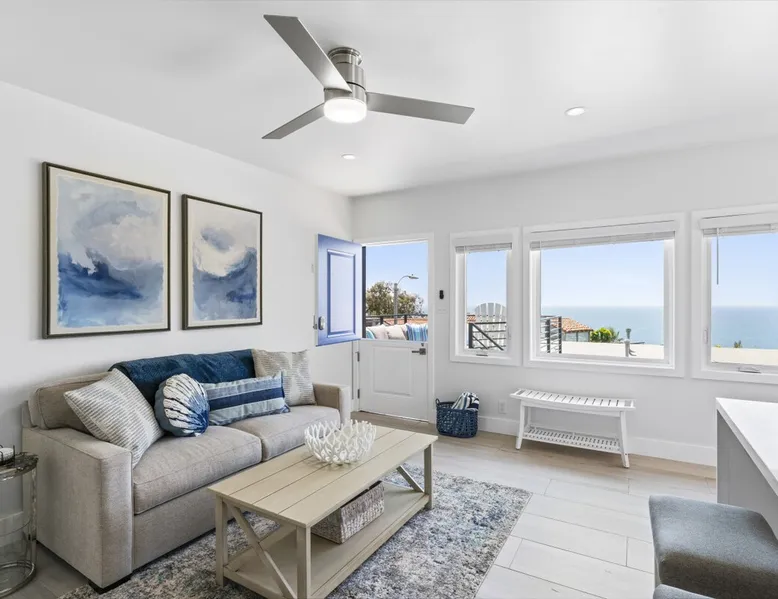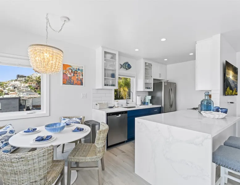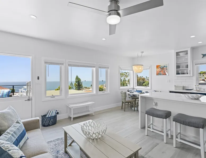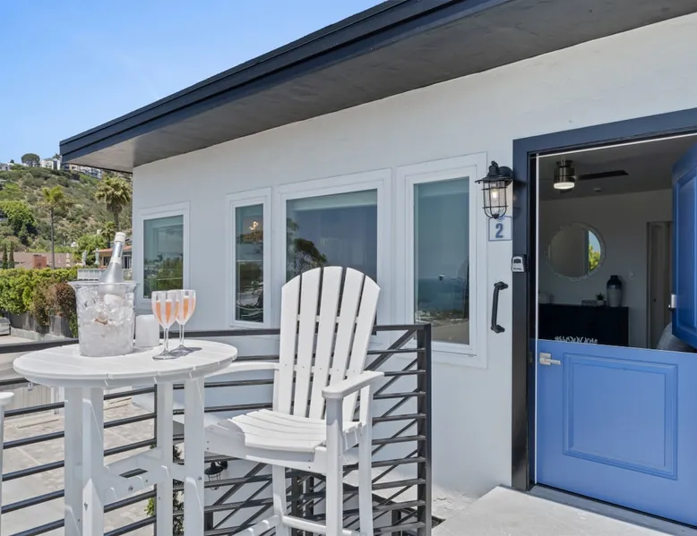 Welcome to your Laguna Beach penthouse! This designer 1 bed/1 bath retreat features a king bed and stylish coastal interiors. Enjoy amazing 180° ocean views from the interior of your home as well as the ocean deck with outdoor furniture and a cozy fire pit. Just steps to Victoria Beach, tide pools, and seaside strolls. Dine next door at the acclaimed Drake with live jazz and fine cuisine—relaxation and luxury await. The downtown trolly stops in front of our home and did we mention we have AC! The space NOTE- We're located on PCH right across from the beach. **The deck is a shared deck with neighboring unit** Parking- 2 car tandem parking in our covered garage. BEDROOMS/SLEEPING ARRANGEMENTS: Bedroom: King size bed, 65" TV as well as a dresser. Living room: Pull out full couch, 75" TV. HEAT/AC- Central Heat and Mini Split AC KITCHEN: Gather around in this inviting kitchen, fully equipped with everything you need to prepare delicious meals. Enjoy stainless steel appliances, granite countertops, a 4-burner gas range w/griddle, oven, microwave and more—perfect for hosting family and friends around a gourmet experience at home! LIVING: Perfectly appointed furnishings set this vacation home apart from the rest. We have comfortable pull out sofa, plenty of seating and a large 65' Samsung TV perfect for watching a big game or relaxing at the end of the day with a great movie. INCLUDED WITH YOUR VACATION HOME: All of our vacation rentals are fully furnished with cable/satellite TV and high speed WiFi (Free WiFi). Kitchens are equipped with appliances including a refrigerator, microwave, oven, stove, Keurig coffee maker, toaster, blender electric tea kettle and more. KITCHEN: Properties are equipped with the following items to accommodate the max occupancy of the home: basic dining, cooking and serving essentials including plates, bowls, silverware, wine and drinking glasses, cooking utensils and kitchen accessories such as can opener, wine opener, measuring spoons and more. We also provide a spice rack, salt and pepper. No other cooking essentials or supplies are provided (oil, sprays or other cooking ingredients, foil, cling wrap, etc.). HOUSE SUPPLIES: Your home will be stocked with an initial supply of trash bags, paper towels, kitchen sponge, hand soap, dish soap, dishwasher pods, toilet paper, laundry pods and dryer sheets. OTHER ITEMS: The property is equipped with a specific quantity of bath and pool towels to accommodate the max occupancy of the home. The bathrooms are stocked with shampoo, conditioner and liquid body wash. There are also fully equipped laundry rooms with washer, dryer, ironing board and iron. LOCATION: We're located on PCH right across from Victoria Beach and the famous Drake restaurant. ESTIMATED DISTANCES FROM THE VACATION HOME - Downtown Laguna Beach- 5 minute drive - Drake- 1 minute walk - Ruby's - 2 minute walk - Victoria Beach- 3 minute walk - CVS - 1 minute drive - Montage Resort - 1 minute drive GUEST ACCESS- Guests have access to the entire unit. The cottage is accessible using a keyless system that allows entry into the estate through your entire stay. The code changes for every reservation so it is an incredibly safe alternative. By issuing the code prior to arrival, the check-in process is much easier so that you can start your vacation as soon as possible! Other things to note…. - FREQUENTLY ASKED QUESTIONS - WHAT TIME IS CHECK-IN AND CHECK OUT? Check in is after 4PM local time, and check out is 11AM. Early check in and late check out may be available for your reservation. There is no extra fee for early check in, or, late check out (If we can accommodate your request, we most certainly will!) WILL I NEED TO MEET THE PROPERTY MANAGER TO GET A KEY? Our homes are keyless entry, we issue a “code” rather than a physical key. The code changes for every reservation so it is an incredibly safe alternative. By issuing the code prior to arrival, the check-in process is much easier. DO YOU PROVIDE DAILY CLEANING SERVICE? Cleaning is performed at the end of your stay. A mid-week or mid-stay clean can be provided for an additional fee. WHAT IS PROVIDED WITH MY ACCOMMODATIONS? All of our vacation rentals are furnished and have a kitchen with amenities including a microwave, coffee maker, toaster and blender. Each property is stocked with cooking and serving items including plates, bowls and utensils, as well as a can opener, corkscrew measuring spoons and more. The coffee maker takes ground coffee and we also offer a spice rack, salt and pepper. There are bath towels, pool towels and bed linens. We also provide an initial supply of trash liners, toilet paper, hand soap and dishwasher soap. Bathrooms are stocked with Shampoo, conditioner and liquid body wash. Laundry facilities are also equipped with laundry soap and dryer sheets. CAN I SHIP A PACKAGE TO MY VACATION HOME? We do not recommend shipping directly to the home, we do not have mailbox keys, and there are many different people with access to the home: vendors, housekeeping, Guest Services staff, etc... so we cannot be responsible for packages once delivered. DO YOU ALLOW PETS? No cats, certain non-shedding hypoallergenic dogs will be considered at an additional fee. Registration Details 241817