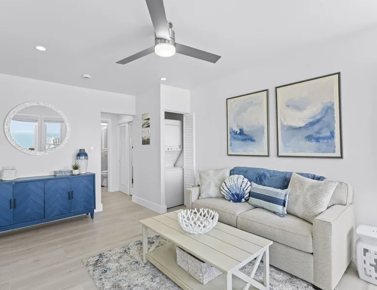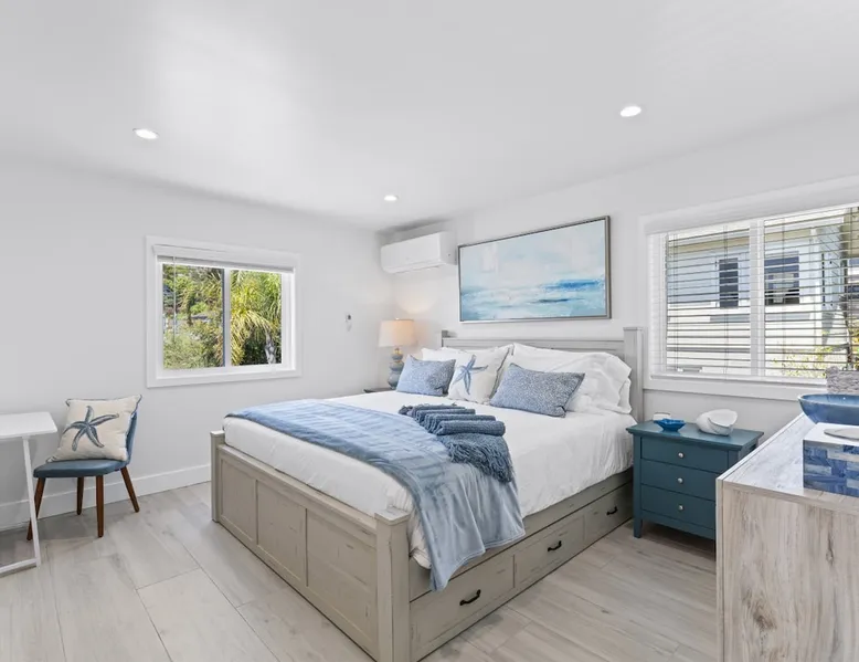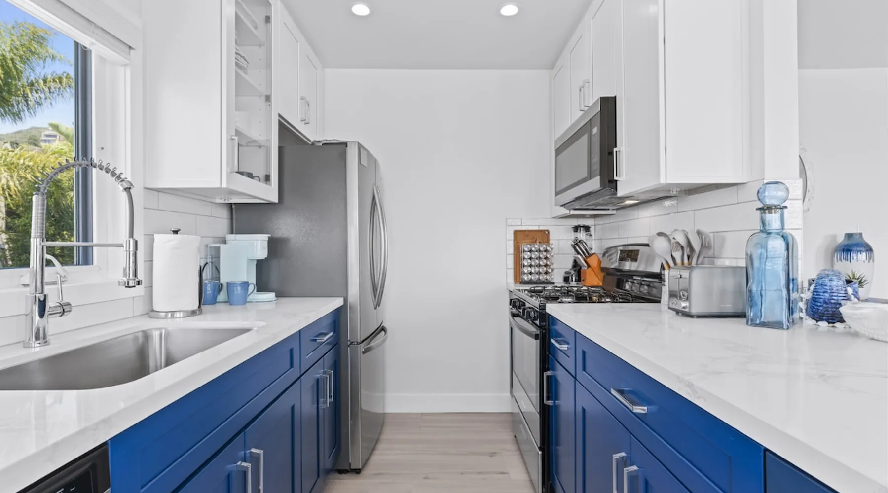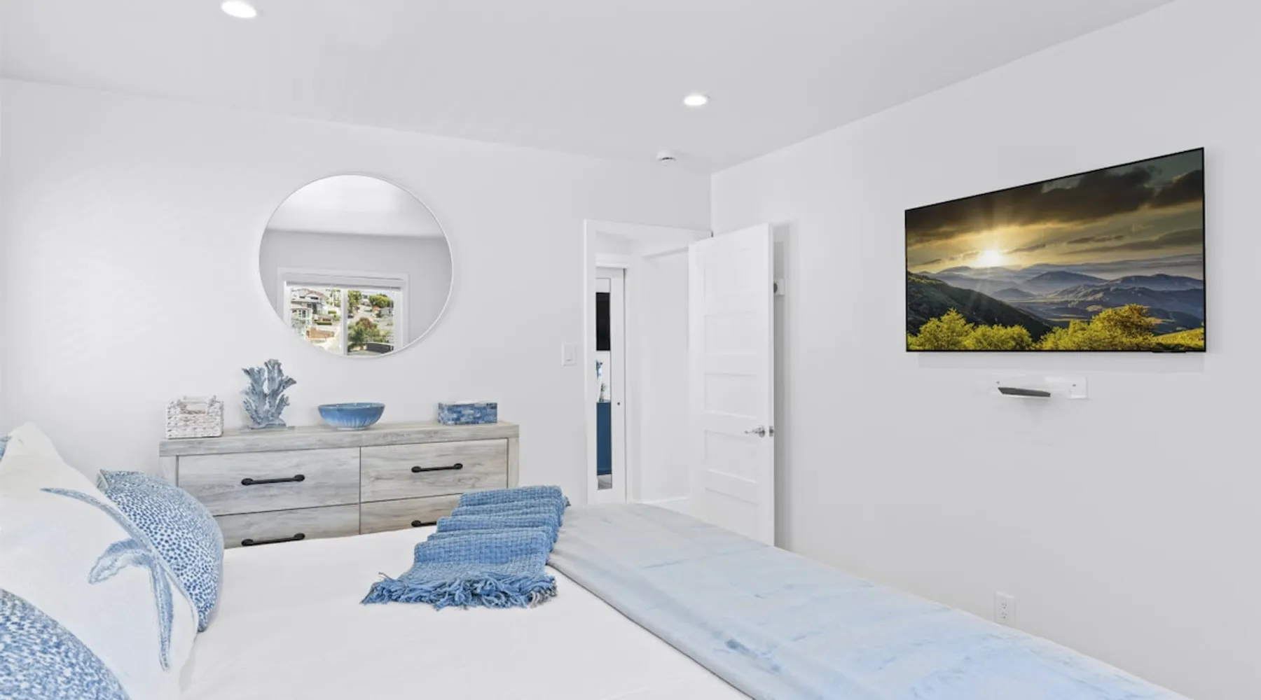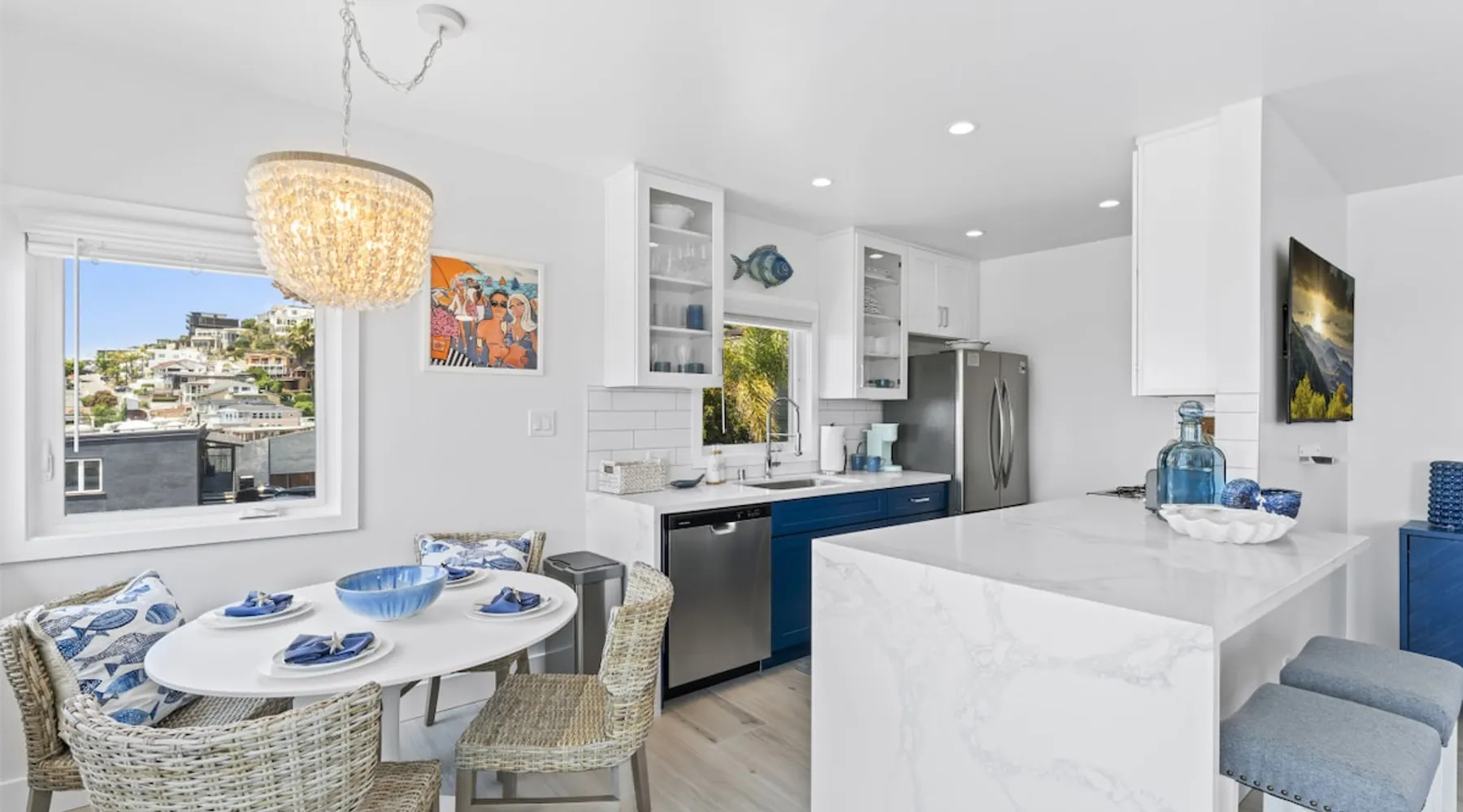 Welcome to your Laguna Beach penthouse! This designer 1 bed/1 bath retreat features a king bed and stylish coastal interiors. Enjoy amazing 180° ocean views from the interior of your home as well as the ocean deck with outdoor furniture and a cozy fire pit. Just steps to Victoria Beach, tide pools, and seaside strolls. Dine next door at the acclaimed Drake with live jazz and fine cuisine—relaxation and luxury await. The downtown trolly stops in front of our home and did we mention we have AC! The space NOTE- We're located on PCH right across from the beach. **The deck is a shared deck with neighboring unit** Parking- 2 car tandem parking in our covered garage. BEDROOMS/SLEEPING ARRANGEMENTS: Bedroom: King size bed, 65" TV as well as a dresser. Living room: Pull out full couch, 75" TV. HEAT/AC- Central Heat and Mini Split AC KITCHEN: Gather around in this inviting kitchen, fully equipped with everything you need to prepare delicious meals. Enjoy stainless steel appliances, granite countertops, a 4-burner gas range w/griddle, oven, microwave and more—perfect for hosting family and friends around a gourmet experience at home! LIVING: Perfectly appointed furnishings set this vacation home apart from the rest. We have comfortable pull out sofa, plenty of seating and a large 65' Samsung TV perfect for watching a big game or relaxing at the end of the day with a great movie. INCLUDED WITH YOUR VACATION HOME: All of our vacation rentals are fully furnished with cable/satellite TV and high speed WiFi (Free WiFi). Kitchens are equipped with appliances including a refrigerator, microwave, oven, stove, Keurig coffee maker, toaster, blender electric tea kettle and more. KITCHEN: Properties are equipped with the following items to accommodate the max occupancy of the home: basic dining, cooking and serving essentials including plates, bowls, silverware, wine and drinking glasses, cooking utensils and kitchen accessories such as can opener, wine opener, measuring spoons and more. We also provide a spice rack, salt and pepper. No other cooking essentials or supplies are provided (oil, sprays or other cooking ingredients, foil, cling wrap, etc.). HOUSE SUPPLIES: Your home will be stocked with an initial supply of trash bags, paper towels, kitchen sponge, hand soap, dish soap, dishwasher pods, toilet paper, laundry pods and dryer sheets. OTHER ITEMS: The property is equipped with a specific quantity of bath and pool towels to accommodate the max occupancy of the home. The bathrooms are stocked with shampoo, conditioner and liquid body wash. There are also fully equipped laundry rooms with washer, dryer, ironing board and iron. LOCATION: We're located on PCH right across from Victoria Beach and the famous Drake restaurant. ESTIMATED DISTANCES FROM THE VACATION HOME - Downtown Laguna Beach- 5 minute drive - Drake- 1 minute walk - Ruby's - 2 minute walk - Victoria Beach- 3 minute walk - CVS - 1 minute drive - Montage Resort - 1 minute drive GUEST ACCESS- Guests have access to the entire unit. The cottage is accessible using a keyless system that allows entry into the estate through your entire stay. The code changes for every reservation so it is an incredibly safe alternative. By issuing the code prior to arrival, the check-in process is much easier so that you can start your vacation as soon as possible! Other things to note…. - FREQUENTLY ASKED QUESTIONS - WHAT TIME IS CHECK-IN AND CHECK OUT? Check in is after 4PM local time, and check out is 11AM. Early check in and late check out may be available for your reservation. There is no extra fee for early check in, or, late check out (If we can accommodate your request, we most certainly will!) WILL I NEED TO MEET THE PROPERTY MANAGER TO GET A KEY? Our homes are keyless entry, we issue a “code” rather than a physical key. The code changes for every reservation so it is an incredibly safe alternative. By issuing the code prior to arrival, the check-in process is much easier. DO YOU PROVIDE DAILY CLEANING SERVICE? Cleaning is performed at the end of your stay. A mid-week or mid-stay clean can be provided for an additional fee. WHAT IS PROVIDED WITH MY ACCOMMODATIONS? All of our vacation rentals are furnished and have a kitchen with amenities including a microwave, coffee maker, toaster and blender. Each property is stocked with cooking and serving items including plates, bowls and utensils, as well as a can opener, corkscrew measuring spoons and more. The coffee maker takes ground coffee and we also offer a spice rack, salt and pepper. There are bath towels, pool towels and bed linens. We also provide an initial supply of trash liners, toilet paper, hand soap and dishwasher soap. Bathrooms are stocked with Shampoo, conditioner and liquid body wash. Laundry facilities are also equipped with laundry soap and dryer sheets. CAN I SHIP A PACKAGE TO MY VACATION HOME? We do not recommend shipping directly to the home, we do not have mailbox keys, and there are many different people with access to the home: vendors, housekeeping, Guest Services staff, etc... so we cannot be responsible for packages once delivered. DO YOU ALLOW PETS? No cats, certain non-shedding hypoallergenic dogs will be considered at an additional fee. Registration Details 241817