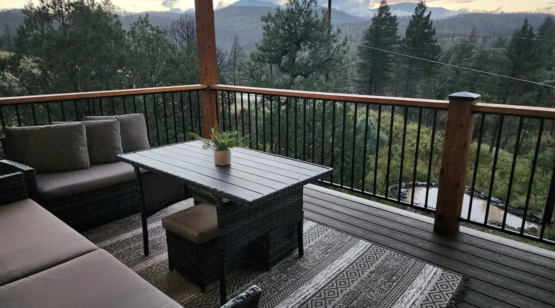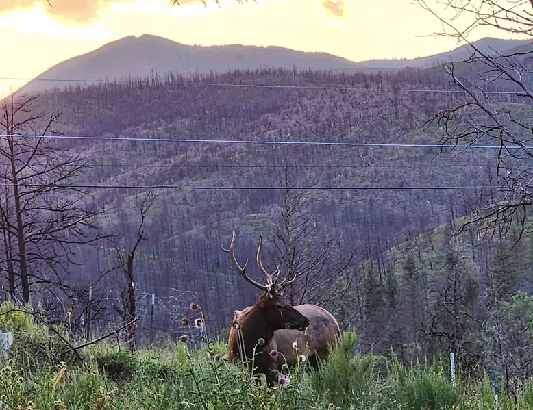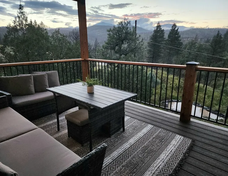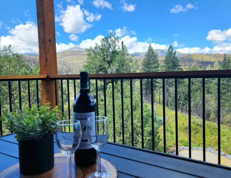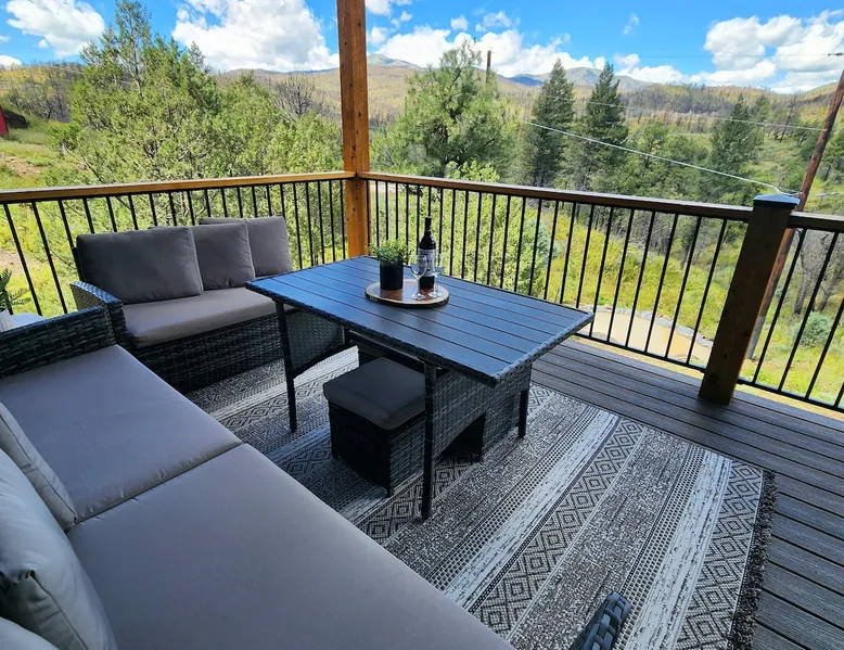 Welcome to The Elk Shed! This brand-new home blends modern design with rustic mountain charm, creating the perfect setting for your next getaway. Nestled beside the Lincoln Nat. Forest, you’ll wake up to breathtaking mtn views and may even spot deer, elk, and wild horses wandering nearby. Whether you’re here for outdoor adventure, a romantic retreat, or a family vacation, this home offers the best of both worlds — mountain serenity with modern comfort all located less than 2 mi from Midtown. The space Escape to Ruidoso in style! This brand-new home, built in 2025, combines modern comfort with rustic mountain charm. Whether you're here for outdoor adventure, a romantic retreat, or a family vacation, this home & these views are sure to make your memories unforgettable. With the house next to Lincoln National Forest, not only does it offer more privacy for you to enjoy the large deck, but access to the forest has you within feet of hiking and biking trails. There are 3 Smart Roku TV's in the home for you to enjoy your personal subscription services (Hulu, Disney+, Netflix, HBO, etc.) BEDROOM & BATHROOMS ●Bedroom 1: Queen-size bed, ceiling fan, closet, 40" Smart Roku TV & private on-suite bathroom. ●Bedroom 2: Queen-size bed, ceiling fan, closet & 40" Smart Roku TV. ●Living Room: 55" Smart Roku TV, Ceiling Fan, Gas Fireplace. ●Bathroom 1: Bathtub/ Shower combo ●Bathroom 2: Bathtub/ Shower combo FEATURES & AMENITIES ● Fully equipped kitchen ● Keurig machine (k-cups, creamer & sugar provided) ● Dining area for 6 ● Starlink Wi-Fi ● Smart TVs ● Desk w/computer chair ● Gas Fireplace ● Washer/Dryer ● Hair Dryer ● Central Heat & A/C ● Family board games ● Dinnerware for children OUTDOOR FEATURES ● Mountain Views ● Natural Gas Barbecue Grill ● Covered deck ● Driveway parking ● Outdoor lounge furniture ● Access to Lincoln National Forest **THIS HOUSE IS EQUIPPED WITH A NOAA WEATHER EMERGENCY ALERT RADIO - For your safety, please do not remove or unplug the radio during your stay** Come enjoy the serenity in the tall pines at 'The Elk Shed'. Guest access The whole house is yours to enjoy. Other things to note 17 miles to Ski Apache 1.8 miles to Midtown shops & restaurants 6.5 miles to Racetrack & Billy the Kid Casino 5.4 miles to Inn of the Mountain Gods Casino 5.7 miles to Ruidoso Winter Park 2.5 miles to Grindstone Lake