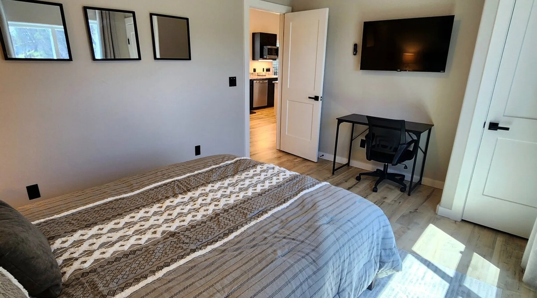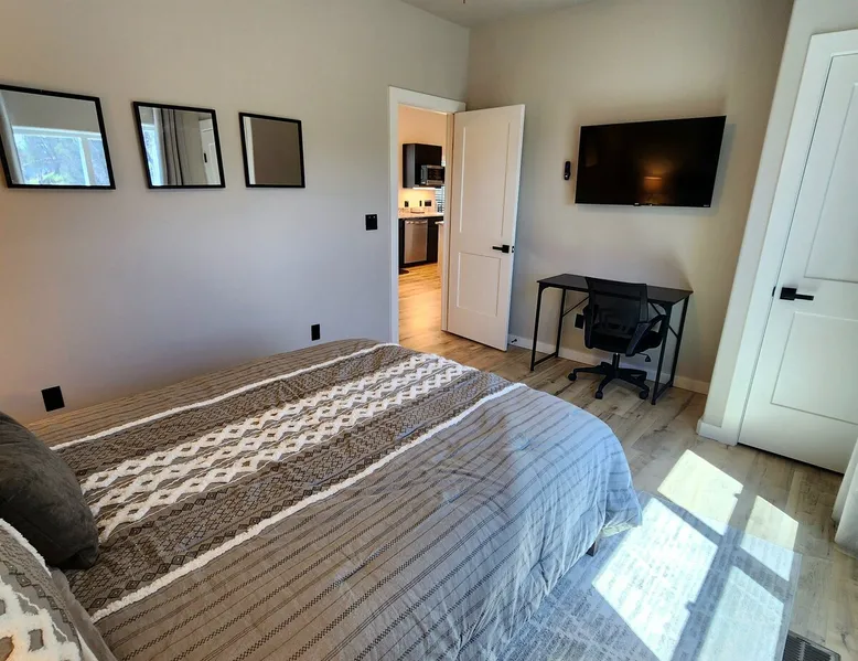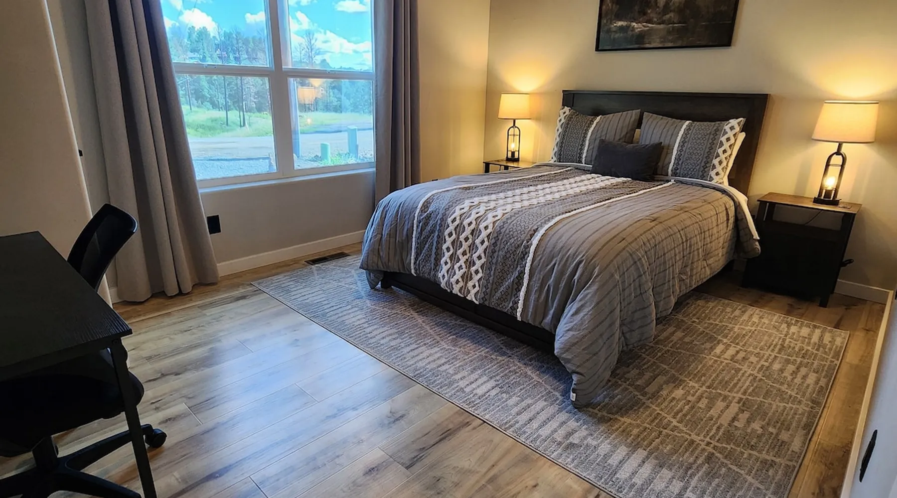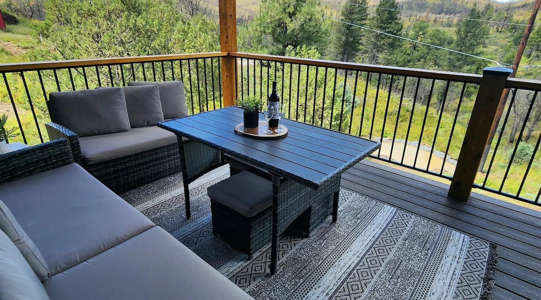 Welcome to The Elk Shed! This brand-new home blends modern design with rustic mountain charm, creating the perfect setting for your next getaway. Nestled beside the Lincoln Nat. Forest, you’ll wake up to breathtaking mtn views and may even spot deer, elk, and wild horses wandering nearby. Whether you’re here for outdoor adventure, a romantic retreat, or a family vacation, this home offers the best of both worlds — mountain serenity with modern comfort all located less than 2 mi from Midtown. The space Escape to Ruidoso in style! This brand-new home, built in 2025, combines modern comfort with rustic mountain charm. Whether you're here for outdoor adventure, a romantic retreat, or a family vacation, this home & these views are sure to make your memories unforgettable. With the house next to Lincoln National Forest, not only does it offer more privacy for you to enjoy the large deck, but access to the forest has you within feet of hiking and biking trails. There are 3 Smart Roku TV's in the home for you to enjoy your personal subscription services (Hulu, Disney+, Netflix, HBO, etc.) BEDROOM & BATHROOMS ●Bedroom 1: Queen-size bed, ceiling fan, closet, 40" Smart Roku TV & private on-suite bathroom. ●Bedroom 2: Queen-size bed, ceiling fan, closet & 40" Smart Roku TV. ●Living Room: 55" Smart Roku TV, Ceiling Fan, Gas Fireplace. ●Bathroom 1: Bathtub/ Shower combo ●Bathroom 2: Bathtub/ Shower combo FEATURES & AMENITIES ● Fully equipped kitchen ● Keurig machine (k-cups, creamer & sugar provided) ● Dining area for 6 ● Starlink Wi-Fi ● Smart TVs ● Desk w/computer chair ● Gas Fireplace ● Washer/Dryer ● Hair Dryer ● Central Heat & A/C ● Family board games ● Dinnerware for children OUTDOOR FEATURES ● Mountain Views ● Natural Gas Barbecue Grill ● Covered deck ● Driveway parking ● Outdoor lounge furniture ● Access to Lincoln National Forest **THIS HOUSE IS EQUIPPED WITH A NOAA WEATHER EMERGENCY ALERT RADIO - For your safety, please do not remove or unplug the radio during your stay** Come enjoy the serenity in the tall pines at 'The Elk Shed'. Guest access The whole house is yours to enjoy. Other things to note 17 miles to Ski Apache 1.8 miles to Midtown shops & restaurants 6.5 miles to Racetrack & Billy the Kid Casino 5.4 miles to Inn of the Mountain Gods Casino 5.7 miles to Ruidoso Winter Park 2.5 miles to Grindstone Lake