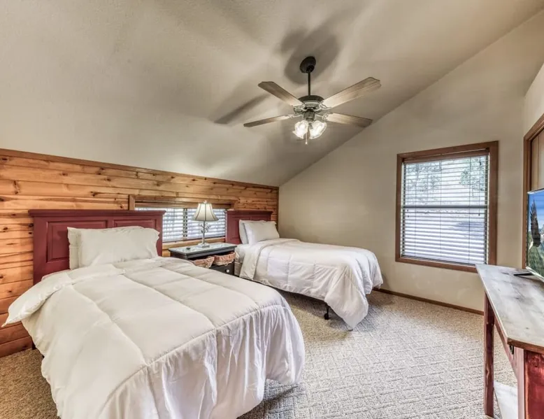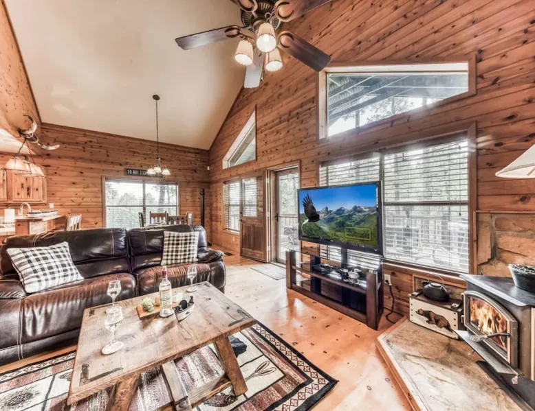 Cozy up at A Beary Happy Place — your Upper Canyon escape nestled among the pines, just 5 minutes from Midtown fun! Sip coffee on the big covered deck, watch for deer, and feel right at home. We include guest damage protection and 24/7 support (no big deposits, no surprises), so you can just relax and enjoy your stay. We’re here if you need anything — beary glad to host you! The space A Beary Happy Place Amenities -Prime Location: Nestled in the desirable Upper Canyon, just 5 minutes to Midtown. Walk to trails. Minutes from Grindstone Lake, and area attractions. -Tranquil Setting: Surrounded by tall pines and abundant wildlife, offering peace and quiet, with mountain and canyon views. -Outdoor Bliss: Huge covered back deck with seating and propane gas grill. -Interior Comfort: Central heat and A/C, wood burning stove, genuine wood floors, and log beams. -Fully Equipped Kitchen: New stainless steel appliances, deep sink, drip coffee maker, serving bar with seating for 4. -Entertainment Ready: TVs in living room and all bedrooms with cable and Netflix, big screen TV in living area, and a dartboard in the upstairs loft. -Primary Suite: King size bed, private bath with walk-in shower and jetted tub, large windows, TV and plenty of storage. -Guest Bedrooms: One with a queen bed, one with two twin beds, both with TVs, ceiling fans, closets and tree-top views. -Convenient Laundry: Full-size stacked washer and dryer. -Dining & Living: Dining table for 4, power reclining sofa, high ceilings, and large windows with stunning views. -Work & Play: Cozy reading nook/laptop-friendly space. -Modern Conveniences: Free WiFi, remote lock access, digital guestbook with all necessary information. -Parking: Paved driveway slope down to the parking area with space for up to 3 vehicles. -Self Check-In: Access codes emailed within 24 hours of arrival. -Ideal set up for small families. friends getaway retreat. Enjoy your stay at A Beary Happy Place, your perfect mountain retreat! Guest access SELF CHECK-IN: Access codes for the remote lock are emailed to the reservation holder within 48 hours of arrival. Please complete your guest check-in form after booking and provide your email address and contact phone number. DIRECTIONS AND CHECK-IN INSTRUCTIONS: For guest privacy, physical addresses are provided only after booking and confirmation are complete. ACCESSING THE HOUSE: The driveway is paved with a slight decline and offers parking for up to 3 vehicles. There is one step up to the front porch; entry is through the front door. Door codes are provided within 24 hours of arrival. Guests have full access to the home except for any locked doors reserved for owner access only. Other things to note Let us help you plan your next Ruidoso getaway and make memories to last a lifetime. Our goal is to provide a luxurious, worry-free experience in one of the most beautiful places on earth. Come find out why our guests return year after year to escape, explore, and rejuvenate in the mountains of Ruidoso!