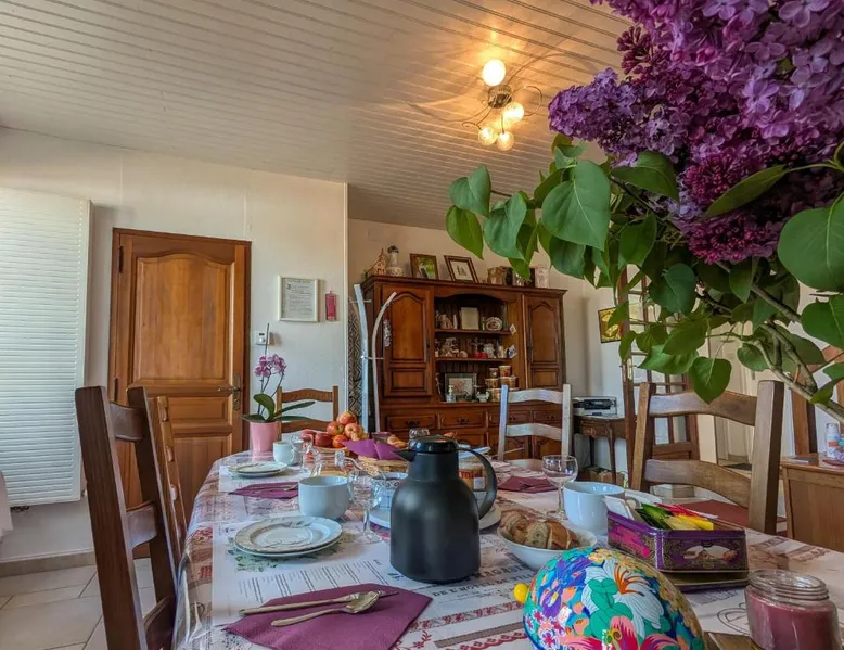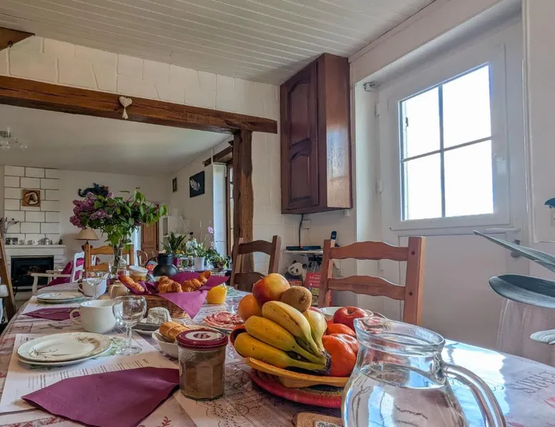 Charming Accommodations: Chambres d'hôtes au calme près des Châteaux et Zoo de Beauval in Châtillon-sur-Indre offers a tranquil garden setting with picturesque views. Guests can relax on the terrace or enjoy the outdoor space. Comfortable Amenities: Each room features a private bathroom, shower, TV, and a cozy fireplace. Free on-site private parking is available, ensuring convenience for all visitors. Local Attractions: The property is located 16 mi from Château de Loches, 20 mi from Beauval Zoo, and 30 mi from Château de Chenonceau. Other nearby attractions include Château d'Azay-le-Ferron at 12 mi and Château de Valencay at 23 mi. The fireplace is the standout feature of this family room. The family room includes a private bathroom fitted with a shower. Boasting a terrace with garden views, this family room also features a barbecue and a TV.