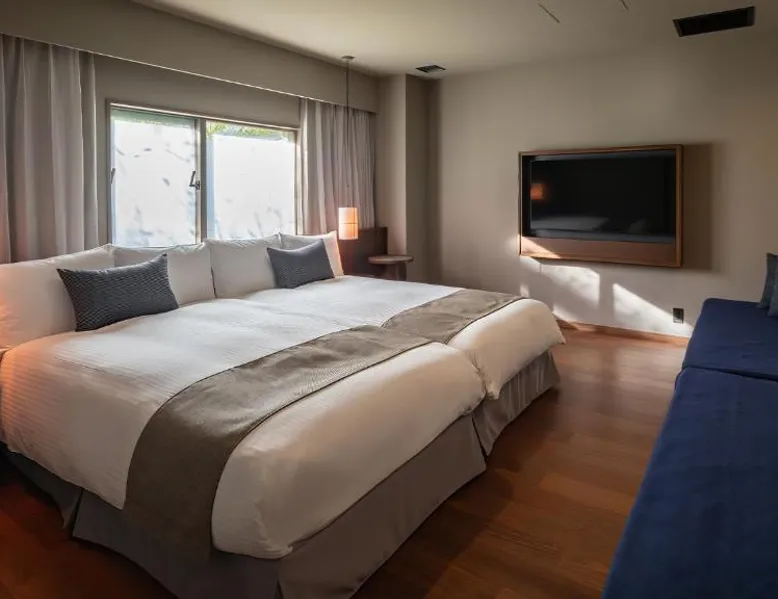 Comfortable Accommodations: Nasu-Onsen Shinshun no Kago Hewitt Resort in Nasu offers family rooms with private bathrooms. Each room includes air-conditioning, a balcony, hairdryer, slippers, and TV. Relaxing Facilities: Guests enjoy free WiFi, a public bath, and a relaxing environment. The resort provides a welcoming atmosphere for all visitors. Local Attractions: Nasu Toy Museum is an 8-minute walk away, while Seiji Fujishiro Museum lies 1.2 mi from the property. Shirakawa Station is 16 mi and Komine Castle is 17 mi distant. Guest Satisfaction: Highly rated by guests, the resort ensures a pleasant stay with its excellent facilities and attentive service. The unit has 3 beds.