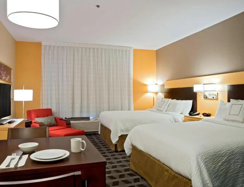 Comfortable Accommodations: TownePlace Suites by Marriott Dodge City in Dodge City offers comfortable rooms with air-conditioning, private bathrooms, and fully equipped kitchens. Each room includes a work desk, seating area, and free WiFi. Leisure Facilities: Guests can enjoy a fitness center, sun terrace, seasonal outdoor swimming pool, and free use of bicycles. Additional amenities include a minimarket, business area, and barbecue facilities. Convenient Services: The hotel provides a 24-hour front desk, concierge service, and free on-site parking. Additional services include a elevator, electric vehicle charging station, and laundry service. Accessible Location: Located 6.8 mi from Dodge City Regional Airport, the hotel offers easy access to local attractions. The unit has 2 beds.