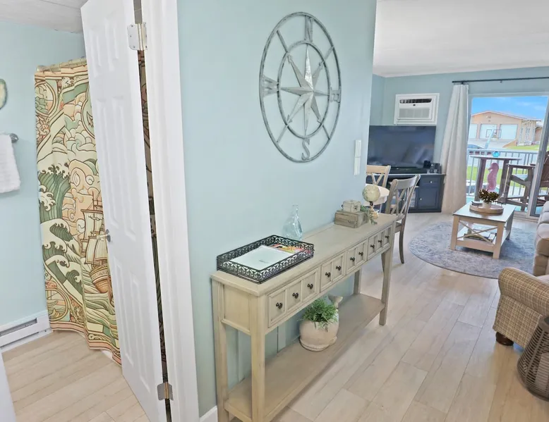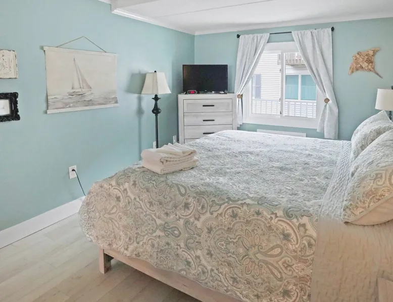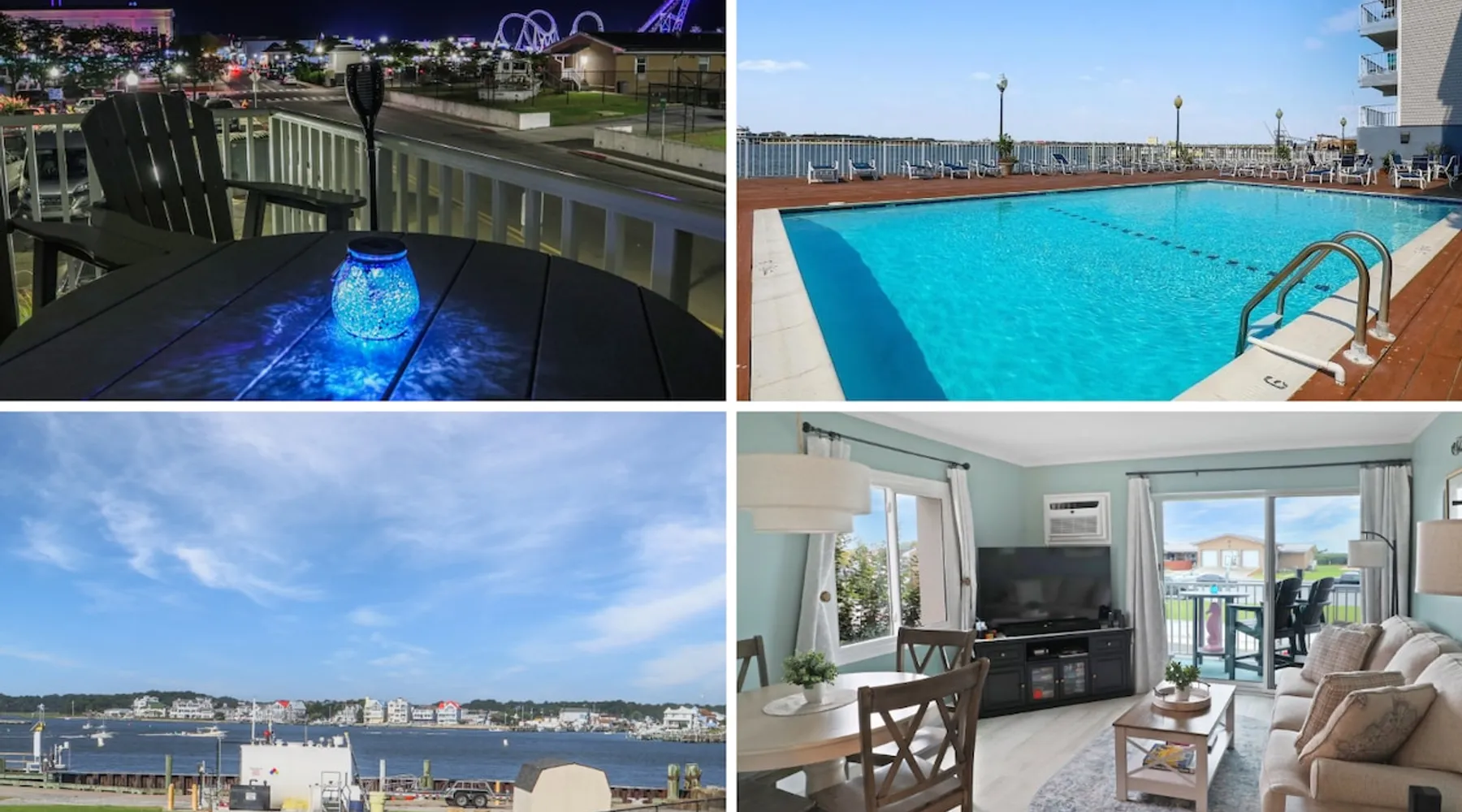 Just looking? Click the ❤️ for last-minute deals and discount alerts. Beautifully decorated corner unit just 2 blocks to the Boardwalk, beach, and all of Ocean City's downtown attractions. Guests rave that it's impeccably clean, well-stocked, and family-friendly, with thoughtful touches throughout. Relax by the bayfront pool or enjoy coffee on the open balcony. Enjoy free parking, smooth check-in, & responsive hosts. Whether your first visit or a repeat stay, this cozy retreat feels like home. The space Furnished Balcony | Elevator Available | Central Location | In-Unit Laundry | Seasonal Community Outdoor Pool (Depth 3'-6') Whether you’re planning a romantic beach retreat with your significant other or an ocean vacation with your best friends, this condo is the perfect home base. Bedroom: King Bed | Living Room: Queen Sleeper Sofa INDOOR LIVING: Smart TVs w/ complimentary Netflix & Hulu, Blu-Ray Player, retro Atari & Nintendo game systems, board games, books, phone-charging station OUTDOOR LIVING: Furnished balcony, dining area, water views of the bay and inlet (home base of the Coast Guard) KITCHEN: Refrigerator, stove/oven, dishwasher, dishware/flatware, cooking basics, spices, Keurig coffee maker, blender, Crockpot, microwave, toaster, water filter GENERAL: Free WiFi, keyless entry, 2 A/C wall units, electric heating, washer/dryer, linens/towels, laundry detergent, trash bags, paper towels, hair dryer FAQ: Step-free access, elevator on-site, Ring doorbell & exterior security camera (facing out) PARKING: Reserved space in the building's parking lot (1 vehicle) Guest access Guests will have access to the entire property via keyless entry Other things to note Thank you for choosing our home. Please read the house rules below carefully; they help us protect the space, follow building policy, and ensure a comfortable stay for everyone. If you cannot agree to these rules, contact us within 24 hours of booking and we will cancel your reservation at no charge. Respectful Stay — Our goal is a safe, clean, and peaceful stay for you and our neighbors. Please treat our home with care and report any accidental damage right away. — Violation of these house rules may result in immediate cancellation of your stay without refund, and/or additional charges (e.g. for bringing pets or for smoking). No Pets or ESAs — Pets and emotional support animals are not allowed under any circumstances, even if they have a certificate or a special vest. The HOA enforces this and may issue a $500 fine for violations. No Smoking — Smoking of any kind is not permitted anywhere on the property, including the balcony. This includes cigarettes, vaping, and cannabis, even with a medical card. Maximum Occupancy — Our condo is configured and stocked for up to 4 guests, including children. We define an occupant as anyone on the property between 11:00 PM and 7:00 AM. No Events or Parties — Please do not host gatherings, events, or parties at our condo. If you plan to have a small, quiet visit, message us in advance. Minimum Age — The primary guest must be 25 years or older. You may not book our place for anyone other than yourself and your own travel companions. Photo ID — We may request a valid photo ID before check-in for verification. The ID must match the information on your reservation. No Airbnb Services or Experiences — Hosting or bringing any Airbnb Service or Experience onto the premises is not permitted without our prior written approval. Unauthorized attempts to run an Experience will result in reservation cancellation with no refund. Security and Privacy — Front door video doorbell: A Ring doorbell at the front door faces the exterior hallway and records audio and video when motion is detected. — Balcony camera: A camera mounted on the outer balcony wall faces Worcester Street and is activated only on demand to check weather conditions so we can ask guests to close windows or doors if needed. — Privacy note: Neither camera records inside the unit. If anything here is unclear, message us and we’ll clarify. We appreciate your cooperation and look forward to hosting you! Registration Details 0089948