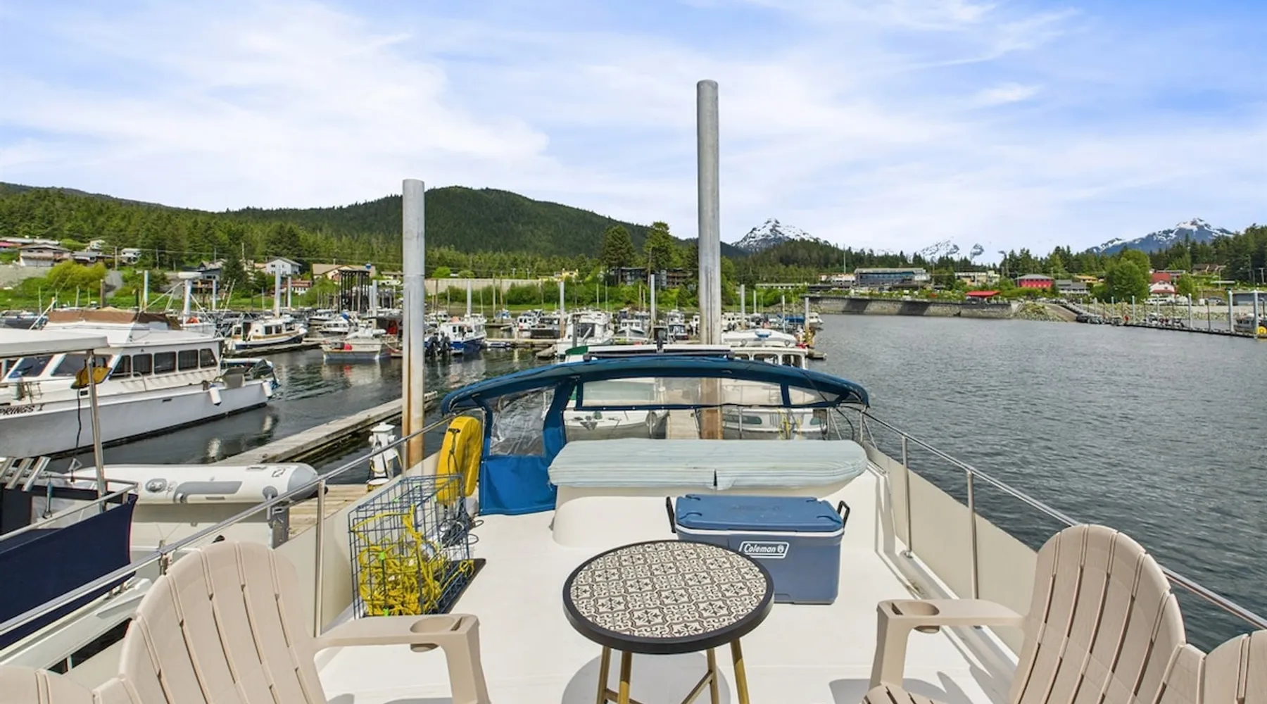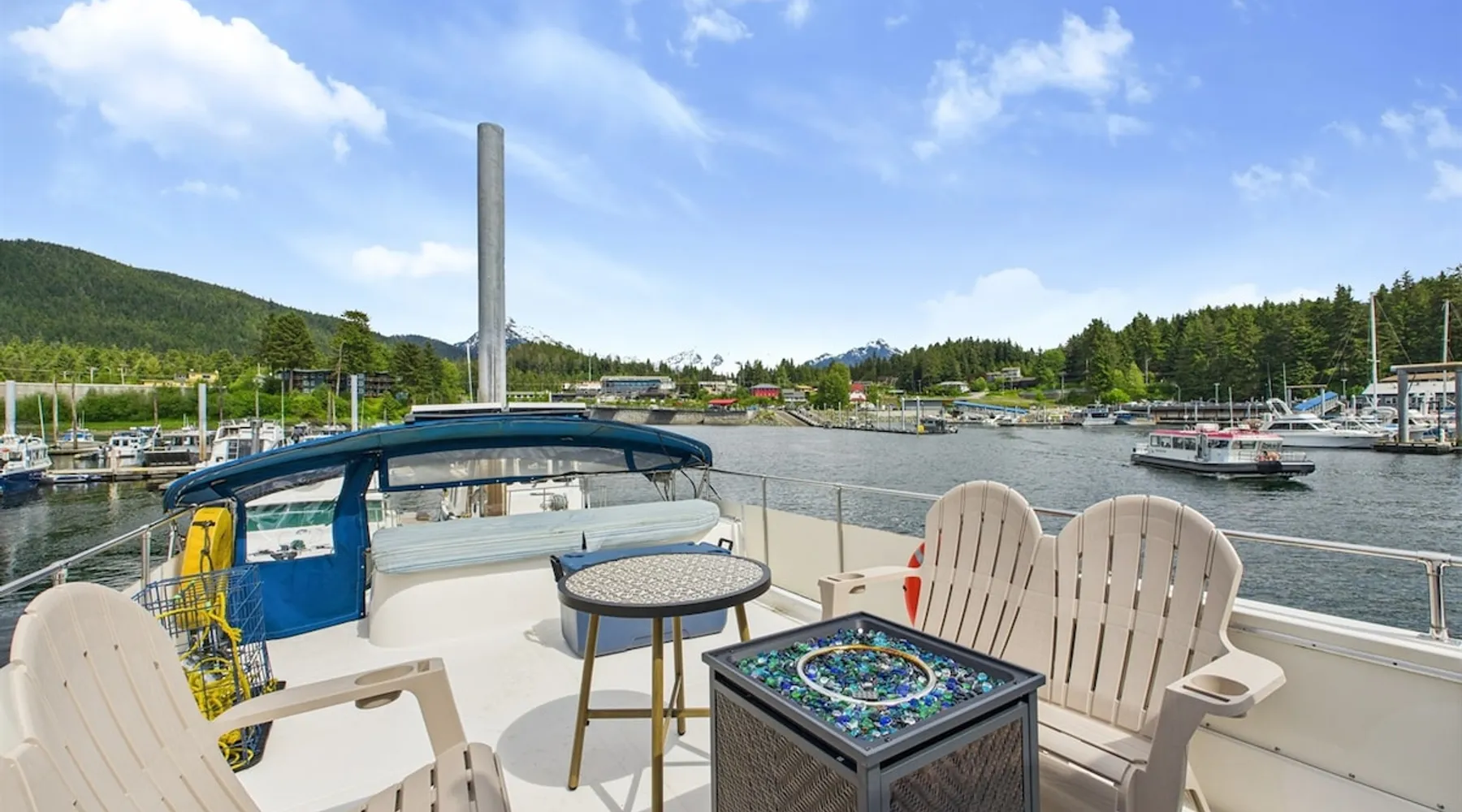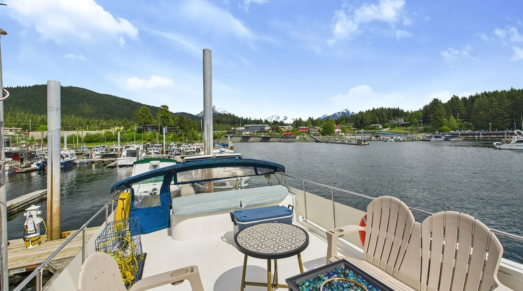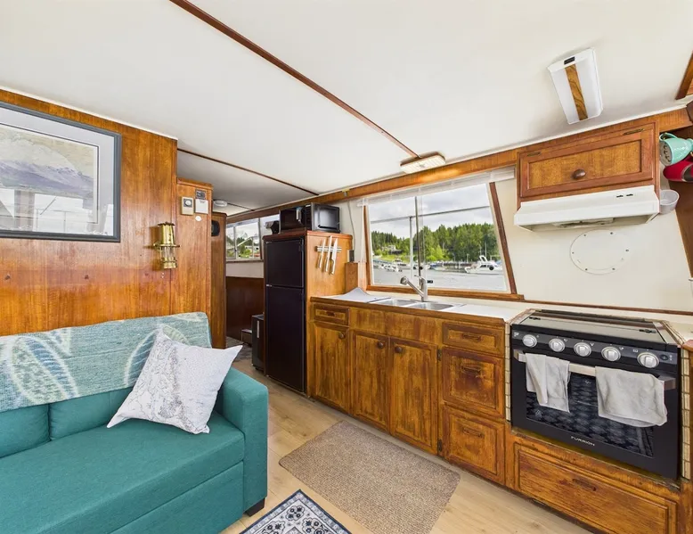 Step aboard Bigenuff II, a fully restored 49-foot Chris-Craft yacht offering a rare and unforgettable stay on the water. Docked in a peaceful harbor just minutes from downtown Juneau, this mid-century liveaboard delivers the perfect mix of character, comfort, and Alaskan spirit. After a loving restoration, she’s ready to welcome guests aboard for a truly unique experience. If you're looking for a unique stay with soul, you're in the right place. The space 🛏 Sleeps 2–4 • Two cozy sleeping areas with vintage nautical charm • Thoughtfully decorated salon with panoramic harbor views • Full galley kitchen for preparing simple meals on board • Hot shower, flush toilet, shore power, and WiFi available • A cozy salon for morning coffee, evening wine, or wildlife watching Other things to note 🚤 The Experience Wake up to the gentle sway of the water and the sounds of seabirds. Spend your day exploring Juneau’s trails, restaurants, and attractions—then return to your floating retreat for a quiet night under the stars. Whether you’re a boating enthusiast or just looking for something off the beaten path, Bigenuff II offers an unmatched way to experience Southeast Alaska. **Please note: Bigenuff II is a stationary yacht and remains securely docked in its slip throughout your stay. It is not available for cruising or operation.** Registration details CBJ1002433