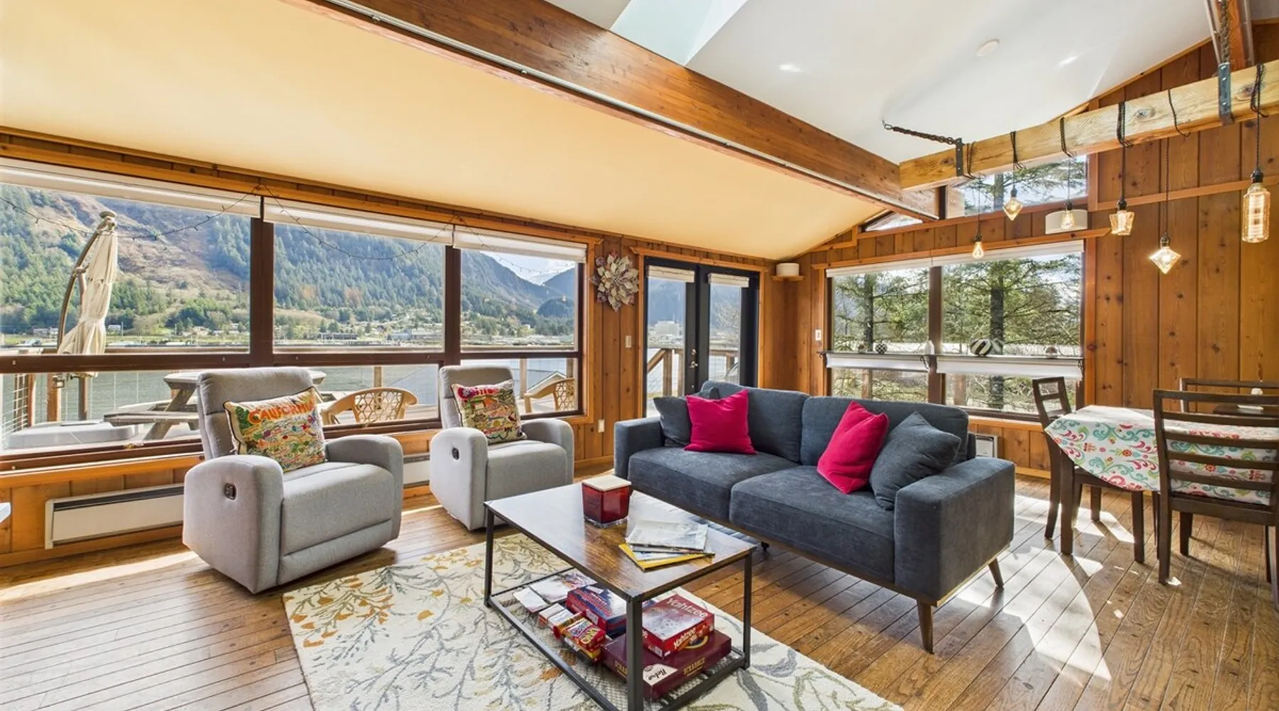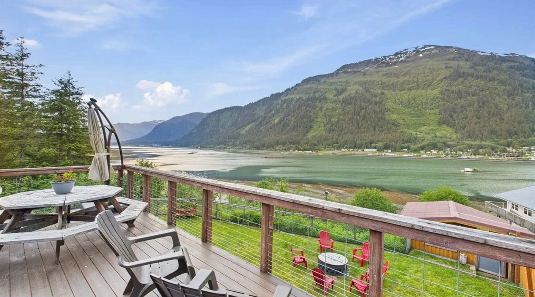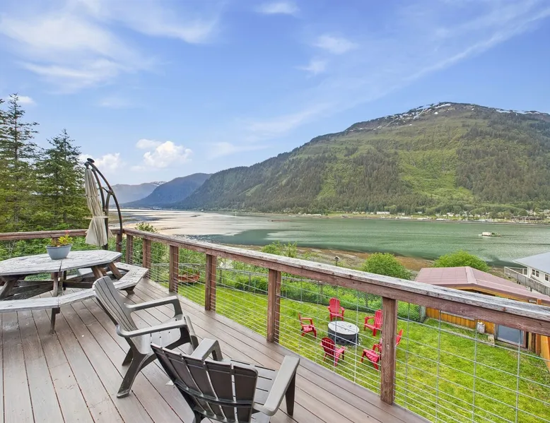 Unwind with front-row views of the Pacific in this spacious, oceanfront 4-bedroom home just 1.5 miles from downtown Juneau. Set on a large flat yard with sweeping ocean and mountain vistas, this is the perfect retreat for two families, large groups, or multi-generational travelers seeking space and comfort. Gather by the fire pit for sunset stories and s’mores. With two kitchens, two living rooms, and two laundry areas, this home was built for shared moments and personal space. CBJ1002379 The space 🛏️ The Space Bedroom 1 (Primary) – King bed with ensuite + large soaking tub Bedroom 2, 3 & 4 – Each with Queen bed 2.5 Bathrooms – including ensuite with soaking tub & shared full bath 🍽️ Inside Features 2 Full Kitchens – Great for shared meals or giving everyone cooking space 2 Living Rooms – Spread out, relax, and enjoy time together 2 Dining Areas + Outdoor Dining – Room for everyone Smart TVs + High-Speed WiFi Washer/Dryer on Both Levels 🌿 Outdoor Living Covered deck with seating for rainy-day relaxation Uncovered deck for sun-soaked afternoons Fire pit with ocean views Large flat yard – great for kids to run or for outdoor games Wildlife viewing right from the property Registration Details CBJ1002379