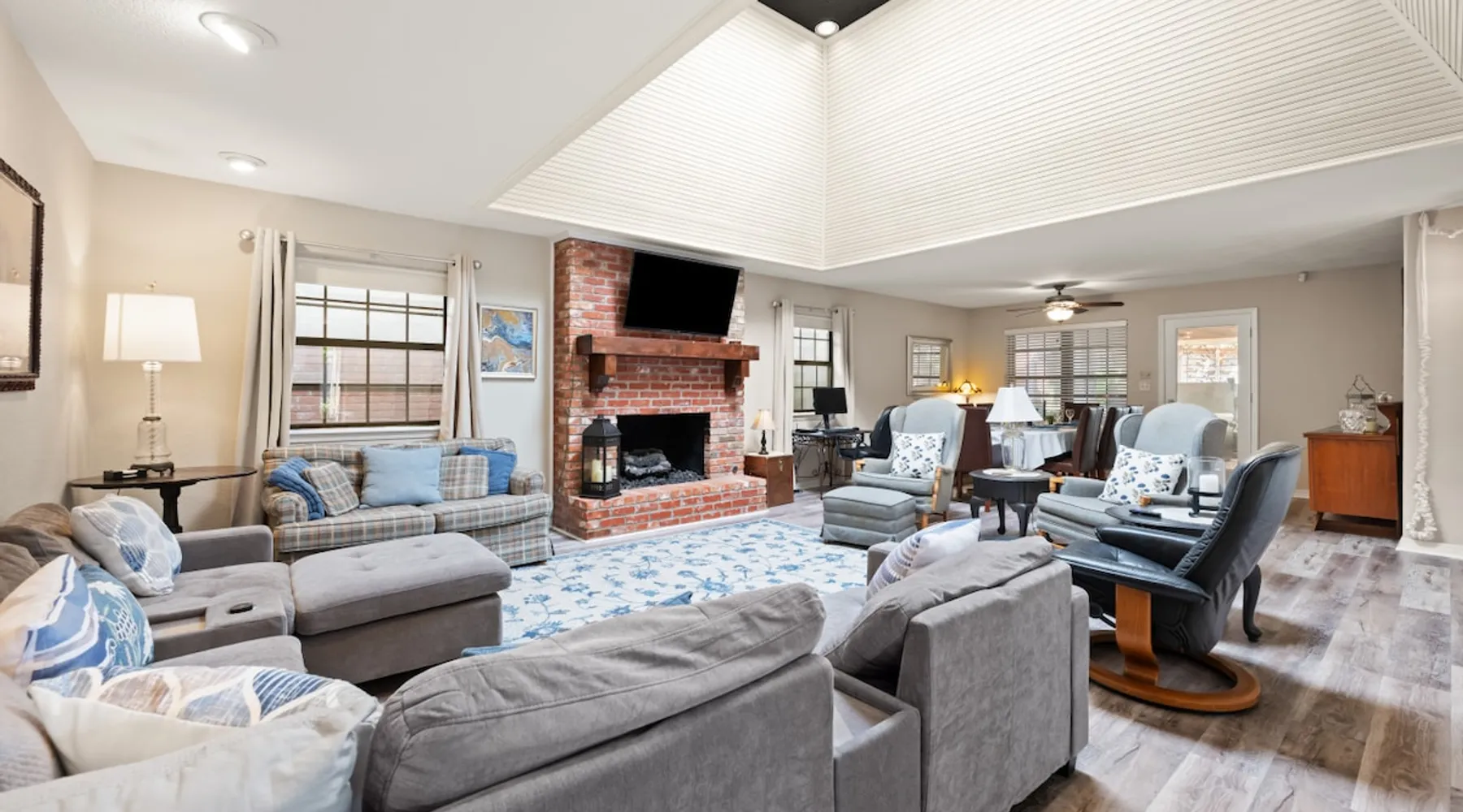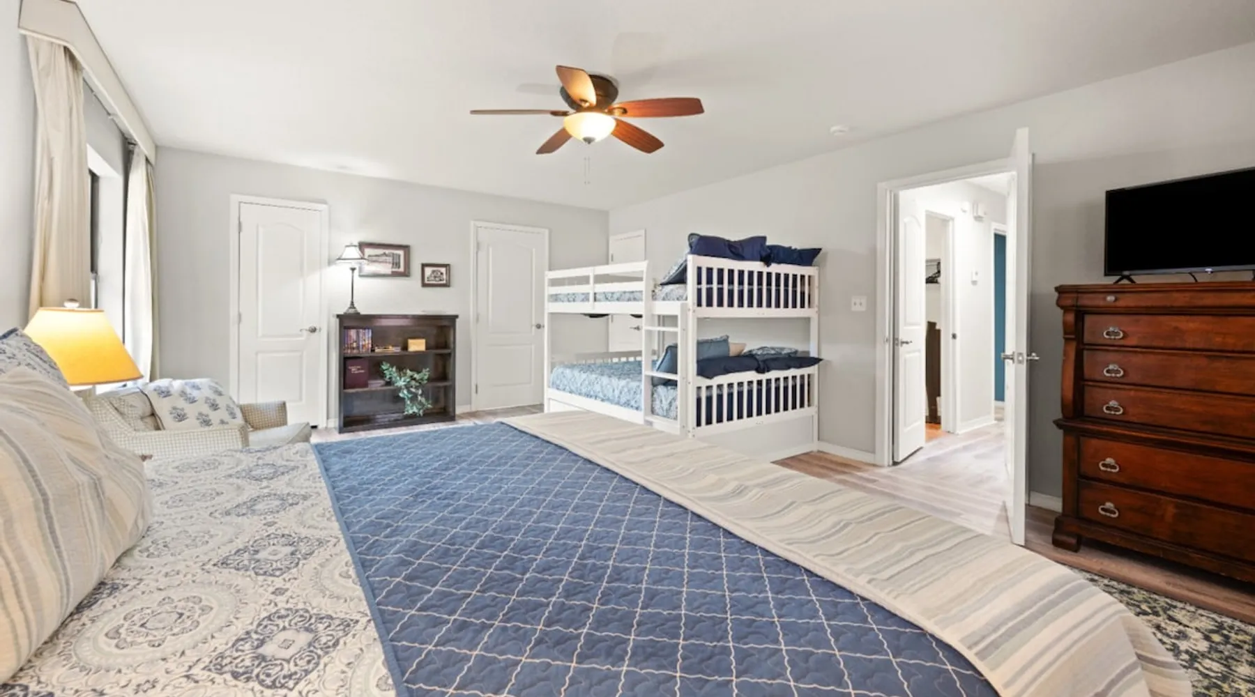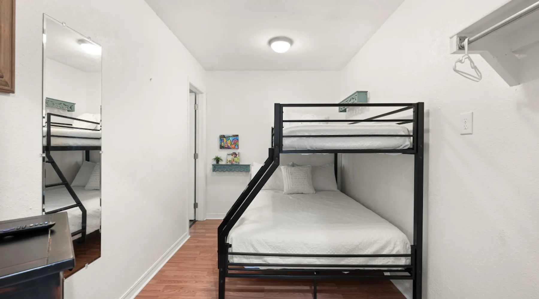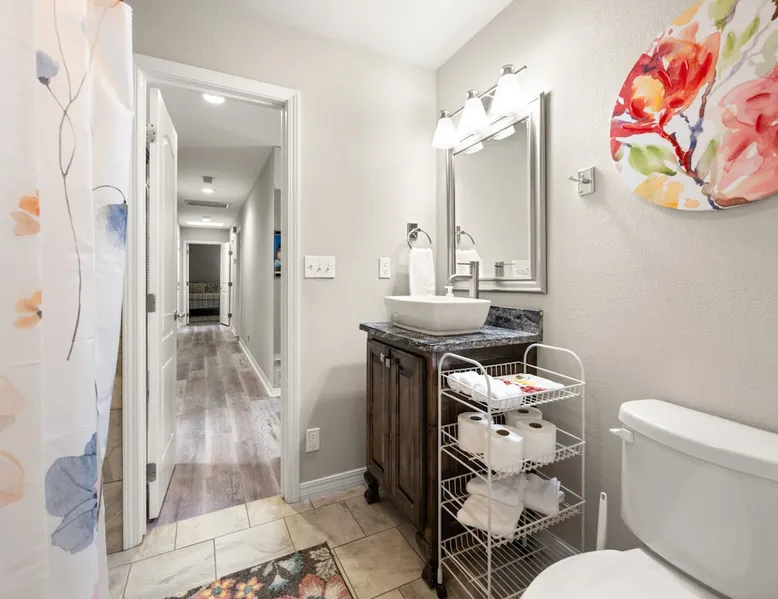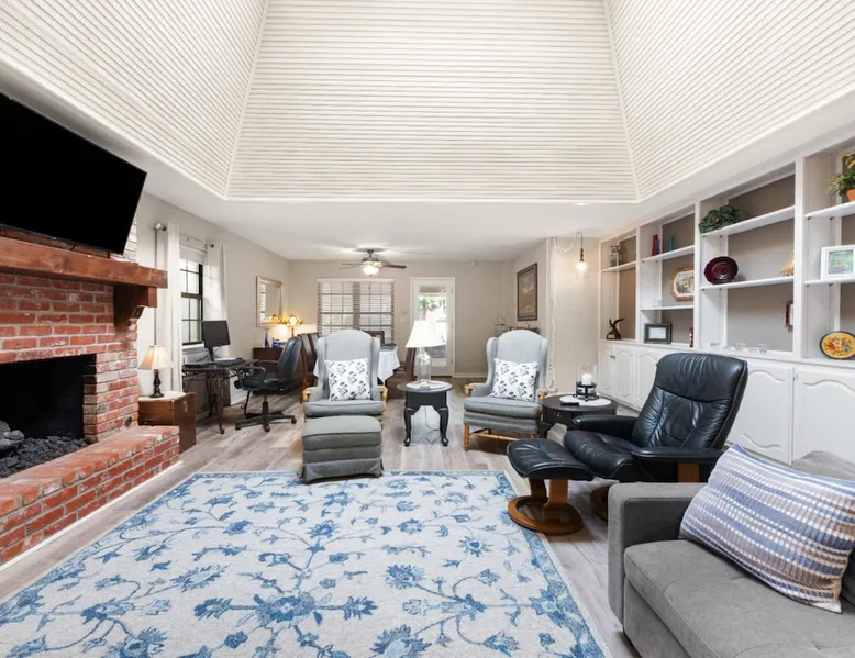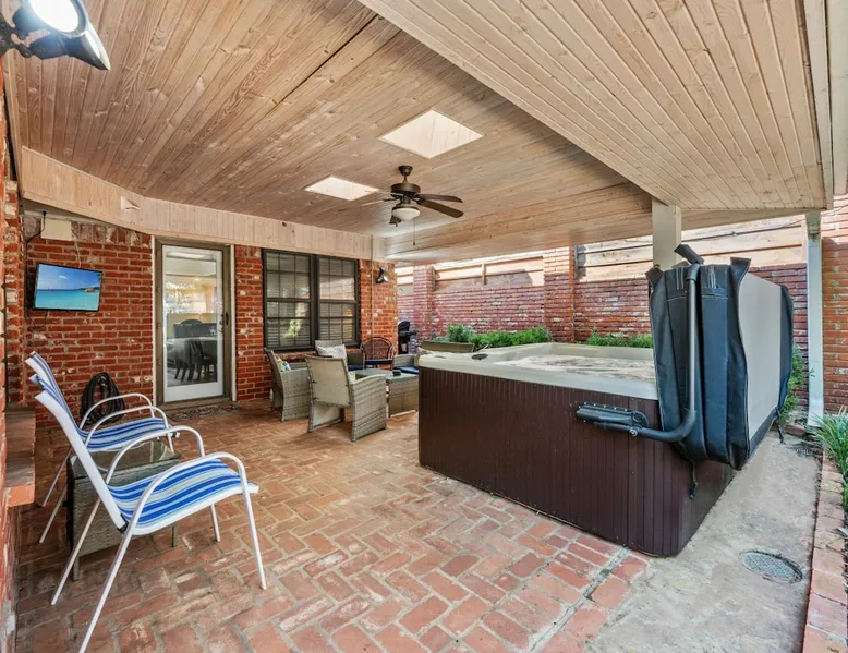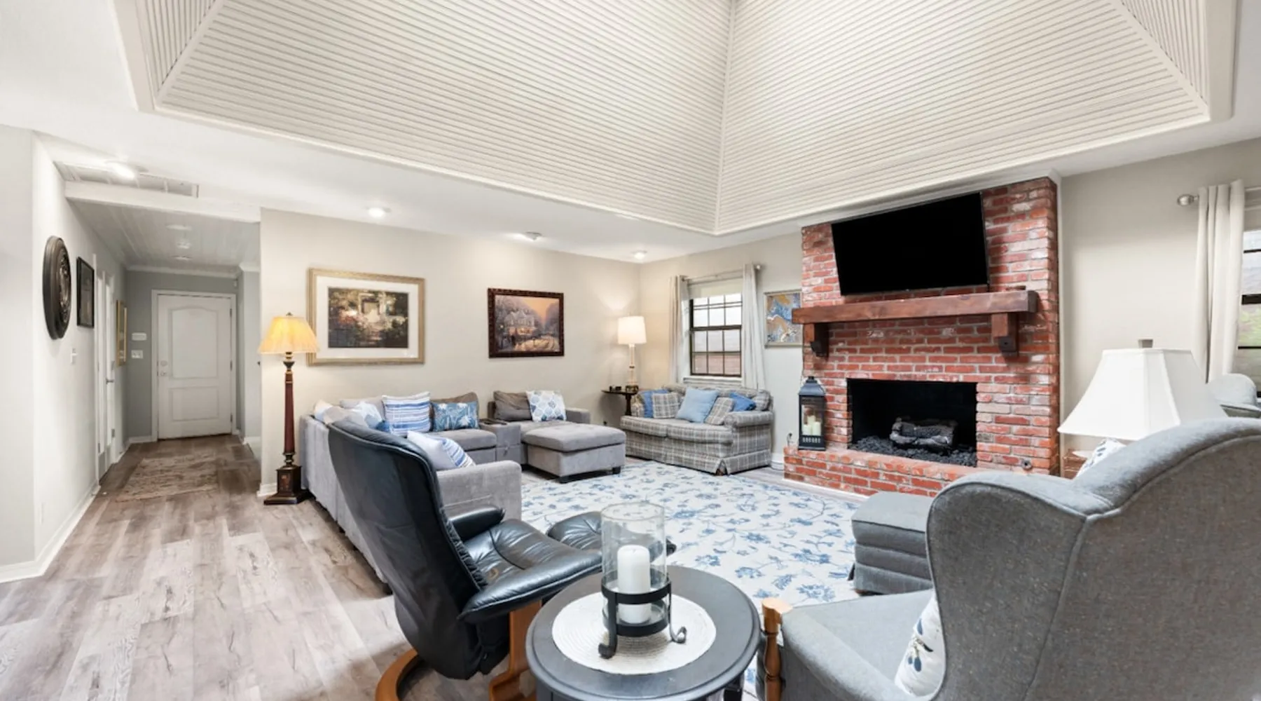 Escape to comfort and character in this 4-bedroom, 3-bath Oklahoma City home, perfect for families and group getaways. Enjoy cozy evenings by the gas fireplace, relax in the private hot tub on the covered patio, or whip up meals in the fully stocked kitchen. Just 15 miles from downtown and close to parks, shopping, and medical centers, this pet-friendly retreat is your ideal base for both city exploration and quiet nights in. The space Highlights: Outdoor Relaxation: Covered patio with private hot tub, outdoor seating, and yard games for family fun Fully Equipped Kitchen: Includes dishwasher, microwave, drip coffee maker, blender, spices, cooking basics, children’s dishware, and more Entertainment Galore: 6 Smart TVs, board games, and a cozy gas fireplace Family-Ready Comforts: High chair, portable crib, work desk, and washer/dryer Extras: Single-story with grab rails in shower Pet-friendly with $150 fee (2 pets max) Sleeping Arrangements: Bedroom 1: King Bed, Full Bunk Bed with Twin Trundle Bedroom 2: Twin/Full Bunk Bed Bedroom 3: King Bed Bedroom 4: King Bed, Twin Daybed with Twin Trundle Additional: 1 Portable Crib Parking: 5 (2 in garage, 3 in driveway) Additional street parking available on first-come, first-served basis. No RV/trailer parking allowed. Other things to note House Rules: •No Smoking •No events, parties, or large gatherings •Must be at least 25 years old to book •ID may be required •Please report any damages that occur to both the Guest Contact and Triad Vacation Rentals Additional Information: Single-story home, 1 step to enter. Exterior security cameras in place. Guests must be 25+ to book. No smoking or parties allowed.