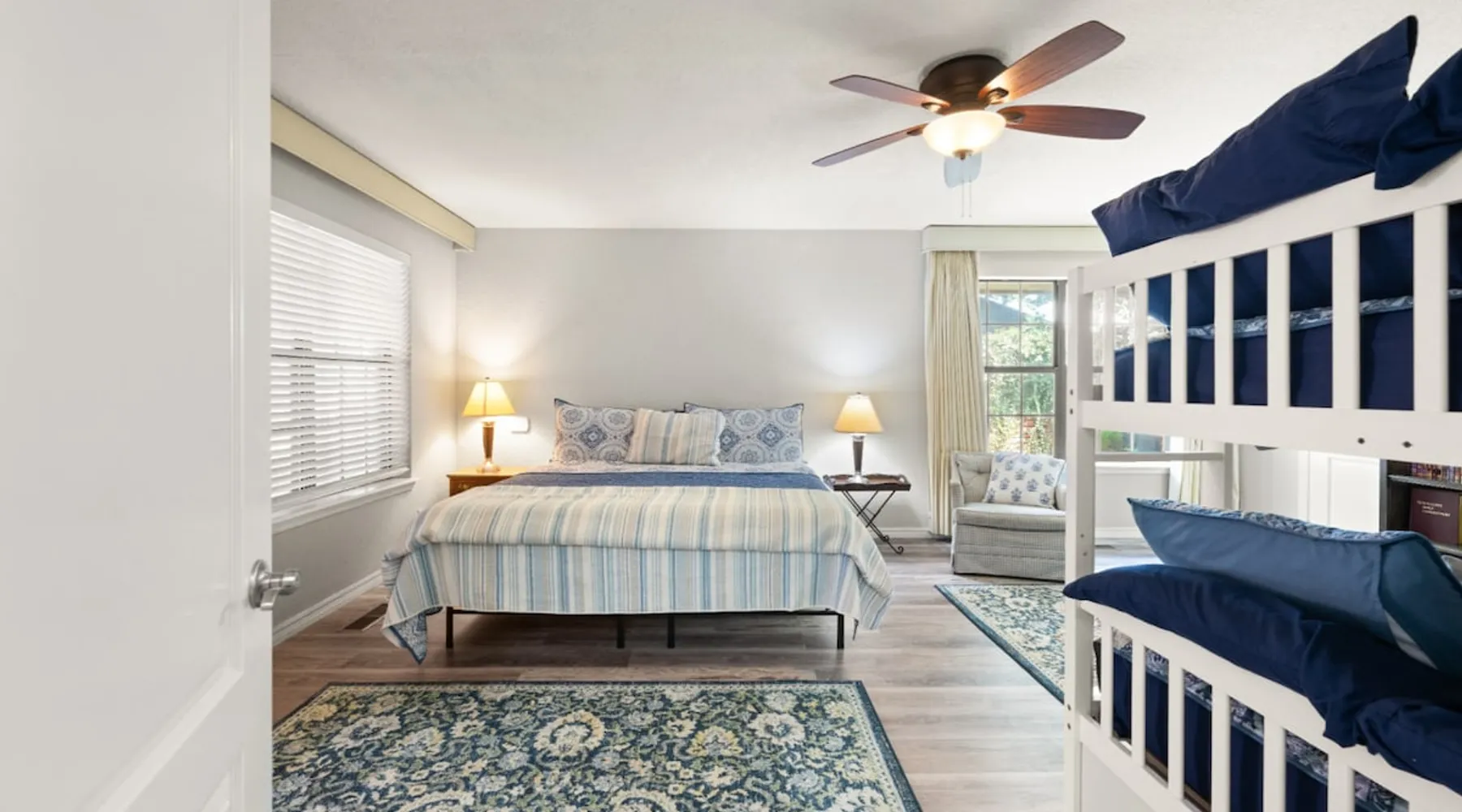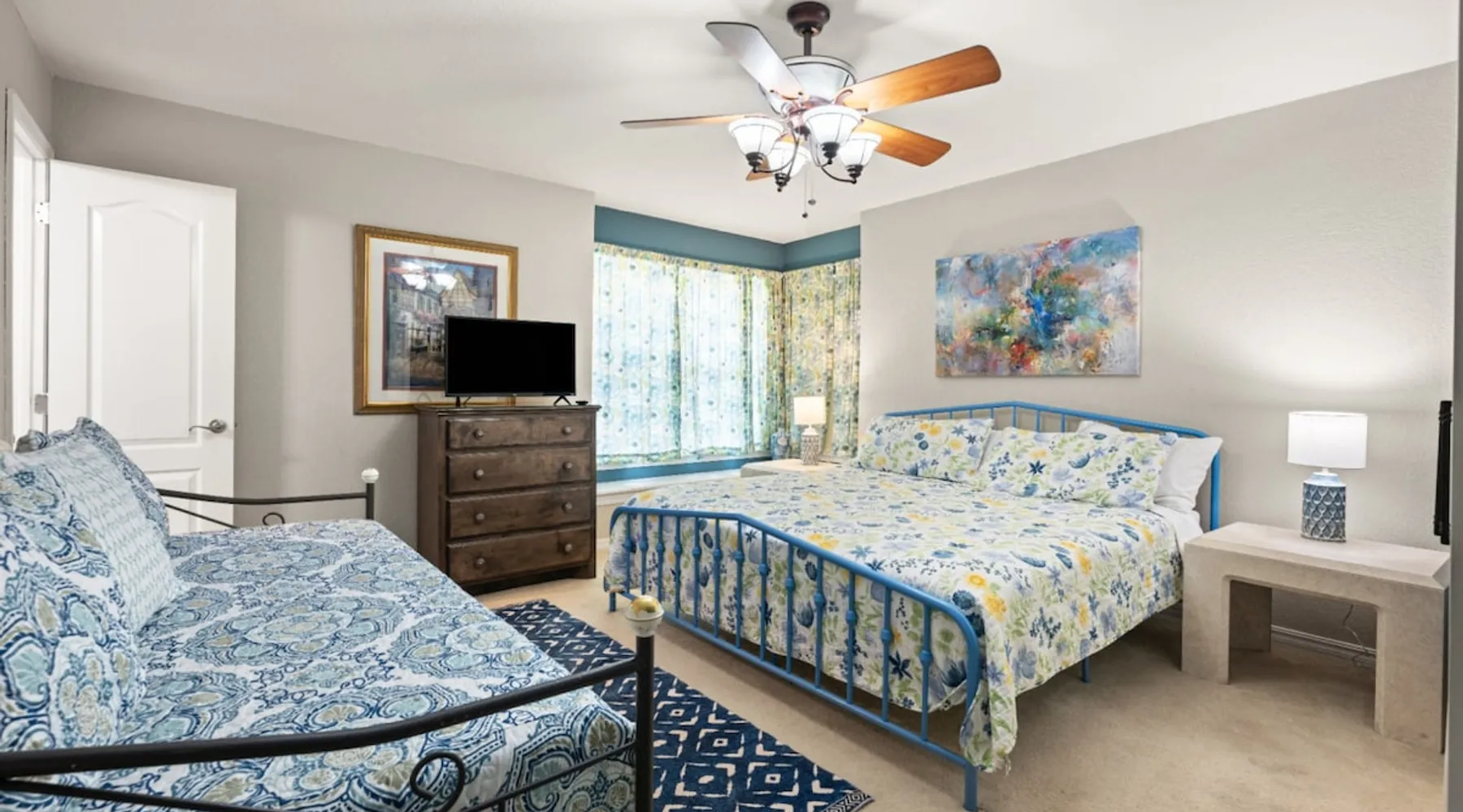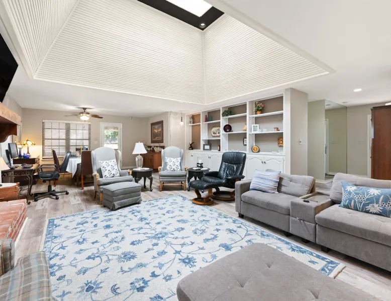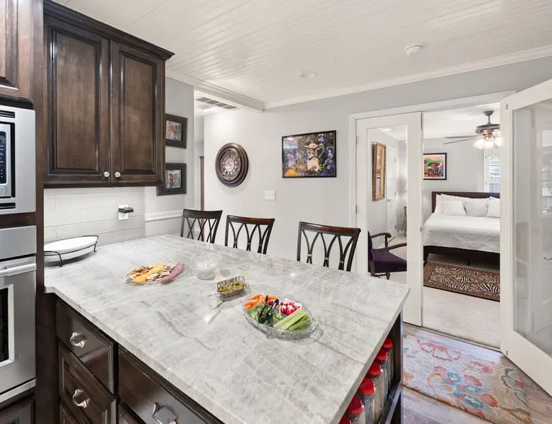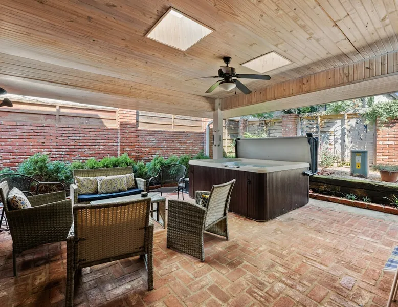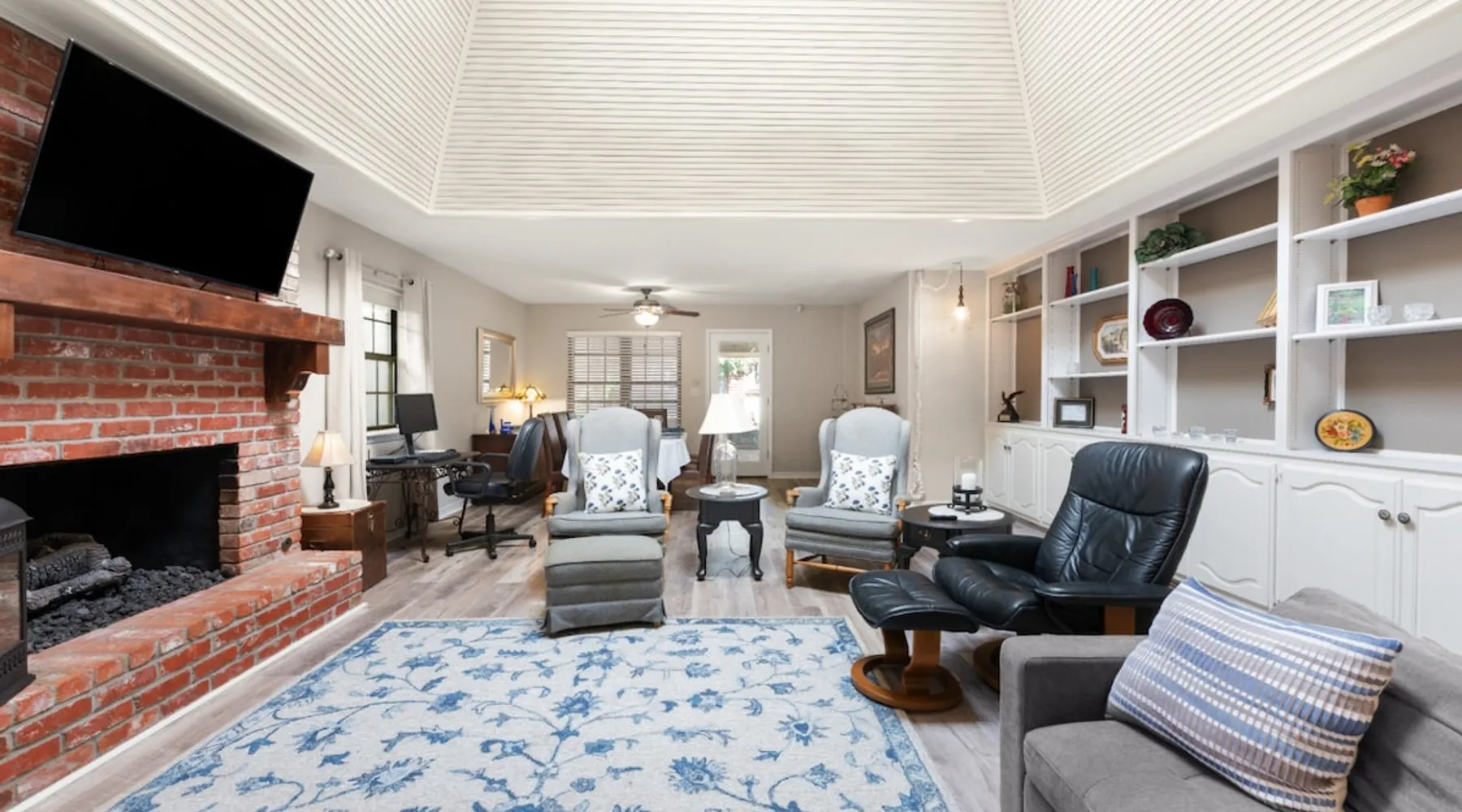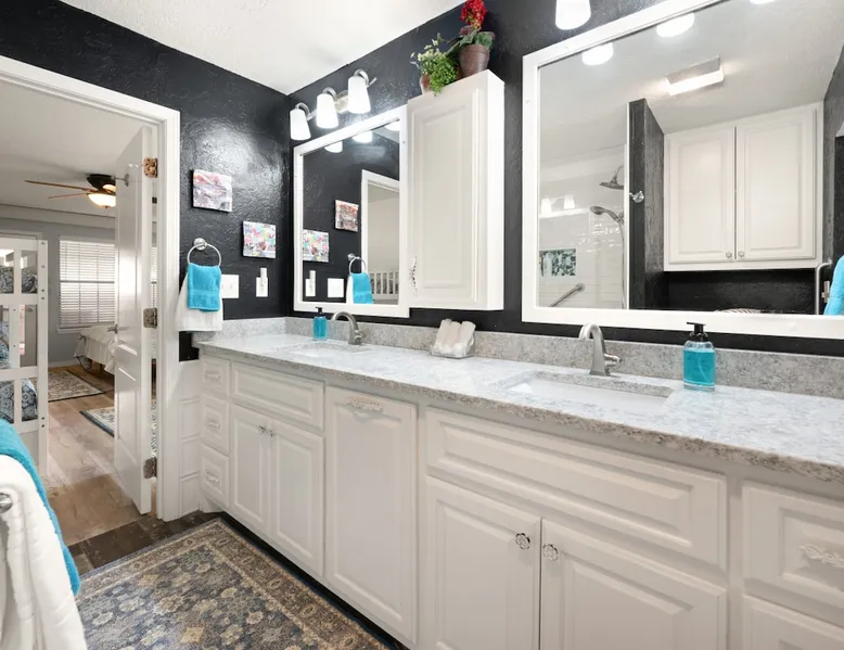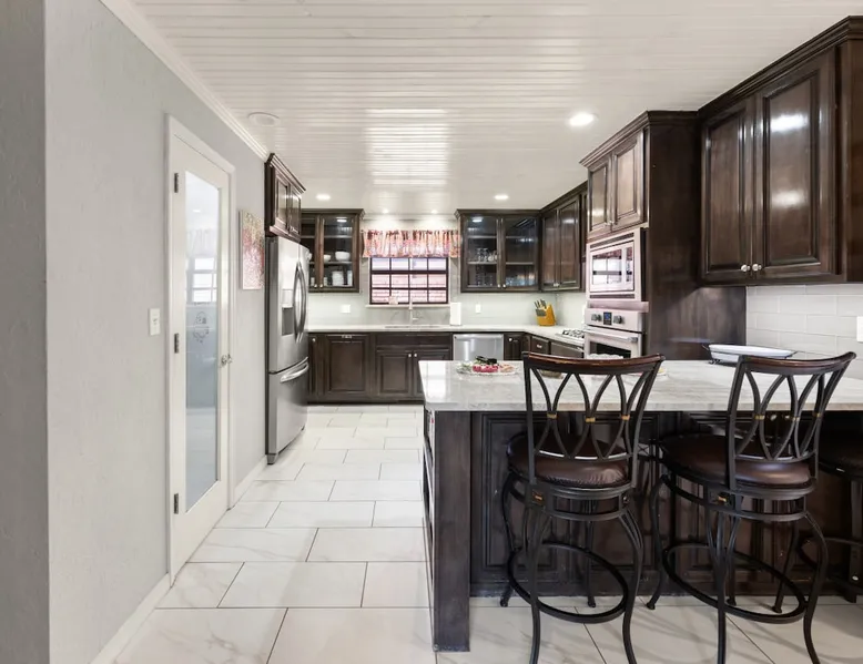 Escape to comfort and character in this 4-bedroom, 3-bath Oklahoma City home, perfect for families and group getaways. Enjoy cozy evenings by the gas fireplace, relax in the private hot tub on the covered patio, or whip up meals in the fully stocked kitchen. Just 15 miles from downtown and close to parks, shopping, and medical centers, this pet-friendly retreat is your ideal base for both city exploration and quiet nights in. The space Highlights: Outdoor Relaxation: Covered patio with private hot tub, outdoor seating, and yard games for family fun Fully Equipped Kitchen: Includes dishwasher, microwave, drip coffee maker, blender, spices, cooking basics, children’s dishware, and more Entertainment Galore: 6 Smart TVs, board games, and a cozy gas fireplace Family-Ready Comforts: High chair, portable crib, work desk, and washer/dryer Extras: Single-story with grab rails in shower Pet-friendly with $150 fee (2 pets max) Sleeping Arrangements: Bedroom 1: King Bed, Full Bunk Bed with Twin Trundle Bedroom 2: Twin/Full Bunk Bed Bedroom 3: King Bed Bedroom 4: King Bed, Twin Daybed with Twin Trundle Additional: 1 Portable Crib Parking: 5 (2 in garage, 3 in driveway) Additional street parking available on first-come, first-served basis. No RV/trailer parking allowed. Other things to note House Rules: •No Smoking •No events, parties, or large gatherings •Must be at least 25 years old to book •ID may be required •Please report any damages that occur to both the Guest Contact and Triad Vacation Rentals Additional Information: Single-story home, 1 step to enter. Exterior security cameras in place. Guests must be 25+ to book. No smoking or parties allowed.
