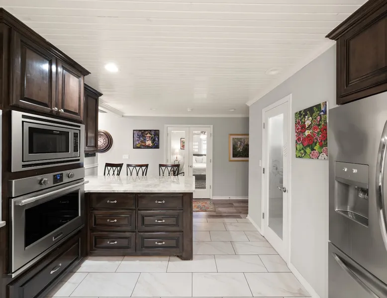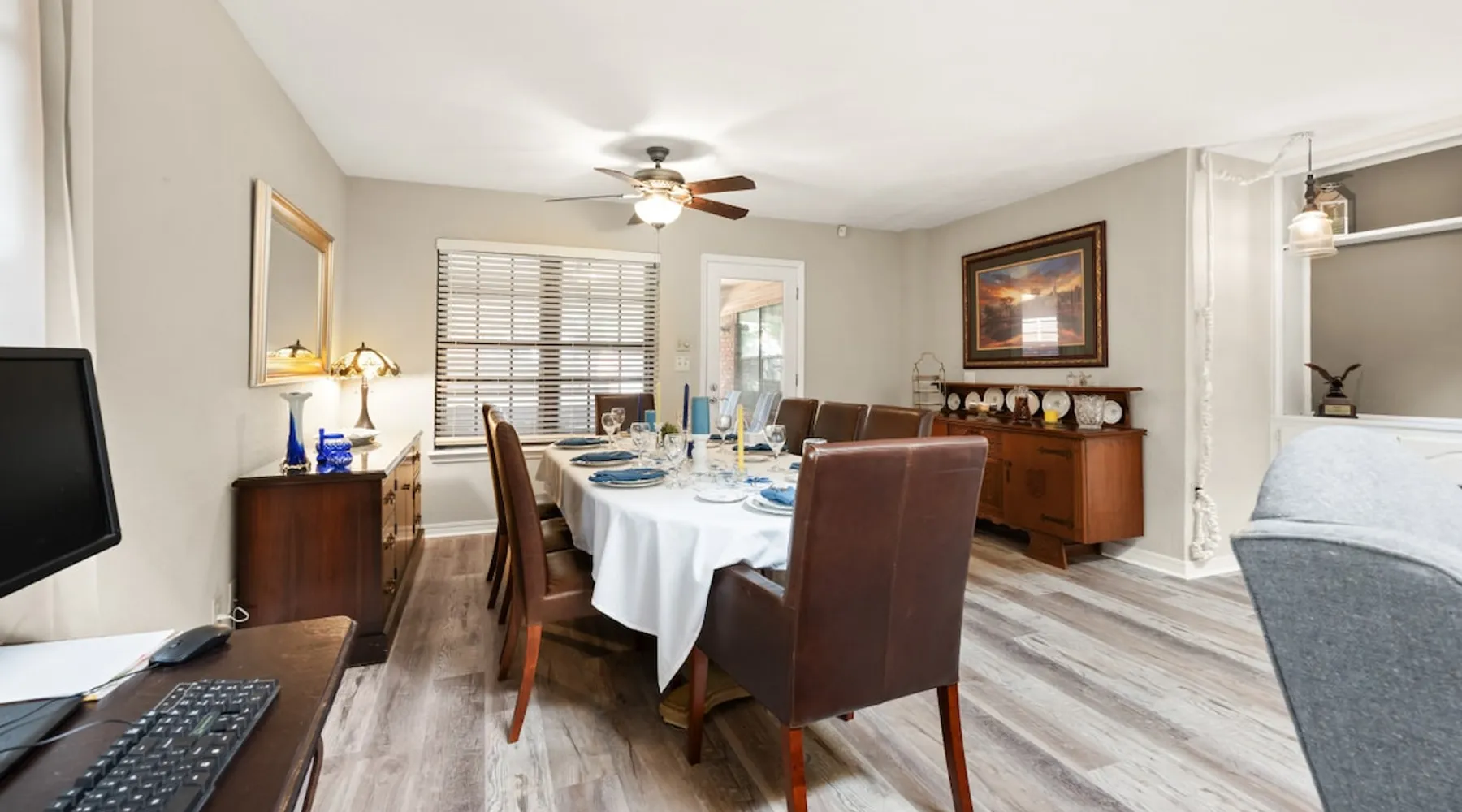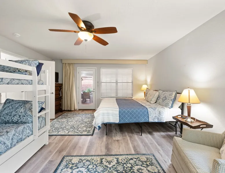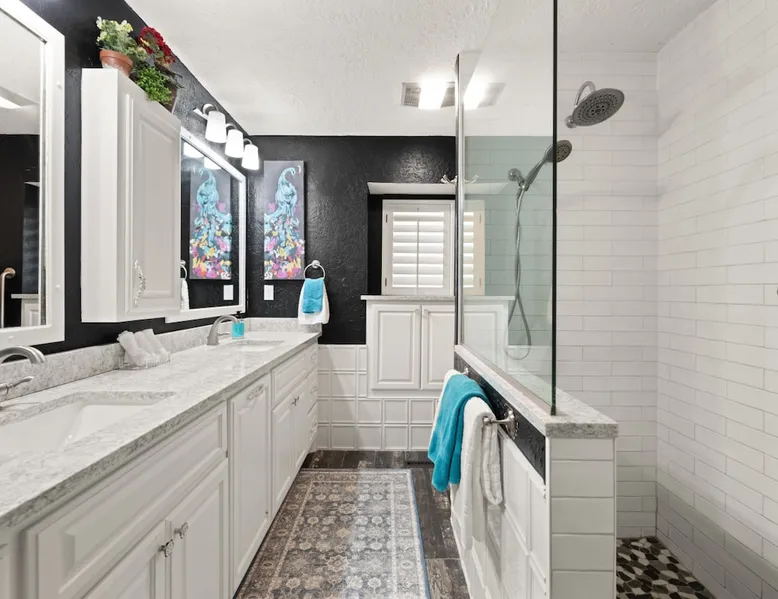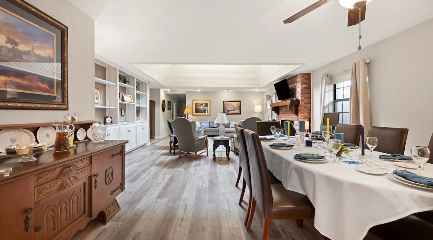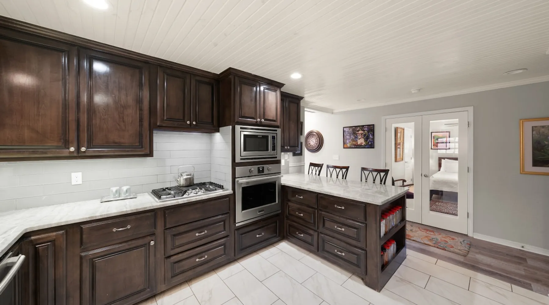 Escape to comfort and character in this 4-bedroom, 3-bath Oklahoma City home, perfect for families and group getaways. Enjoy cozy evenings by the gas fireplace, relax in the private hot tub on the covered patio, or whip up meals in the fully stocked kitchen. Just 15 miles from downtown and close to parks, shopping, and medical centers, this pet-friendly retreat is your ideal base for both city exploration and quiet nights in. The space Highlights: Outdoor Relaxation: Covered patio with private hot tub, outdoor seating, and yard games for family fun Fully Equipped Kitchen: Includes dishwasher, microwave, drip coffee maker, blender, spices, cooking basics, children’s dishware, and more Entertainment Galore: 6 Smart TVs, board games, and a cozy gas fireplace Family-Ready Comforts: High chair, portable crib, work desk, and washer/dryer Extras: Single-story with grab rails in shower Pet-friendly with $150 fee (2 pets max) Sleeping Arrangements: Bedroom 1: King Bed, Full Bunk Bed with Twin Trundle Bedroom 2: Twin/Full Bunk Bed Bedroom 3: King Bed Bedroom 4: King Bed, Twin Daybed with Twin Trundle Additional: 1 Portable Crib Parking: 5 (2 in garage, 3 in driveway) Additional street parking available on first-come, first-served basis. No RV/trailer parking allowed. Other things to note House Rules: •No Smoking •No events, parties, or large gatherings •Must be at least 25 years old to book •ID may be required •Please report any damages that occur to both the Guest Contact and Triad Vacation Rentals Additional Information: Single-story home, 1 step to enter. Exterior security cameras in place. Guests must be 25+ to book. No smoking or parties allowed.