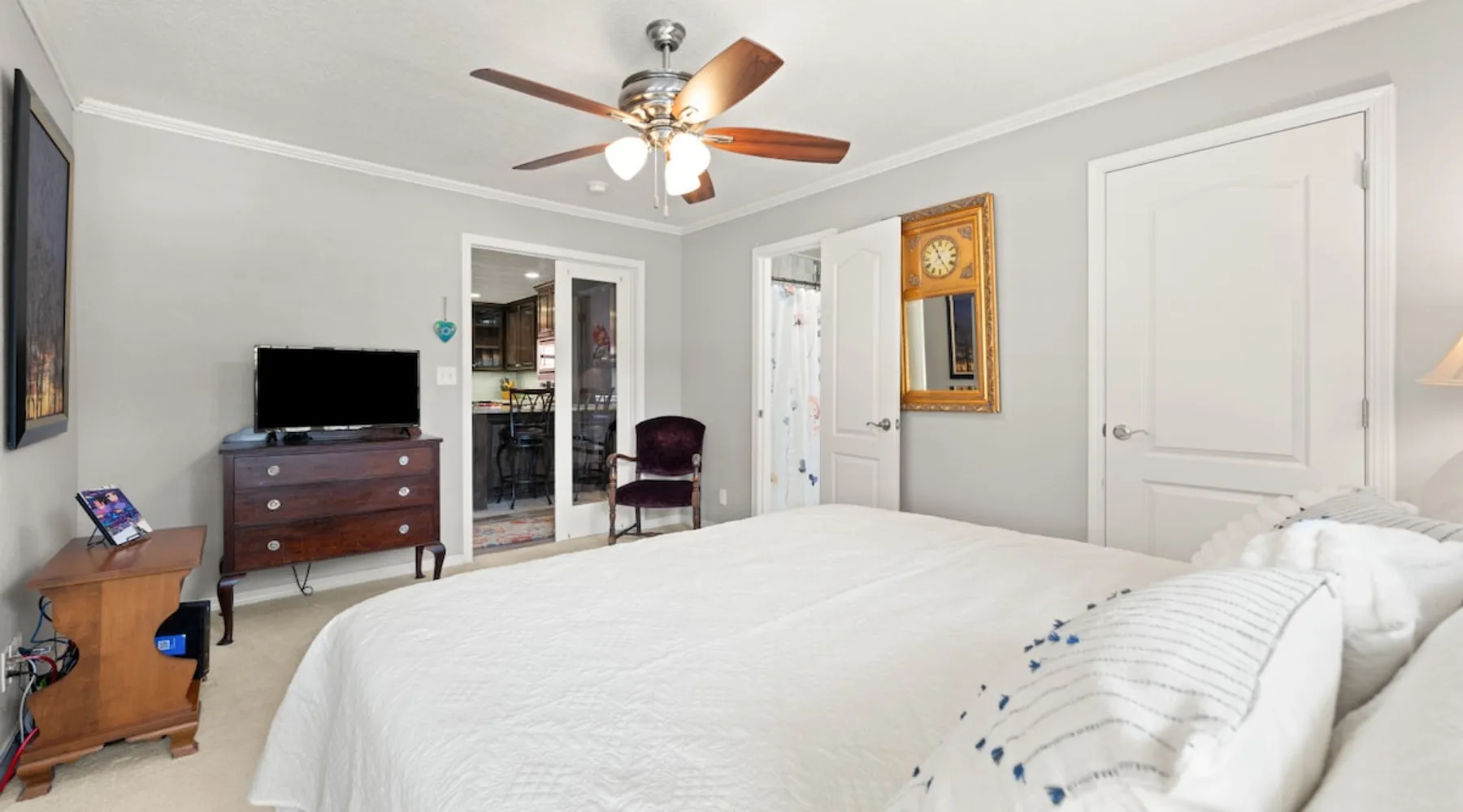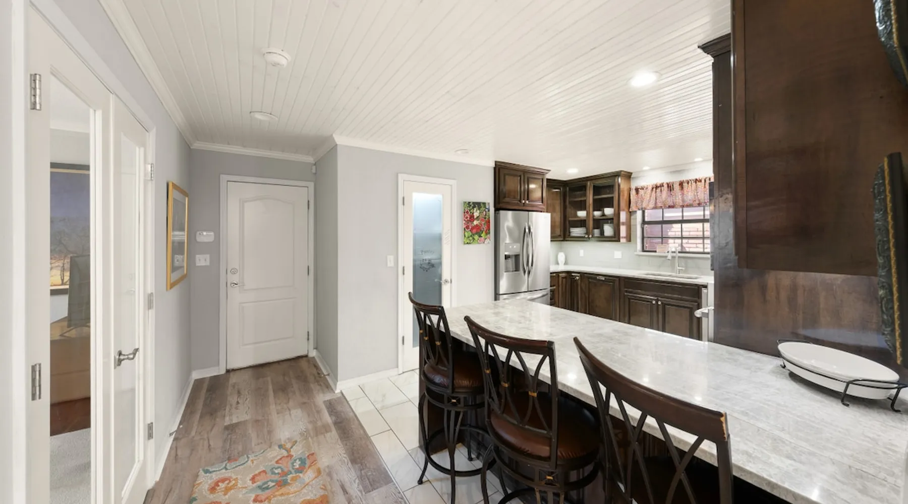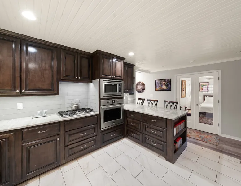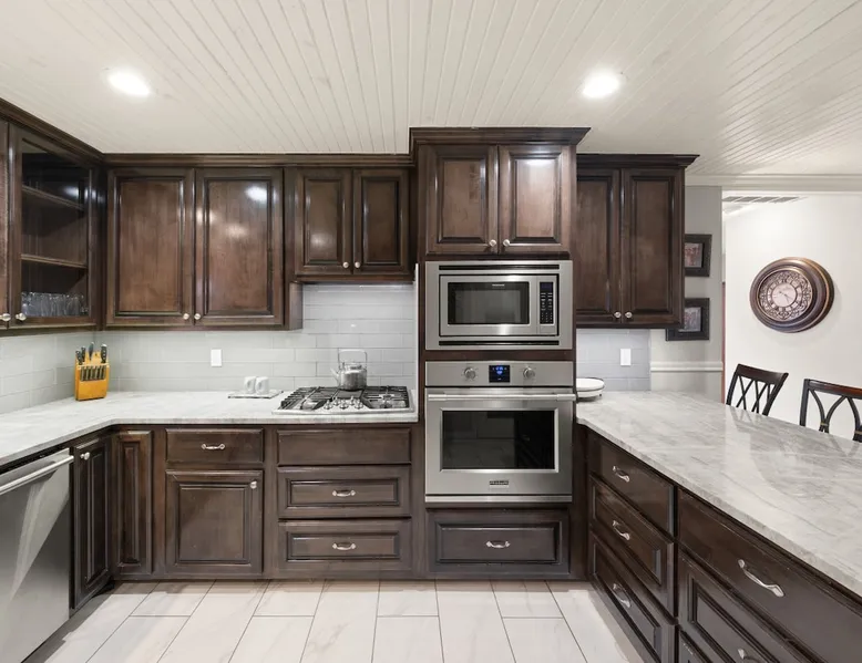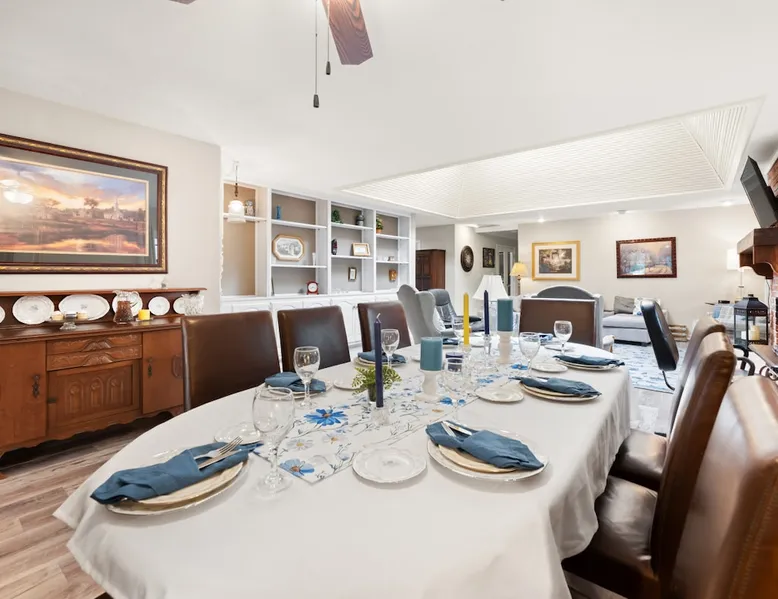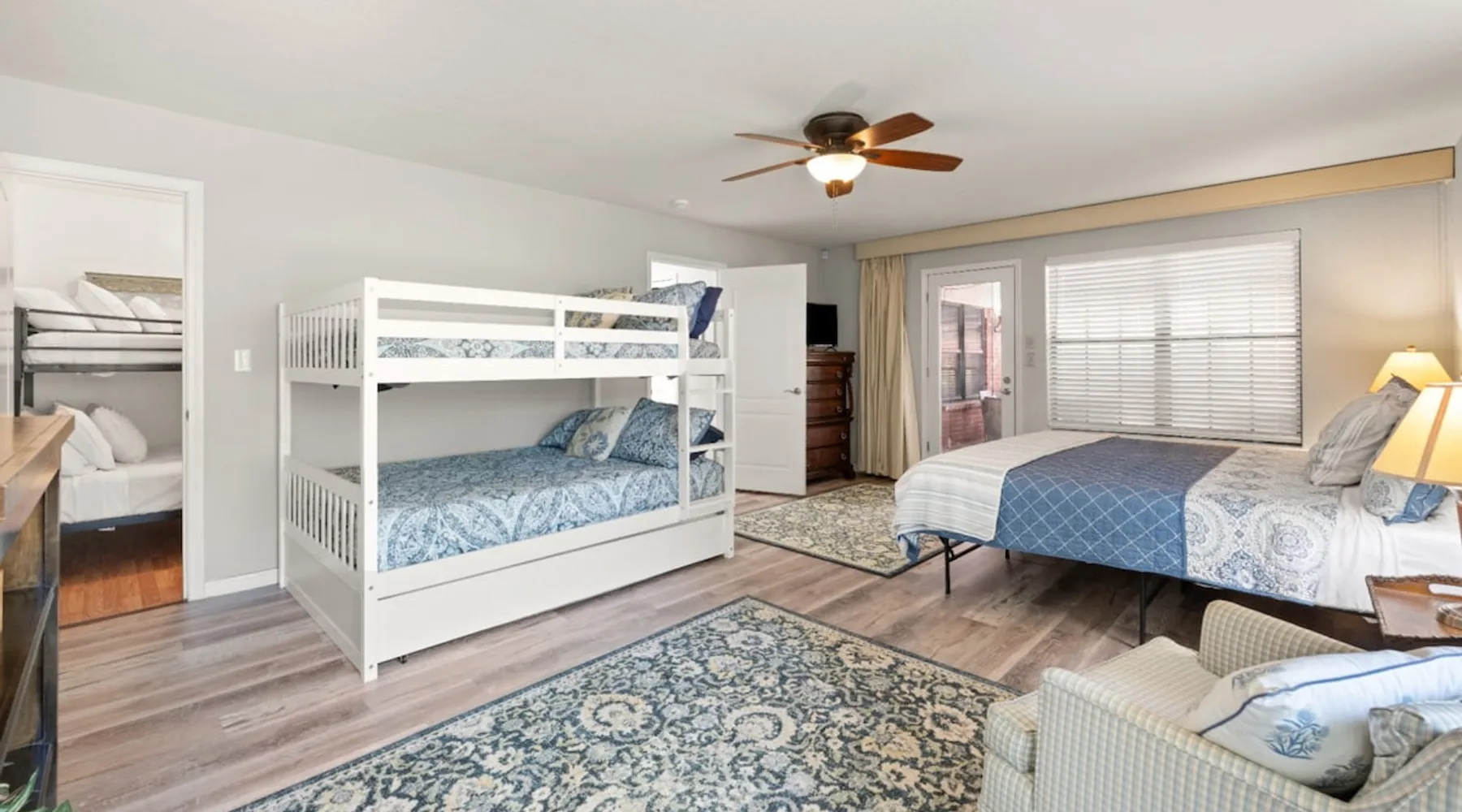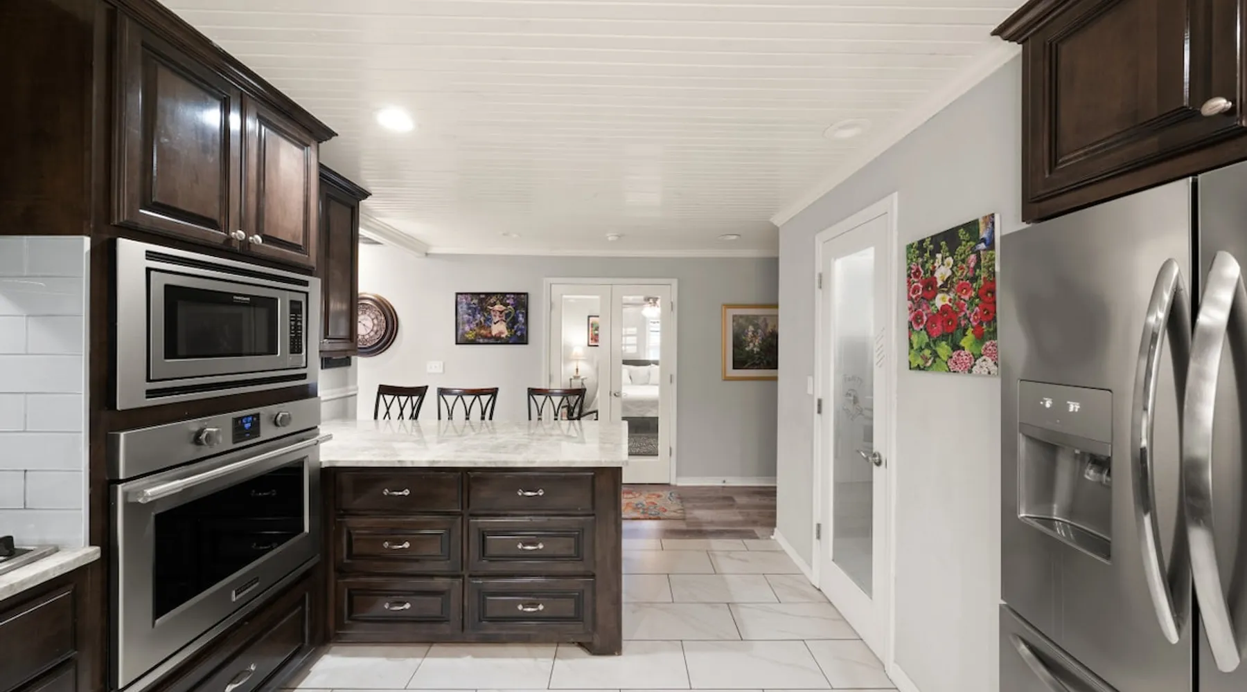 Escape to comfort and character in this 4-bedroom, 3-bath Oklahoma City home, perfect for families and group getaways. Enjoy cozy evenings by the gas fireplace, relax in the private hot tub on the covered patio, or whip up meals in the fully stocked kitchen. Just 15 miles from downtown and close to parks, shopping, and medical centers, this pet-friendly retreat is your ideal base for both city exploration and quiet nights in. The space Highlights: Outdoor Relaxation: Covered patio with private hot tub, outdoor seating, and yard games for family fun Fully Equipped Kitchen: Includes dishwasher, microwave, drip coffee maker, blender, spices, cooking basics, children’s dishware, and more Entertainment Galore: 6 Smart TVs, board games, and a cozy gas fireplace Family-Ready Comforts: High chair, portable crib, work desk, and washer/dryer Extras: Single-story with grab rails in shower Pet-friendly with $150 fee (2 pets max) Sleeping Arrangements: Bedroom 1: King Bed, Full Bunk Bed with Twin Trundle Bedroom 2: Twin/Full Bunk Bed Bedroom 3: King Bed Bedroom 4: King Bed, Twin Daybed with Twin Trundle Additional: 1 Portable Crib Parking: 5 (2 in garage, 3 in driveway) Additional street parking available on first-come, first-served basis. No RV/trailer parking allowed. Other things to note House Rules: •No Smoking •No events, parties, or large gatherings •Must be at least 25 years old to book •ID may be required •Please report any damages that occur to both the Guest Contact and Triad Vacation Rentals Additional Information: Single-story home, 1 step to enter. Exterior security cameras in place. Guests must be 25+ to book. No smoking or parties allowed.