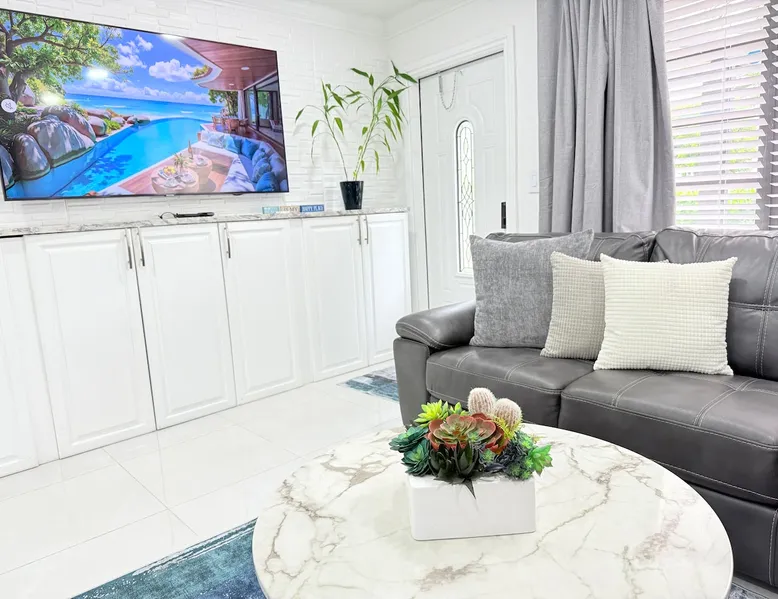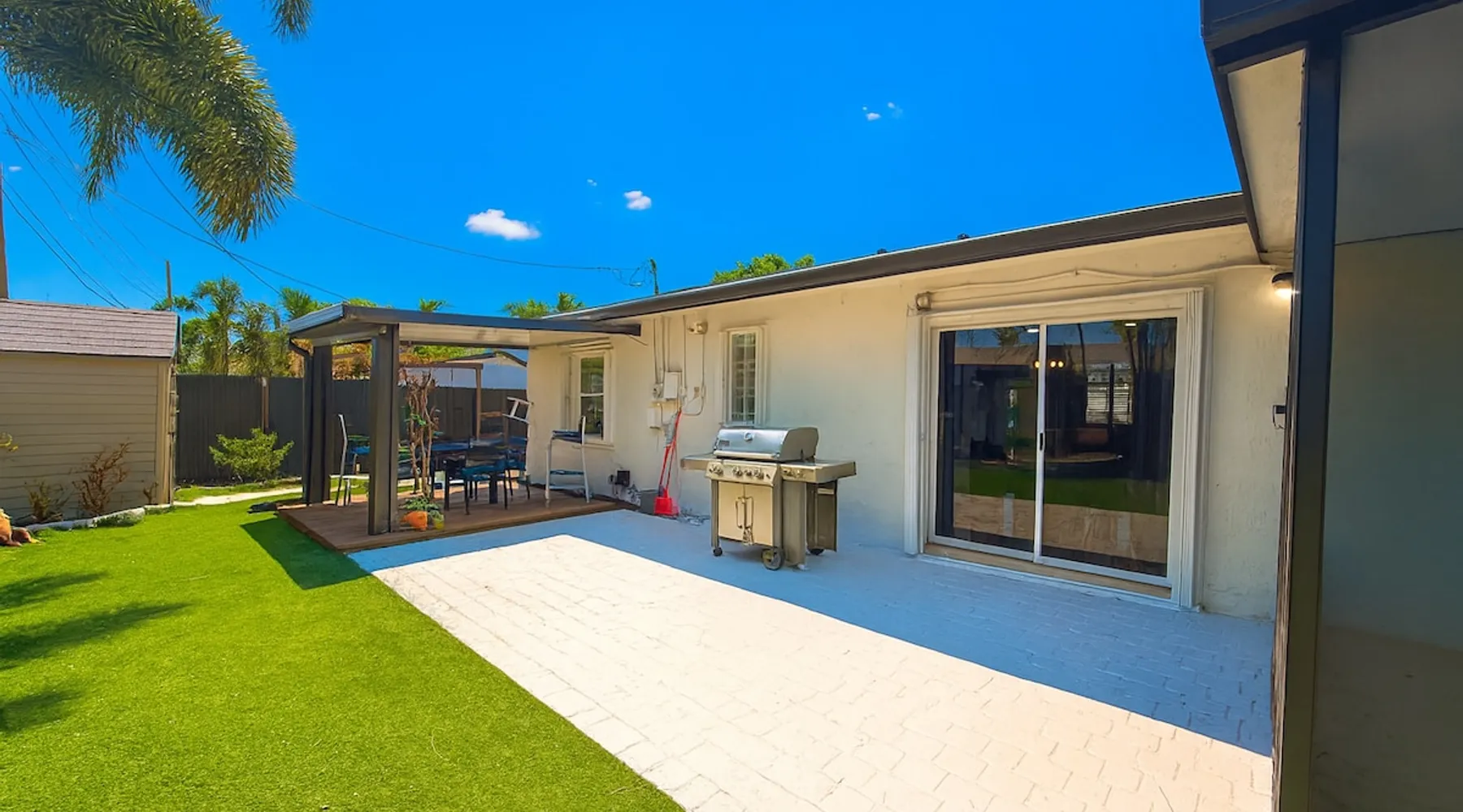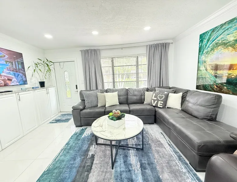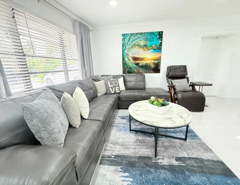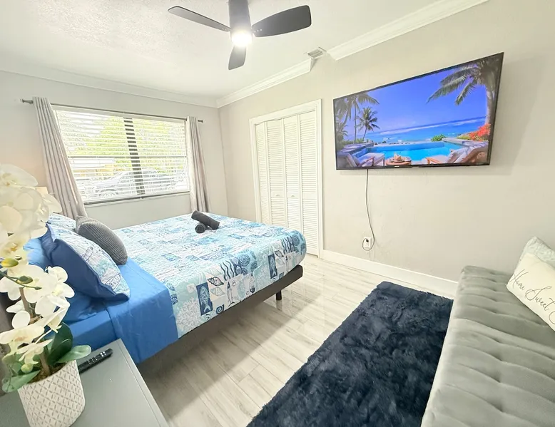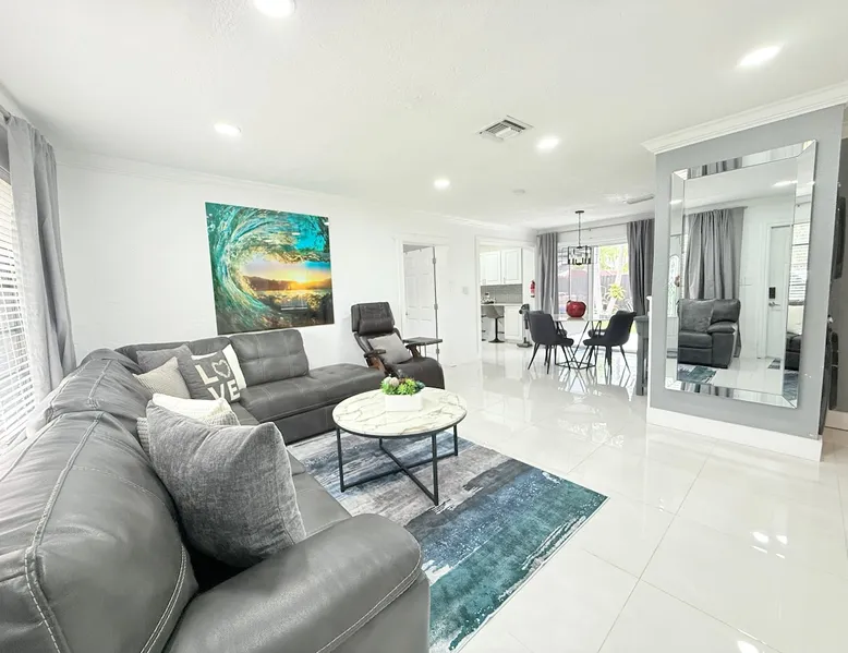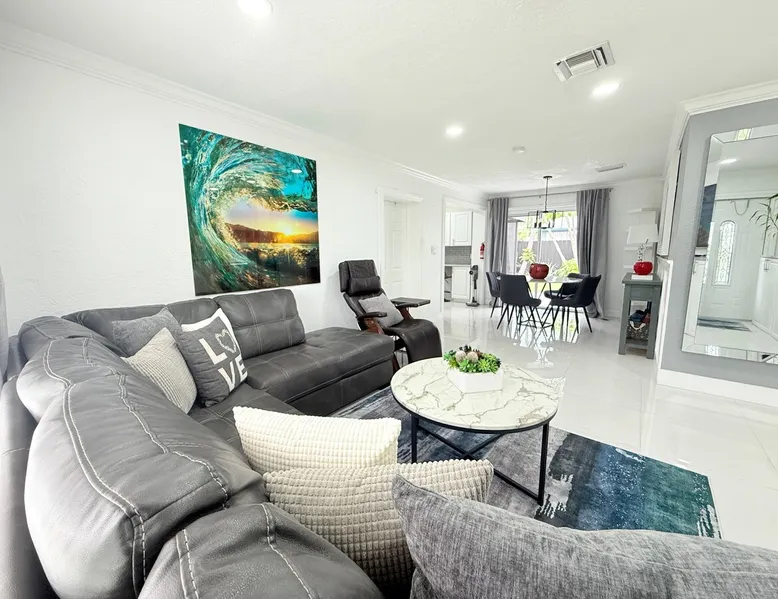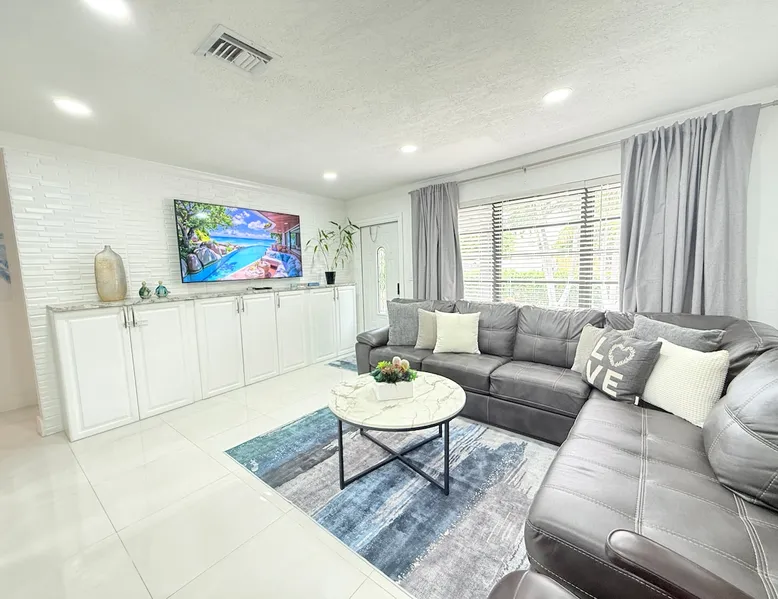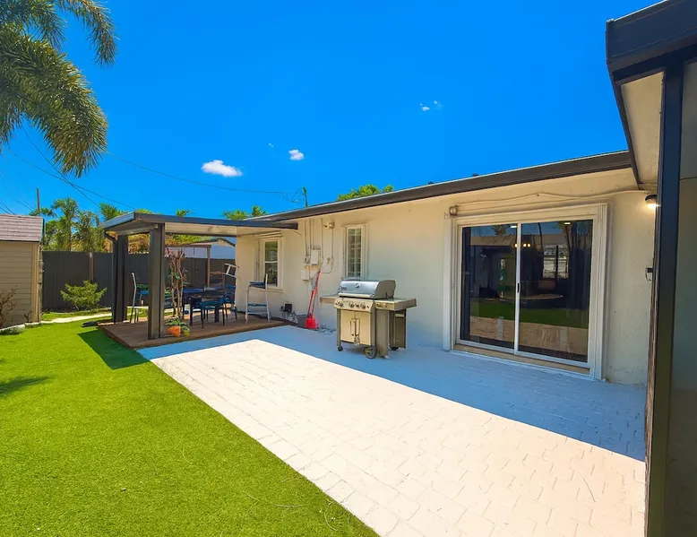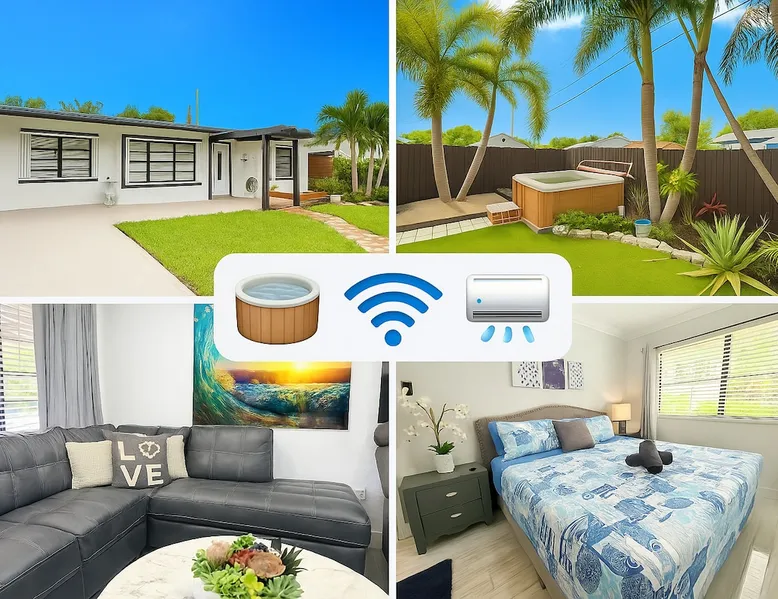✨ Welcome to your Pompano Beach getaway! This cozy 3BR, 1BA home is perfect for families or groups, sleeping up to 8 guests. Relax and enjoy all the comforts you need for a great stay. • 🛏 3 bedrooms with beds for 6 • 🛋 Futon for 2 extra guests • 🛀 Outdoor jacuzzi • 🍳 Full kitchen • 📺 Smart TV + Wi Fi • ❄️ Air conditioning • 🚗 Free parking • 🌴 Minutes to beaches, dining & shops Relax, unwind & enjoy Pompano ☀️🌊 The space ROOMS: This home comfortably sleeps up to 8 guests. Please see below for bed count: • Room 1: King Bed & A Futon with Smart TV (sleeps 4) • Room 2: Queen Bed with Smart TV (sleeps 2) • Room 3: Queen Bed with Smart TV (sleeps 2) LIVING ROOM: Sectional Sofa with Smart TV BATHROOM: 1 full bathroom stocked with shampoo, conditioner, body wash, hand soap, towels, and a hair dryer for your convenience. KITCHEN AND DINING: The kitchen is fully equipped with pots & pans, plates, cups, mugs, utensils, cooking tools, coffee maker, toaster oven, oven, dishwasher, refrigerator, and microwave. There is ample dining space with seating for everyone. OUTDOOR AREAS: Relax in your private backyard oasis featuring a jacuzzi and comfortable outdoor seating. Perfect for enjoying warm Florida evenings. PARKING: Free parking is available on-site for up to 2 cars. WHAT’S INCLUDED: Free Wi-Fi and Smart TVs throughout the home. A starter pack of essentials (toilet paper, paper towels, toiletries) is provided for your first few nights. Depending on the length of your stay, you may need to purchase additional supplies. DRIVING DISTANCES: • 8 mins to Pompano Beach & Pier (beach, restaurants, and shopping) • 10 mins to Lauderdale-by-the-Sea (charming beach town with dining & nightlife) • 15 mins to Fort Lauderdale Beach • 20 mins to Las Olas Blvd (shops, dining, and riverfront nightlife) • 25 mins to Fort Lauderdale Airport (FLL) • 25 mins to Hard Rock Hotel & Casino • 30 mins to Sawgrass Mills Mall (South Florida’s largest outlet mall) • 40 mins to Miami International Airport (MIA) • 40 mins to Wynwood & Downtown Miami • 45 mins to South Beach Guest access The entire house is for your exclusive use. Please observe check-in time is 4pm due to high occupancy and new cleaning standards we may not be able to allow for an early check-in. If you require an early check-in please check with host to block out an additional night (if available) at a discounted rate, this will guarantee an early check-in. Other things to note • 🚫 No Parties or Events – Please keep gatherings small and respectful. • 🚭 No Smoking Indoors – Smoking is welcome outside only. 🌿 • 📹 Security – Outdoor cameras are in place for your safety. • 🔊 Quiet Enjoyment – Kindly keep noise to a minimum to respect our neighbors. • ⏳ Support – If any issue comes up, let us know right away. While we’re not on-site 24/7, we’ll do our best to resolve things quickly. • 🐜 Nature in South Florida – Due to the tropical climate, you may occasionally see ants or roaches even in the cleanest homes. We provide monthly professional pest control and appreciate your understanding. Thank you for your understanding! 😊